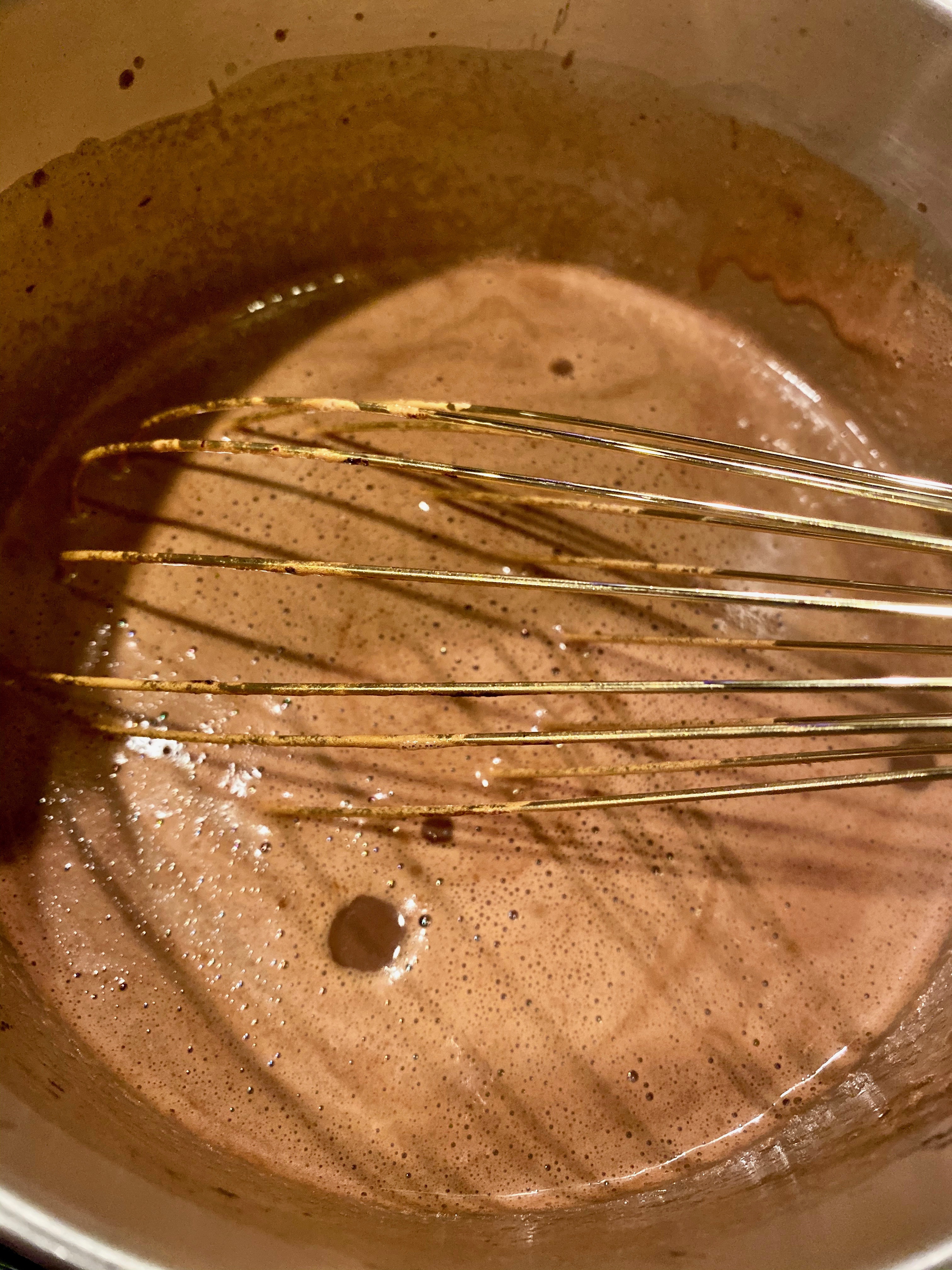 - Whisk all of the ingredients together until the liquid becomes thick, and very very hot. ( Only takes a few minutes )
