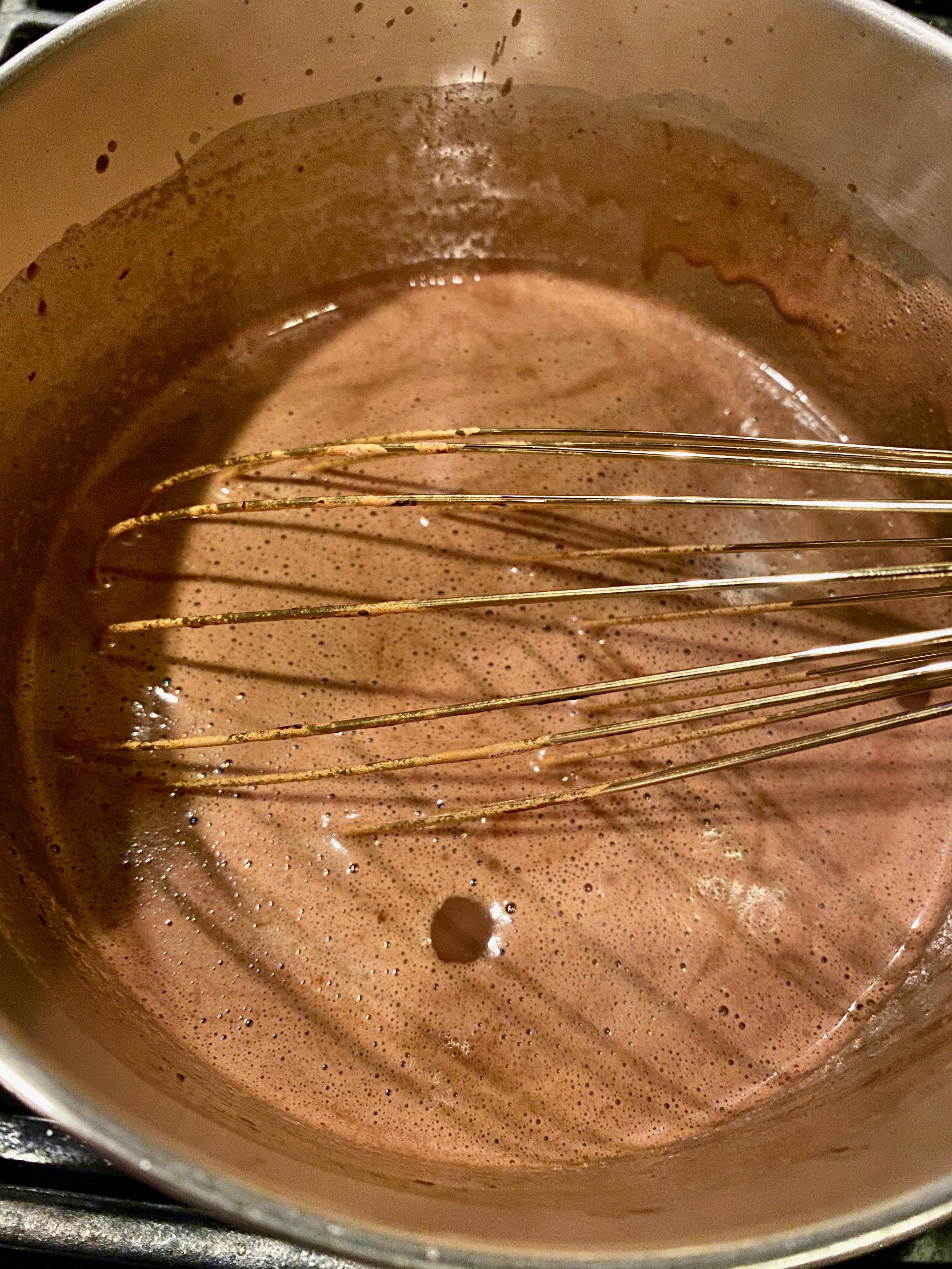 - Heat up a small sauce pot to medium low heat with two cups of milk. (milk of your choice.. the end result will be rich regardless)