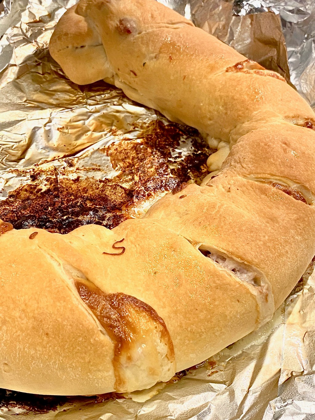These gorgeous Stromboli rings were baked at 350 degrees for 40 minutes, and then at 375 degrees, just until they got a little more brown and bubbly!