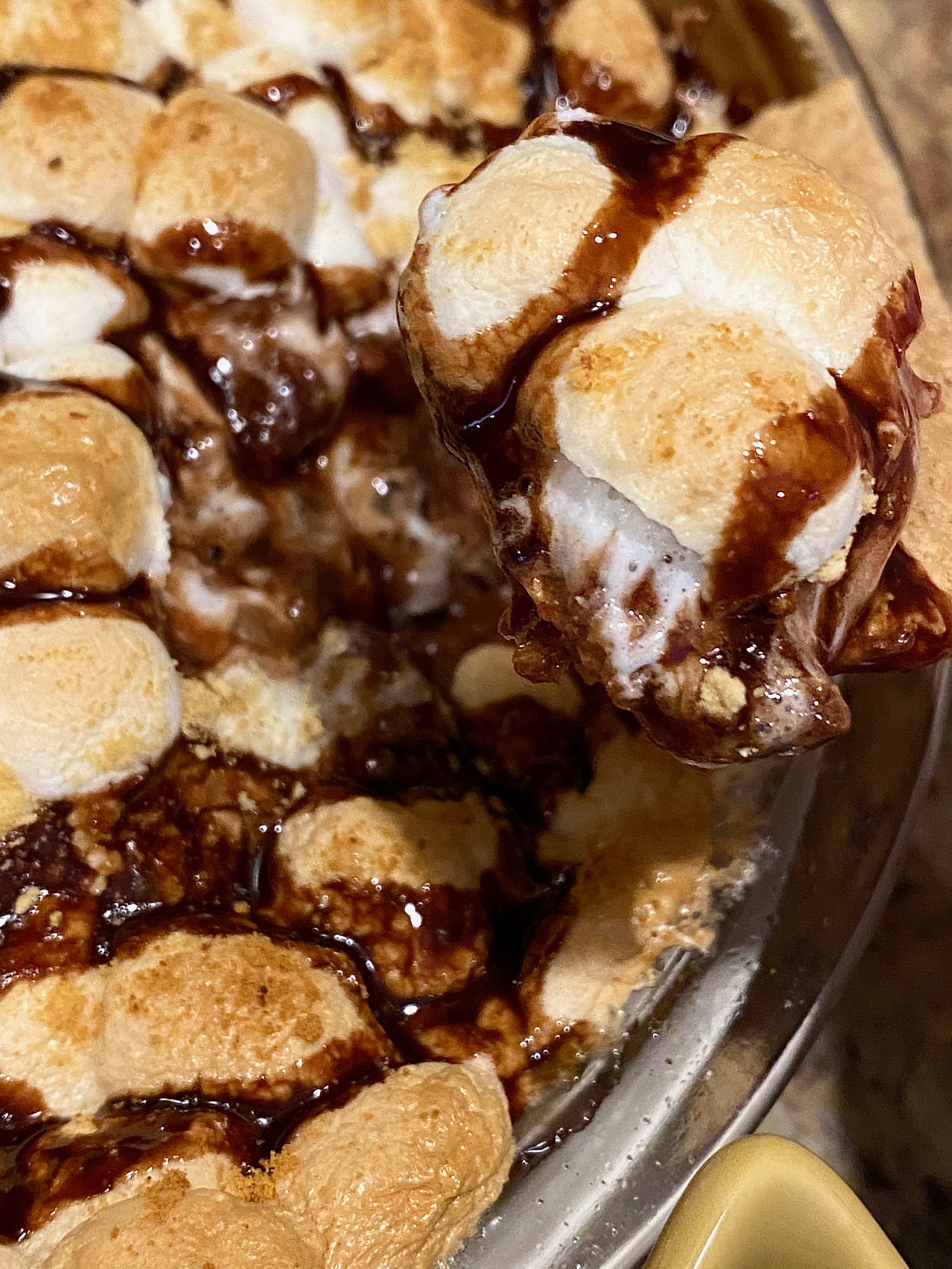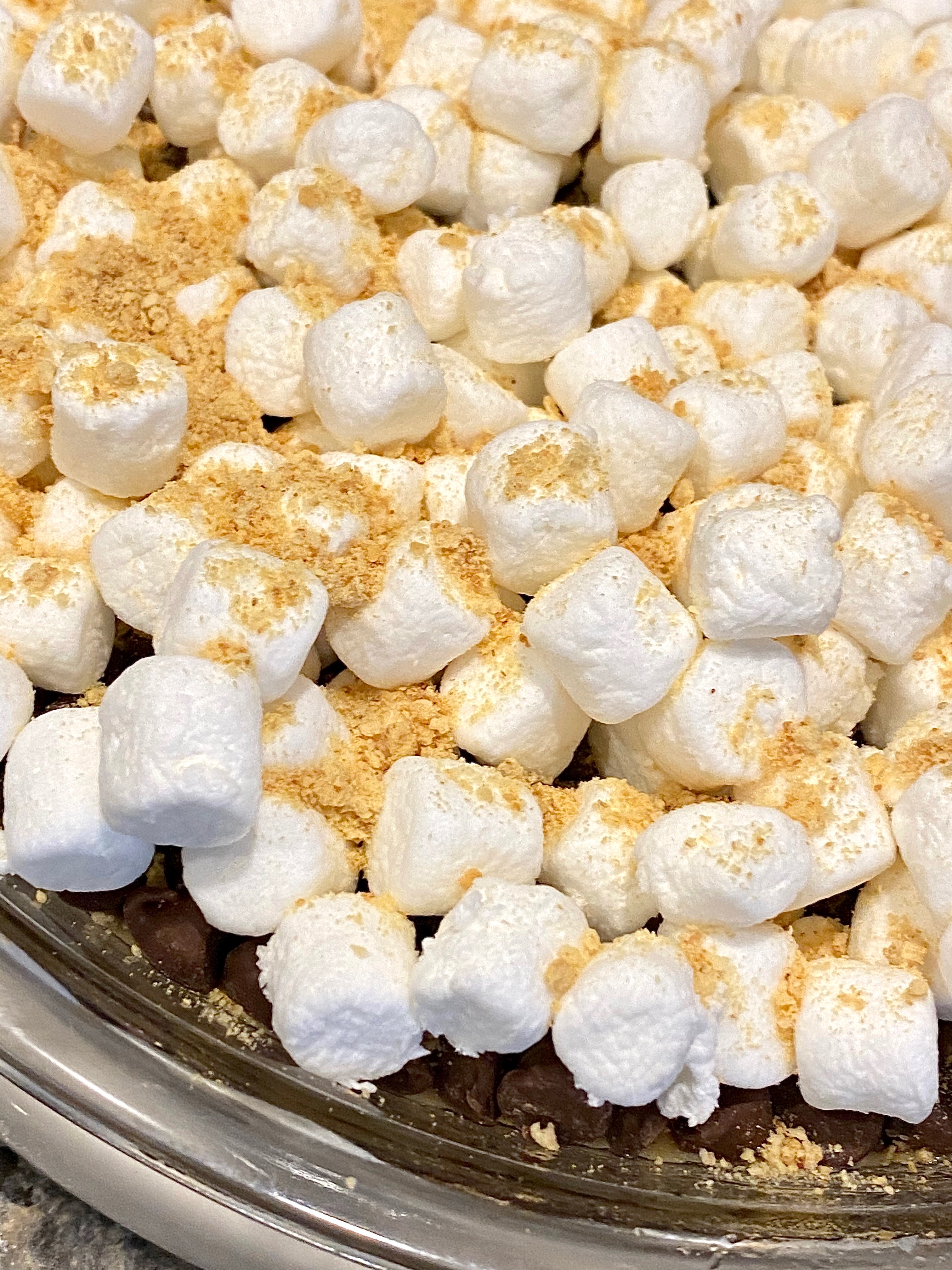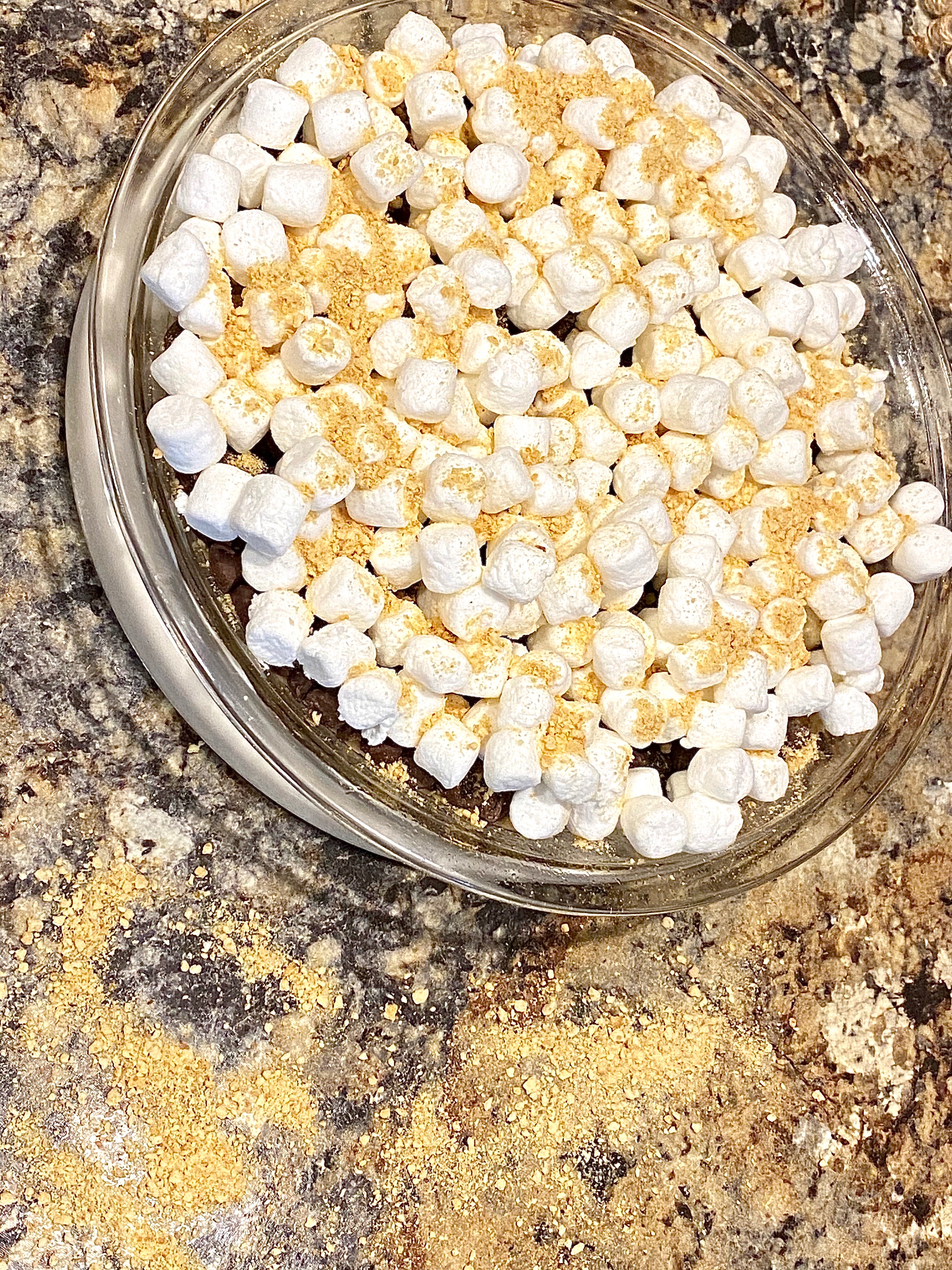 - Being that we topped it off with the graham cracker crumbs, it’s really going to give the marshmallows that crumbly, toasty flavor when you sail a bite into your mouth.