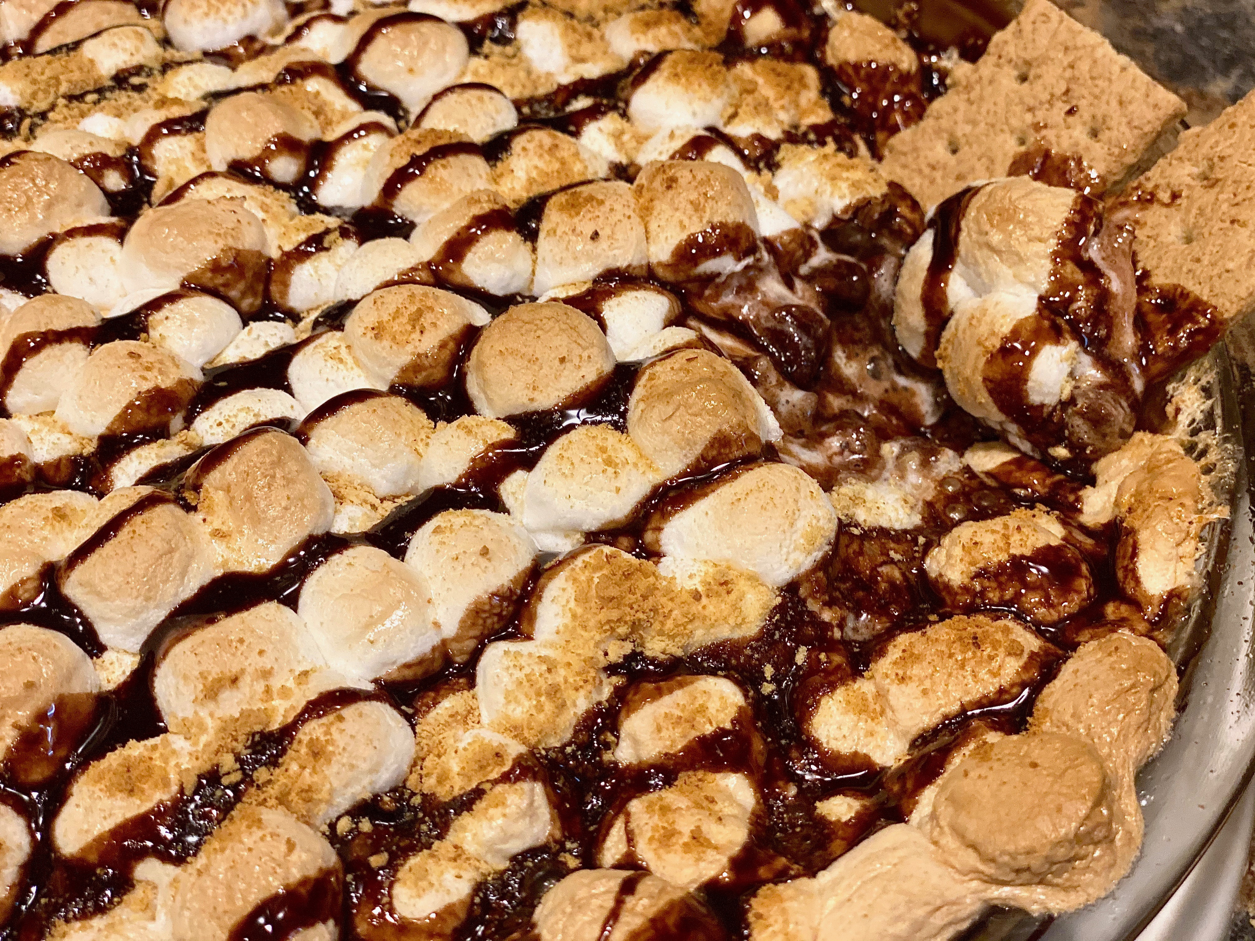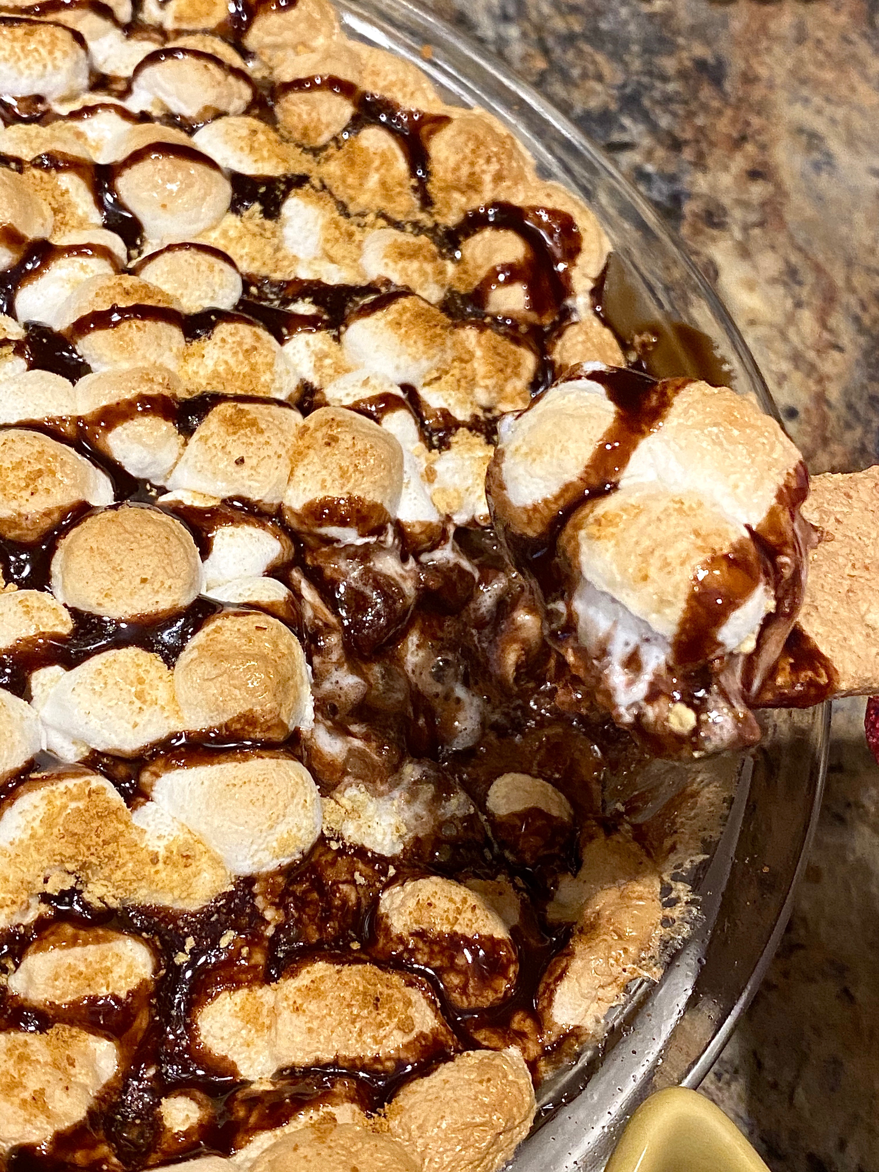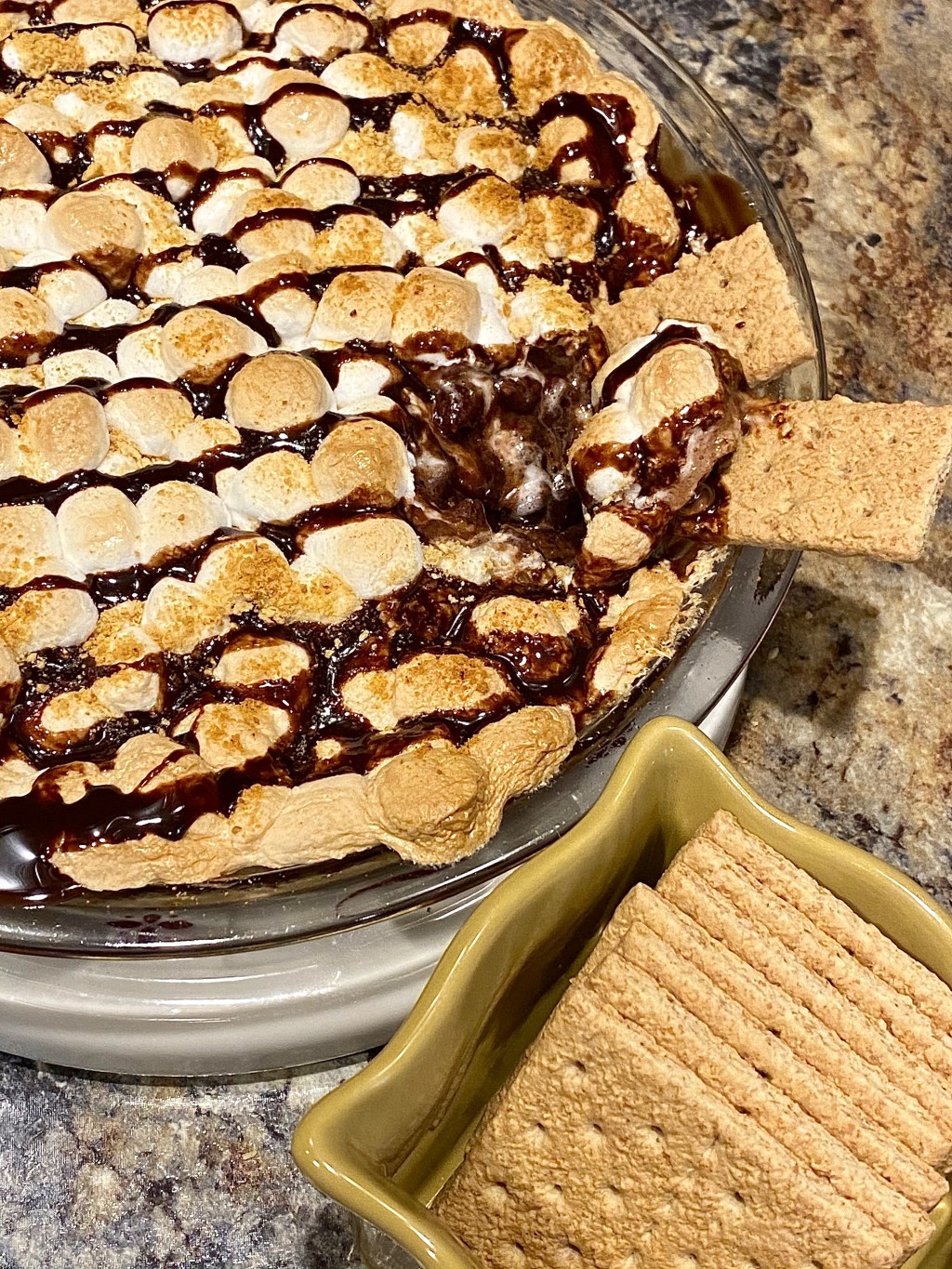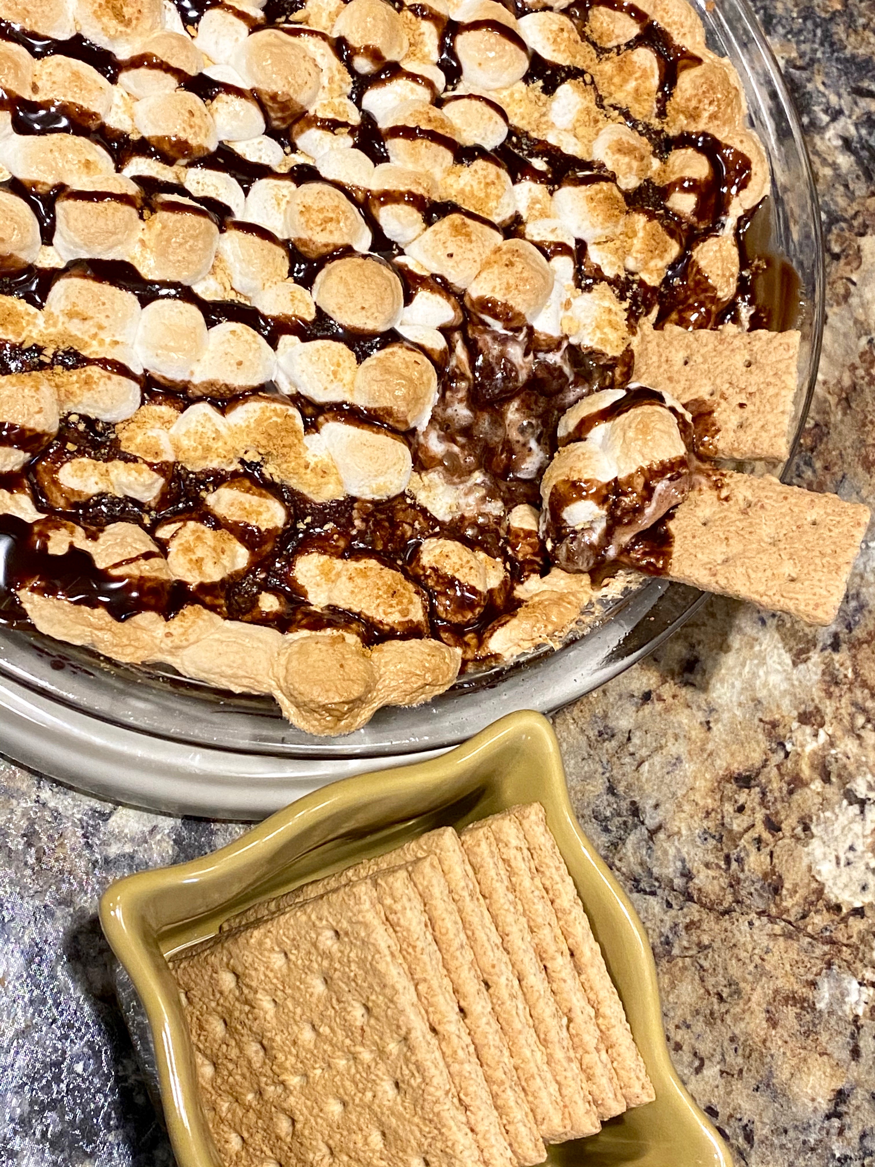 - Being that we topped it off with the graham cracker crumbs, it’s really going to give the marshmallows that crumbly, toasty flavor when you sail a bite into your mouth.