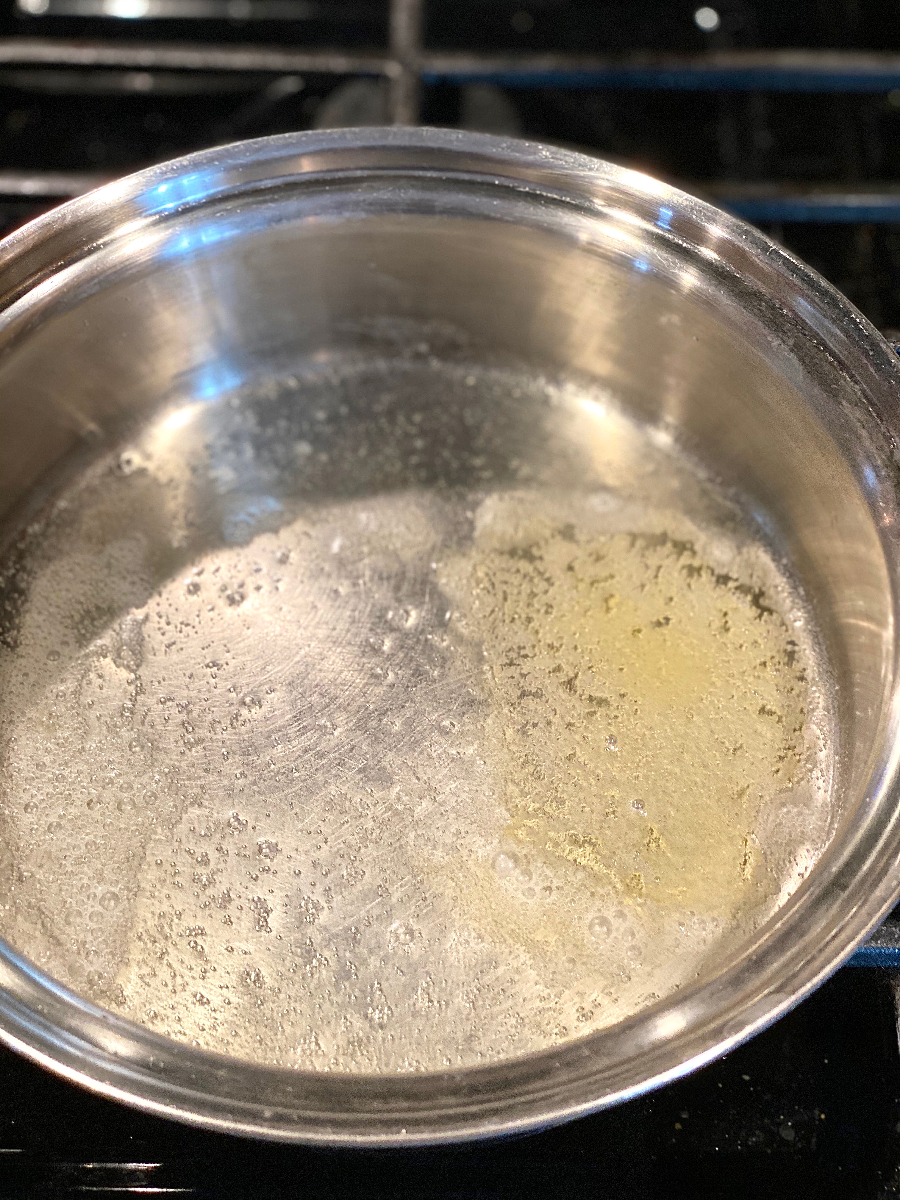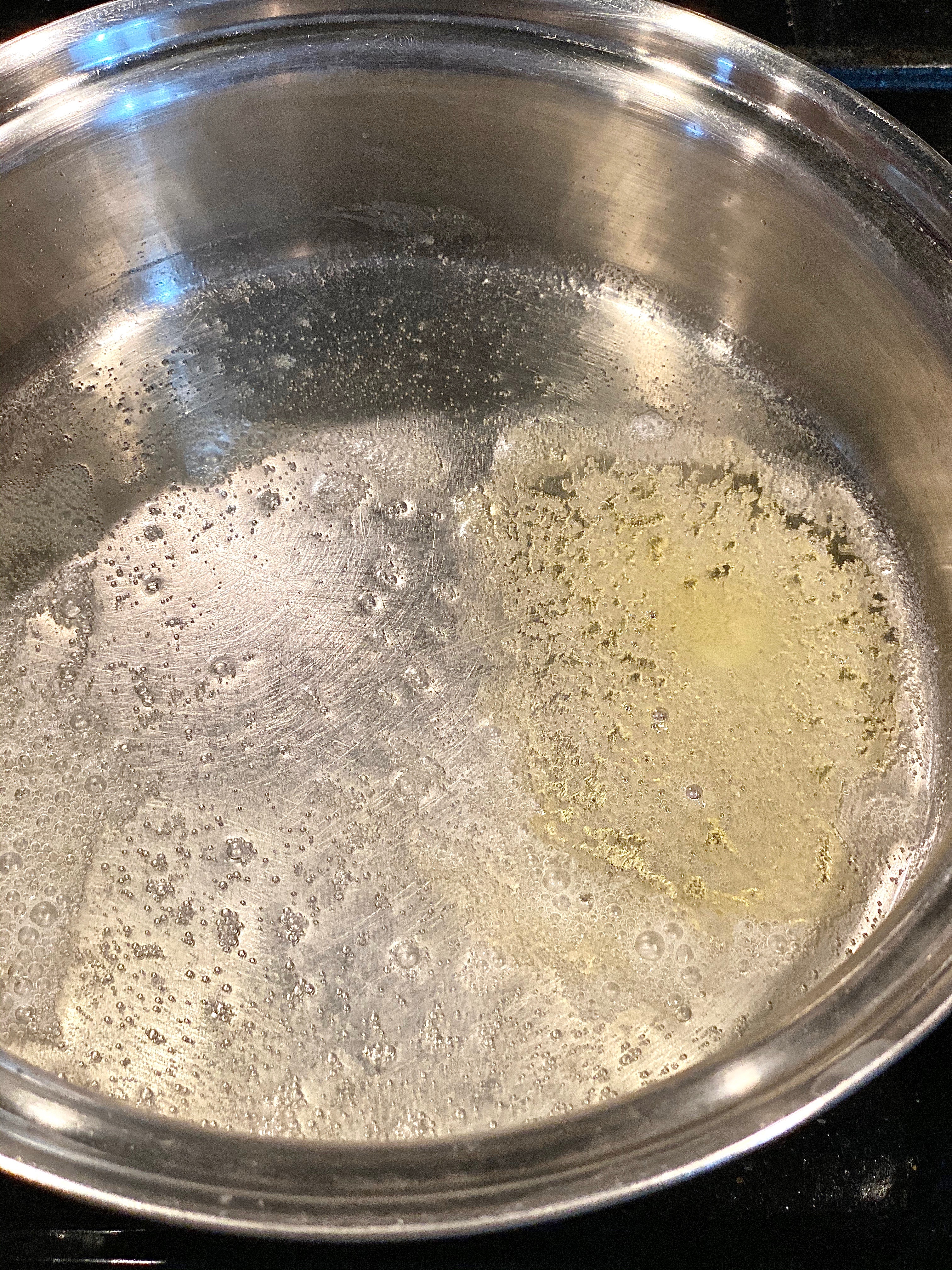 The caramelized onions need to cook low, and slow. That’s the key, so what you want to do is let them sauté in a small sauce pan on medium low heat. You always need to start the process with real, salted butter. That makes all the difference! Since butter burns quick, combine two tablespoons of it with one tablespoon of olive oil to insure that your onions will caramelize perfectly.