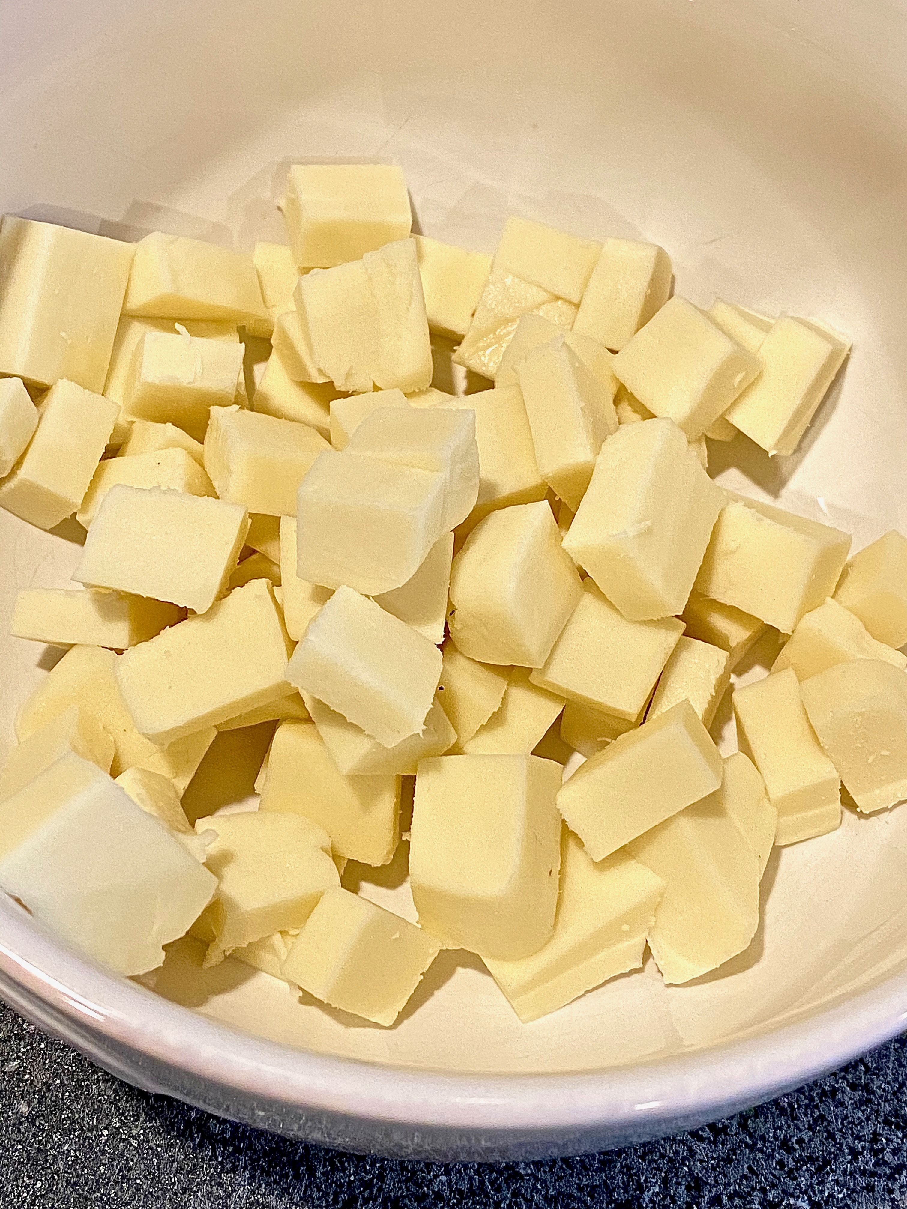 • Let’s talk mozzarella cheese for a second: I did mention a “block”, and you might be wondering what that means because you’ve only ever seen it shredded in bags, or fresh in a ball. Those assumptions are both very true, although there are brands that create mozzarella cheese in a square block form, and on the package it says “firm”. I want you to use the more firm mozzarella as I did if you’s can; being that the dressing will hold up on it much better, and if there are left overs the cheese will not get soft, and soggy as quickly as it would if you used it from the softer “ball”.
