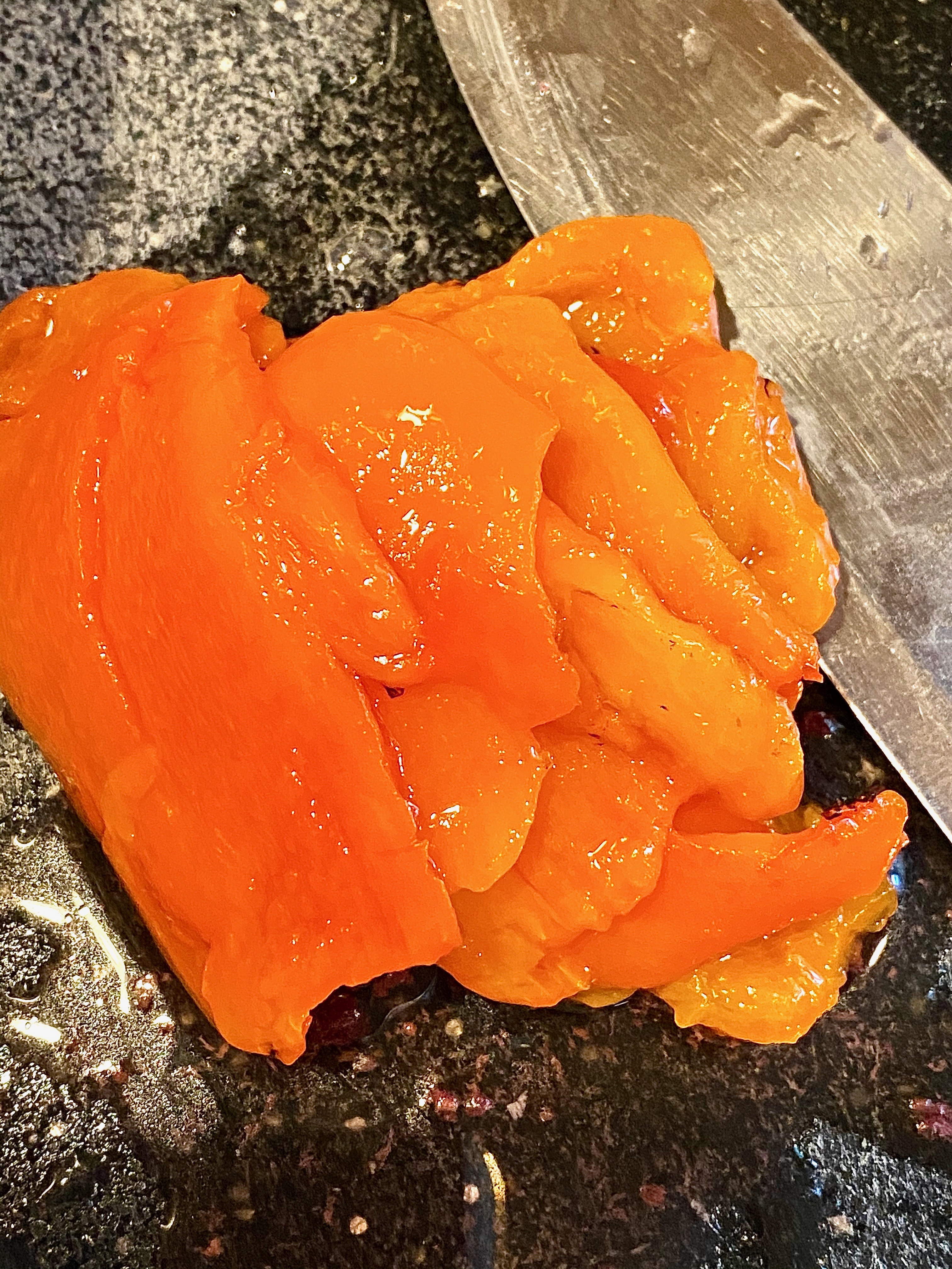 • When you empty out the jar of roasted red peppers, do not get rid of the liquid inside!! We will use some of that later!