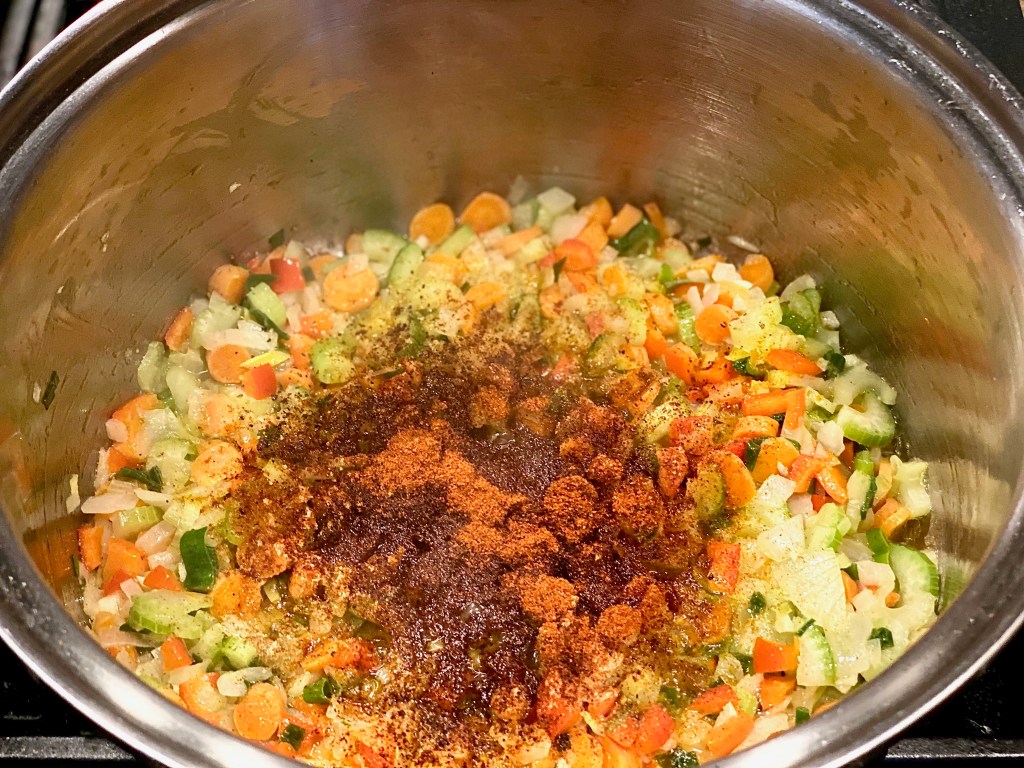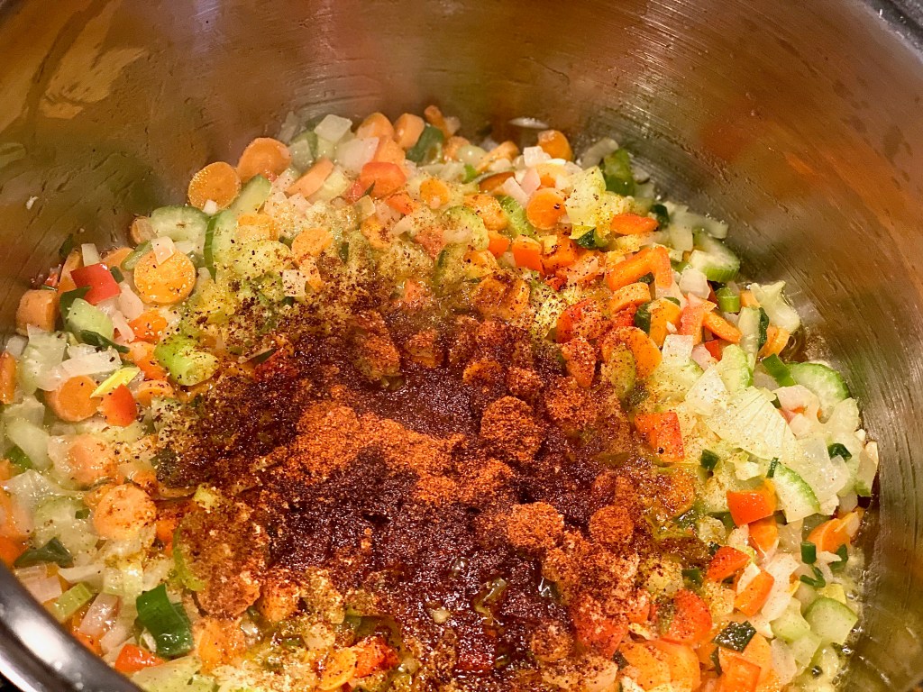 After letting the vegetables sauté for 15-20 minutes, it’s going to be time to add that sizzling spice!
