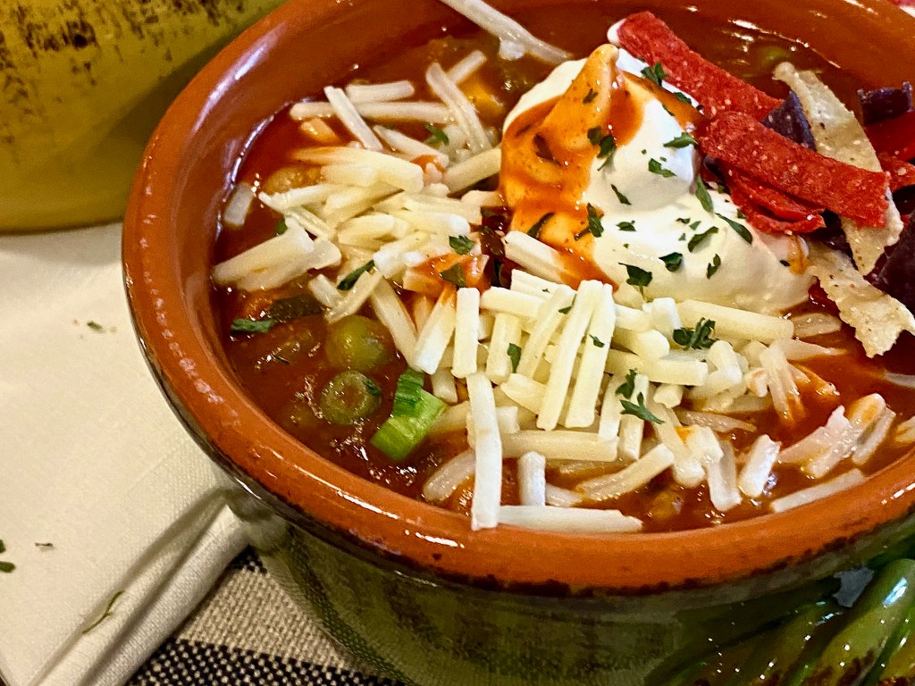- Once you have everything combined in the pot, let that simmer for 1-2 hours on low depending how how thick and flavorful you want the chili to become!