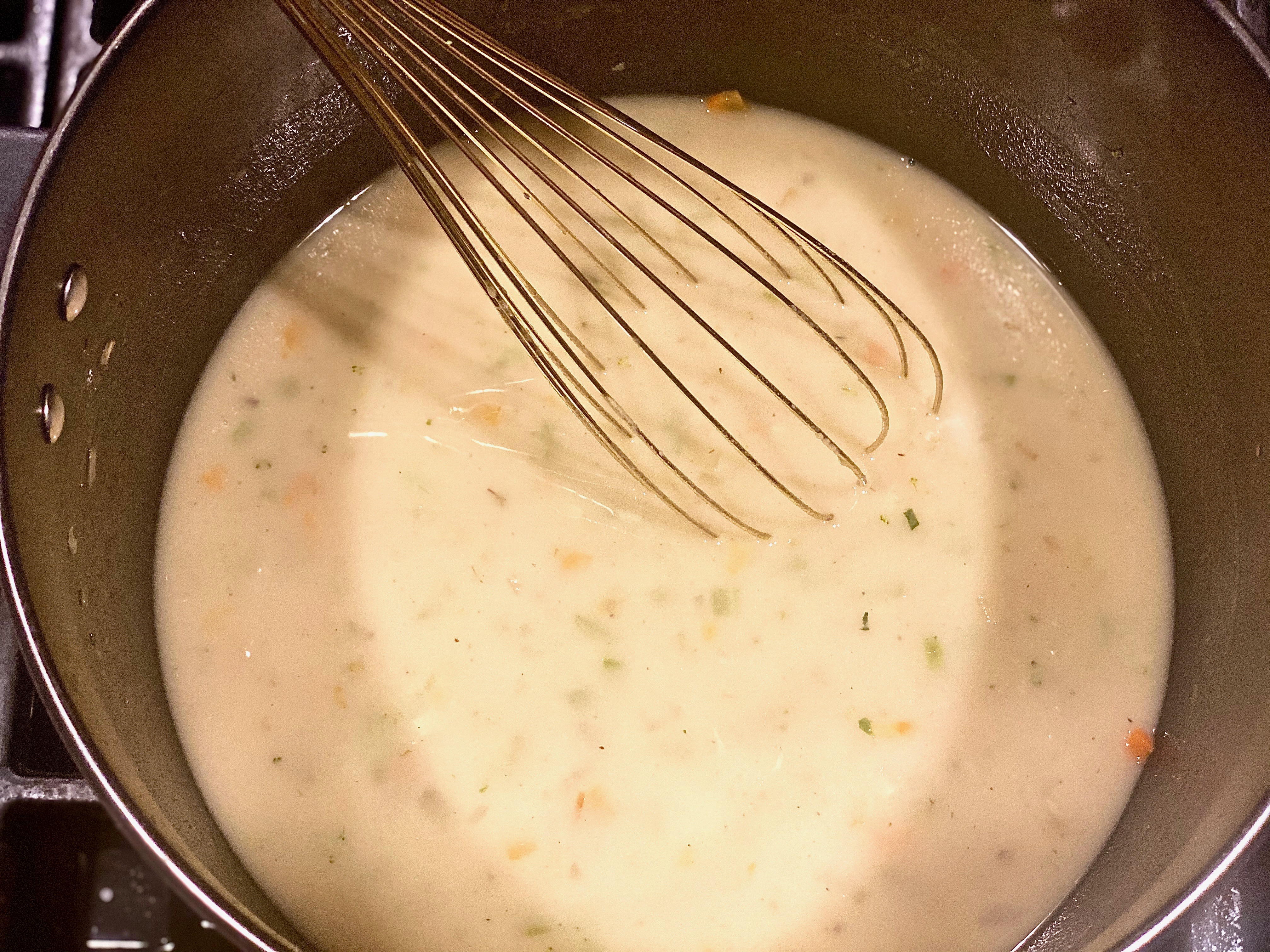 After pouring in your stalk of choice let the soup simmer on low for one hour. The soup will appear extremely thick, but you want it to be like that considering the milk and cream that we will be putting in will add just the right amount of liquid that you’re looking for! I like soup that is meant to be creamy on the more thicker side because it just makes it that much more decadent! If you were to not make the soup as thick in the beginning, your end product would turn out on the more milky side than you’re going to desire after adding in the liquids.