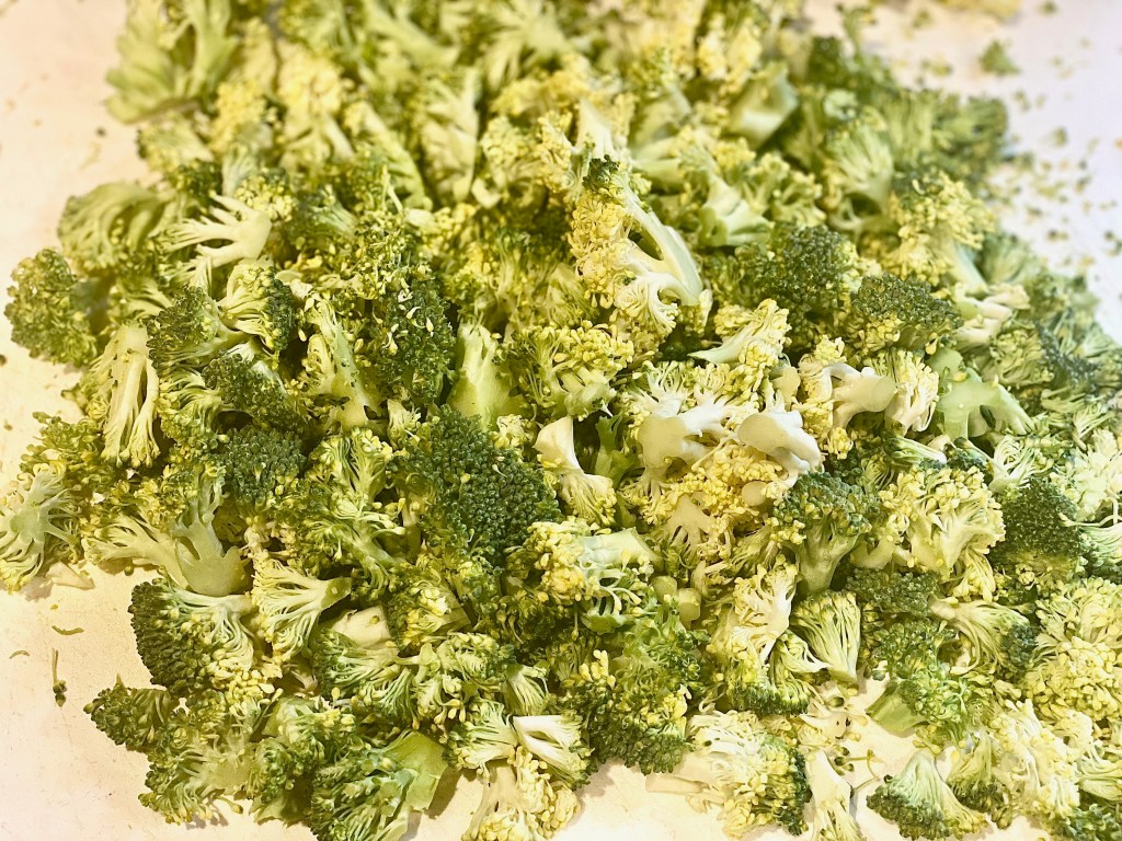 - Cut up a whole head of broccoli into medium/small pieces. I like to have different size pieces for a variety of textures to be able to actually chew on something when you take a spoonful since sometimes when you’re indulging in a really creamy soup it can be overwhelming not having different textures to enjoy.
