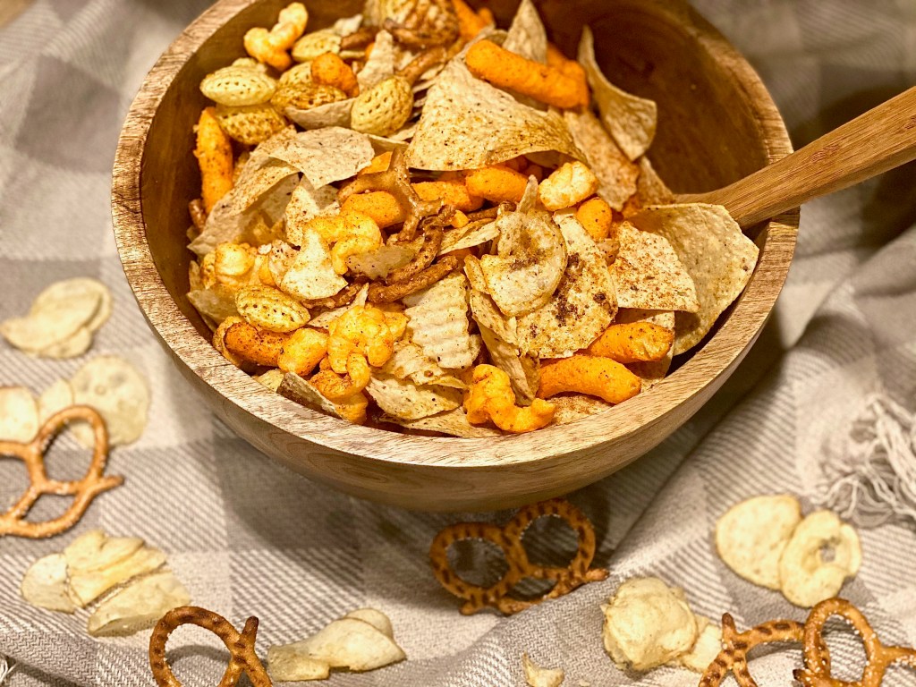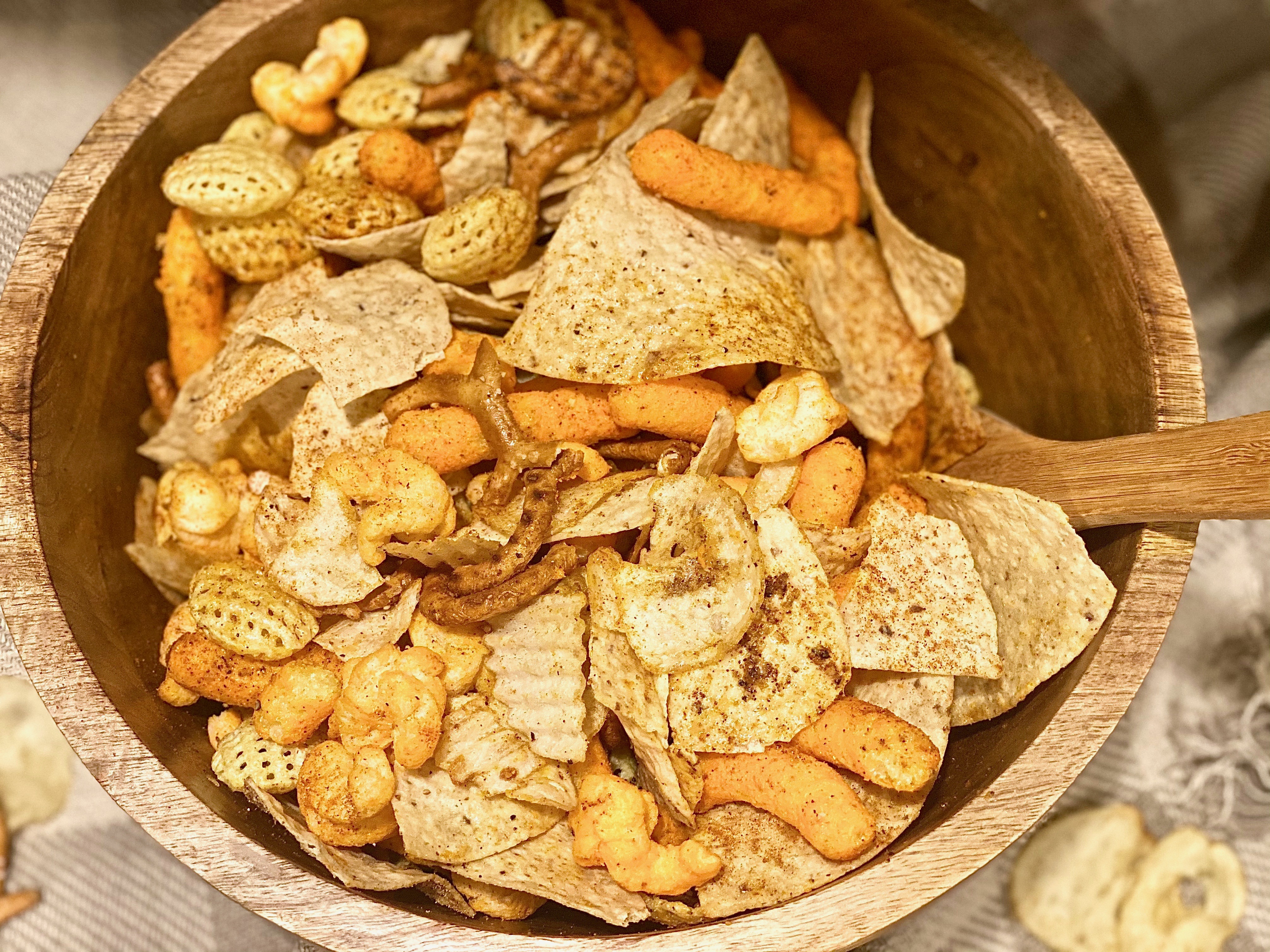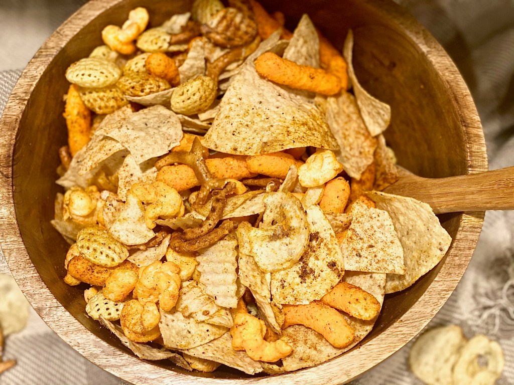 Depending upon where you live in the world you may or may not have gotten a few inches of snow this morning! I love when it snows in the morning because it gives you a sense of peace and relaxation. If you happen to have the time it can even give you a reason to stay in bed a little longer, snuggle up with a coffee, or hot chocolate while doing some morning reading. That’s truly the perfect snowy morning if you ask me! All that’s missing is a delicious snack to munch on as the day moves forward, and the snow continues to hit the ground. My chili cheese snack mix is beyond perfect for the job! It’s the most flavorful pairing for binge watching Christmas movies all day.. because I know some of you Diamonds are already getting in the spirt, and I truly cannot blame you after the year that we’ve had! Even though I won’t be taking my Fall decor down until after Thanksgiving (as I do every year), I can’t blame anyone for wanting to bring some joy into their home, and life! If you are like me and don’t decorate for Christmas super early, but still want to bring warmth, and happiness into your home, this snack mix is the fix! I adore making mixes to munch on of all kinds, but chili is the prime comfort food this time of year, so I decided to combined that will all the snacks the would accompany the flavors immensely. This snack is everything you could ever want & more, and let me tell you Diamonds.. you won’t be able to stop until the last crumb is gone!