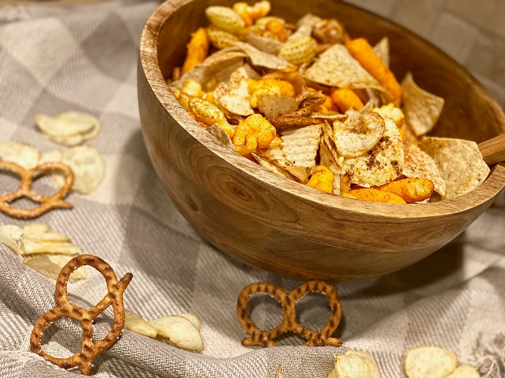 And just like that! In five easy no brainer steps, you will be left will such a wonderful holiday snack mix that everyone will be asking for more of! I promise you Diamonds that you will be making this time and time again! It’s unlike anything that you can find in the stores, or in a bag. This mix will be a crowd pleaser even as a causal Thanksgiving day appetizer while everyone is still fixated on the football games while awaiting the big meal of the year to arrive on the dinning room table! Besides serving this in a large wooden bowl as I did to pick & go as you please, you can also wait until it’s completely cooled off to put into little goodie bags to tie into a bow to send, or deliver to loved ones during this holiday season! Being that we are going through a different time time in this world right now that would be the safest way to pass on food, and to also show your thankfulness to friends & family. This cheesy chili chip & snack mix can be creating with the usual cheesy snacks like different coated cheese crackers, or crisps, but chili reminds me of pub food, so that’s what I wanted this mix to represent. I adored this snack so much, and I will definitely be whipping up more of this as other festivities start to approach!