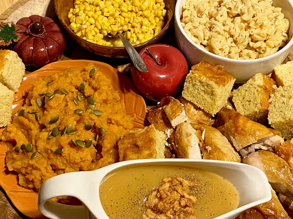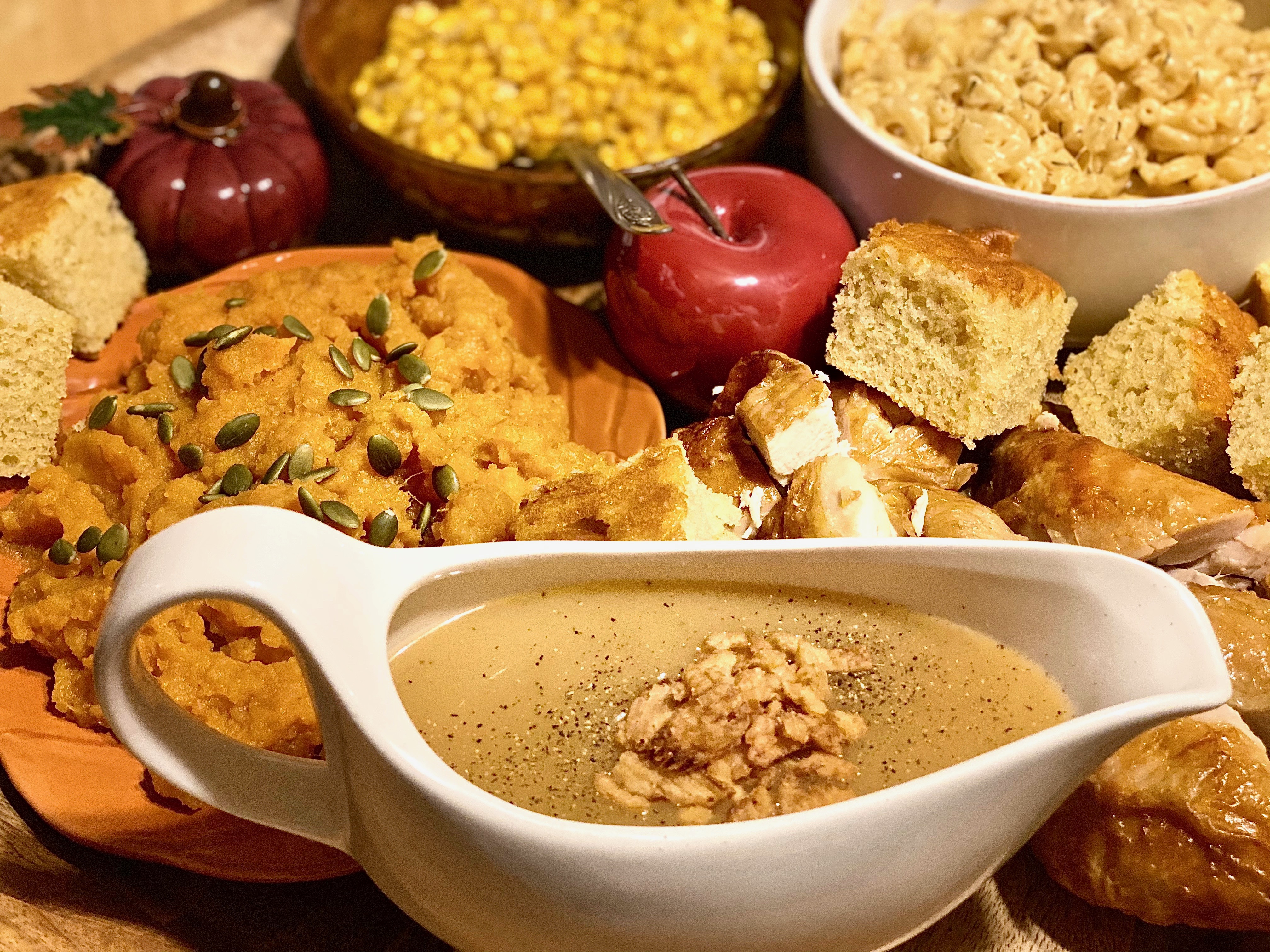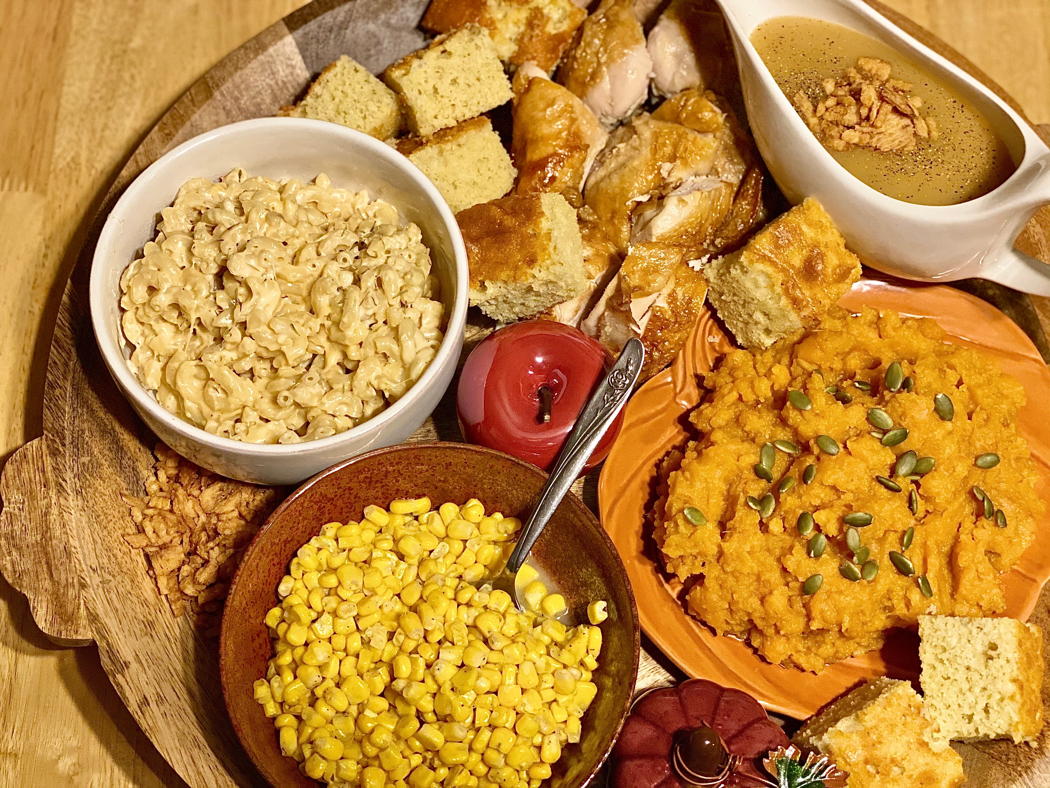 Whenever you decide to only make a few things from start to finish with scratch made ingredients.. pick what matters most! Ask yourself what everyone would be missing out on, and what you would be wishing you would have made all by yourself, but didn’t. The two things I felt that you can’t get nearly as delightful tasting in a store would be macaroni & cheese, along with the classic, candied yams! They’re both essentials for a Thanksgiving feast for my family and I, so buying them would just not cut it for us in the least bit.