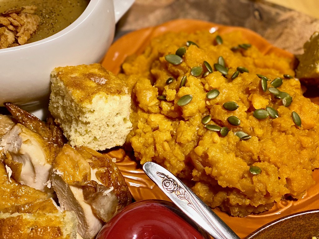 - What’s a Thanksgiving dinner without yams or sweet potatoes?! You can choose between the two iconic options of candied yams, or sweet potato casserole. I chose to do candied yams because they’re seriously so good, but even more so.. they’re easy peasy!! All you have to do is melt half a stick of butter in a sauce pan with a 1/3 cup of brown sugar, and 2 tablespoons of honey. After the sweet succulent butter gets bubbly and brown, you may add your can of yams. You can also mash them up as I did, or leave them chunky. It’s all preference!