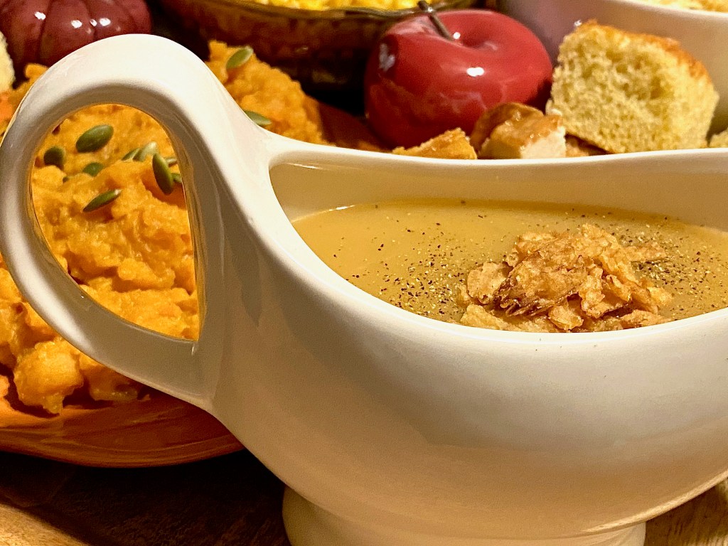 If you purchase a roasted chicken instead of roasting it yourself, you can also buy a good gravy to drizzle along top of it for that extra bite of savoriness! Whether you make your own gravy with the left over meat drippings, flour, and cream, or you heat it up straight out of the jar.. you have no other option that to serve your gravy in a gravy boat. It is the go to move, especially on Thanksgiving, or for any holiday where you want to leave a lasting impression.