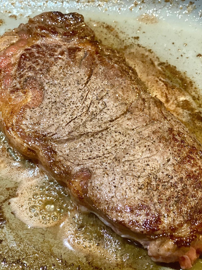 A big focus point for this recipe is the steak itself. As you all know, every cut of steak is priced differently, so of course some are way more expensive than others. Since this recipe is meant to be on the cheaper side of the spectrum I chose two New York strip steaks that were on sale at my local supermarket. If the steak you prefer isn’t on sale when you go to purchase your meat, you can get something like a flank steak which will be just as scrumptious after seasoning and cooking it the proper way. If you’re cooking a tougher piece of meat with very little fat you could also marinate it for a few hours to create tons of moisture, and much more flavor than it would have without marinating it.