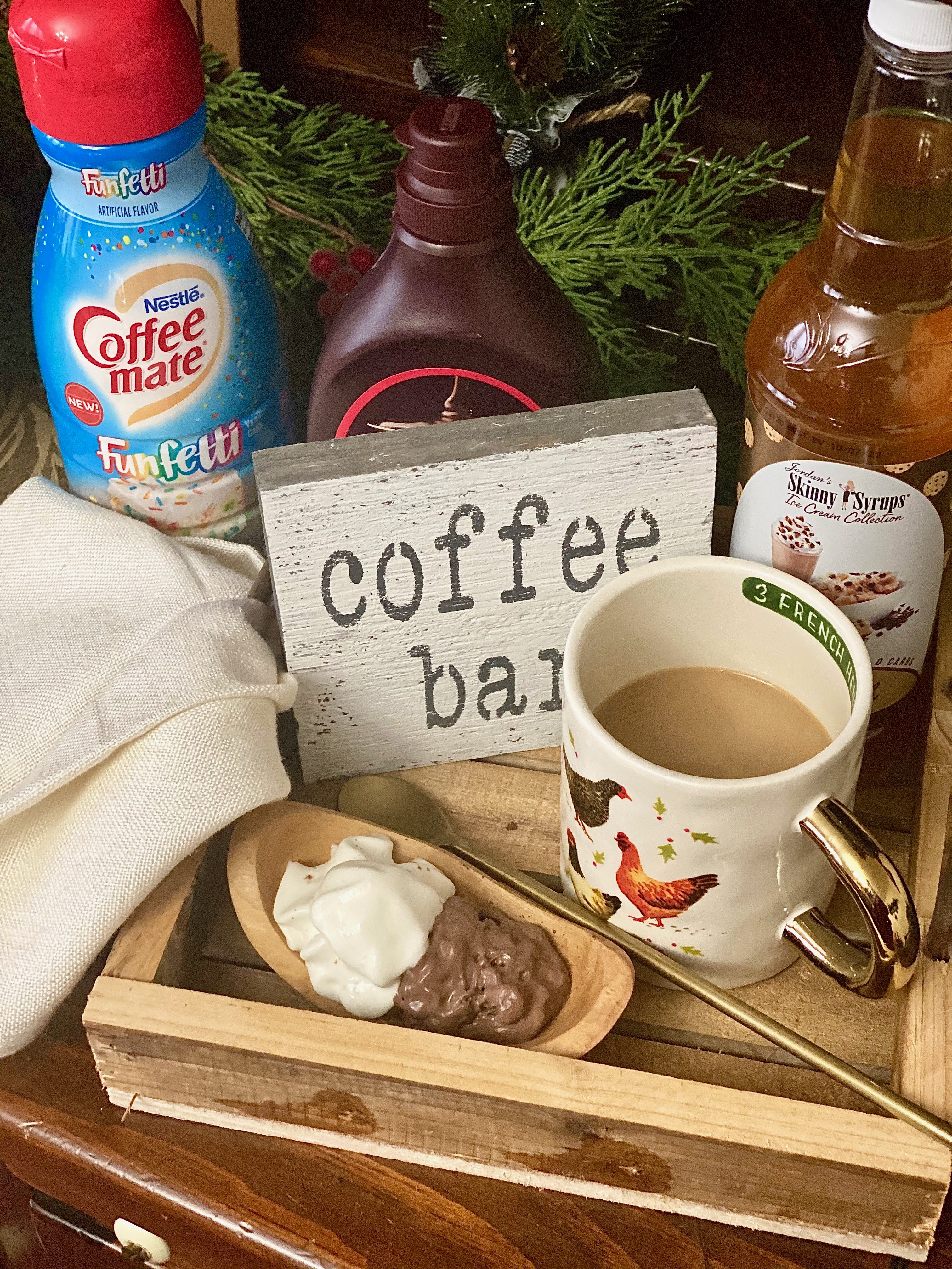 Who doesn’t love a coffee bar Diamonds?! I know I do!! They really are so popular in so many different ways. A coffee bar, lounge, corner, cabinet.. whichever way you want to spin it.. we still all call it a “bar”. No matter how big or how small your set up is you can make it super unique and incredible. A coffee bar is a coffee lovers dream! It’s the most fantastic idea when you’re hosting a beautiful brunch, an intimate gathering, or a wintery birthday bash so your guests can warm up while also staying awake to have some fabulous fun! As soon as I wake up one of the first thoughts in my mind is the delicious coffee I’m going to make while I cuddle up on the couch thinking about what delicious breakfast I’m going to concoct surrounded by scented candles. In the winter months especially, I love hot coffee! Since I don’t particularly enjoy black coffee.. I’m always experimenting with different things to top it off with, but also not making my morning brew overly sweet. Balance is key Diamonds. 😉