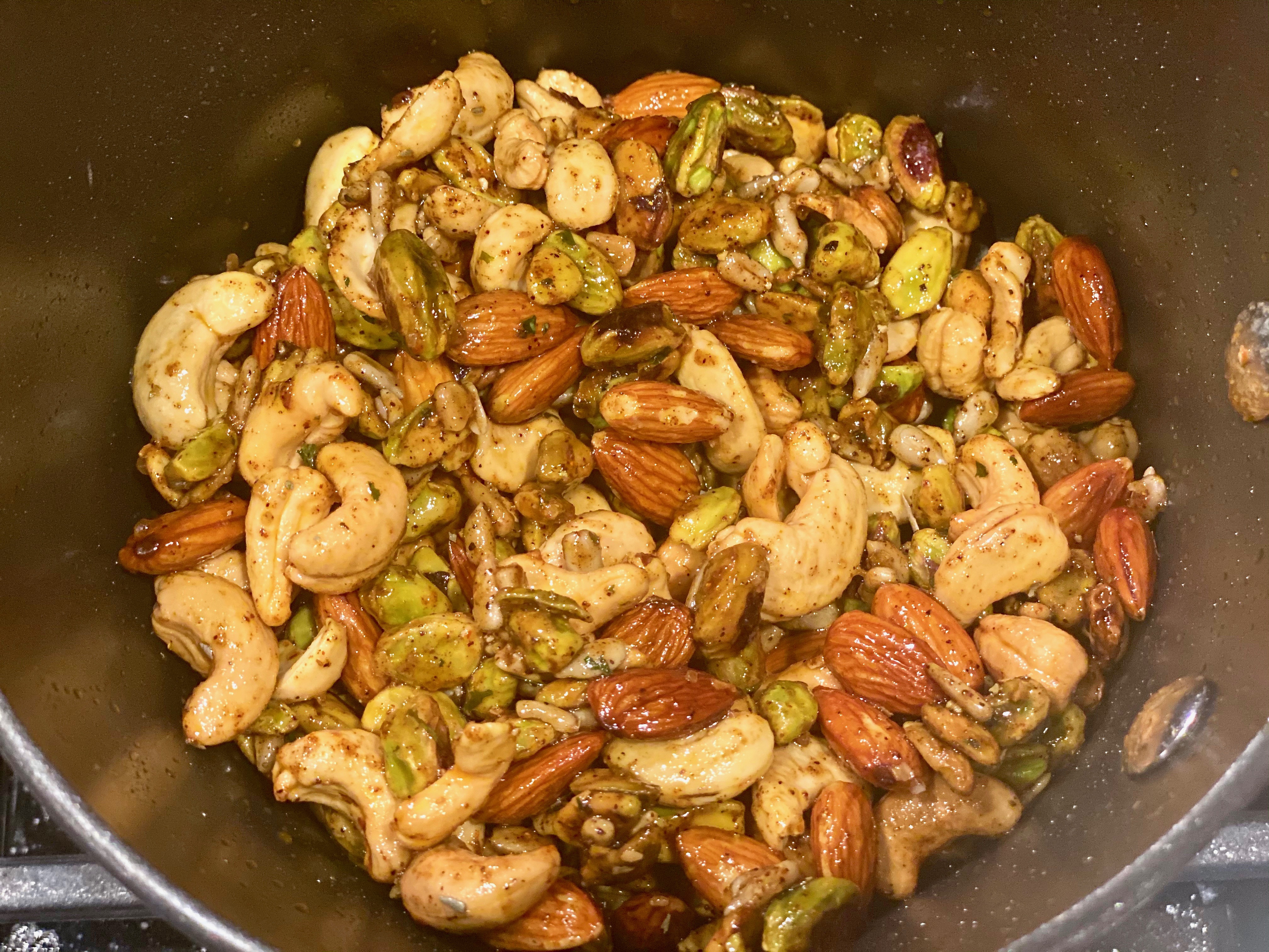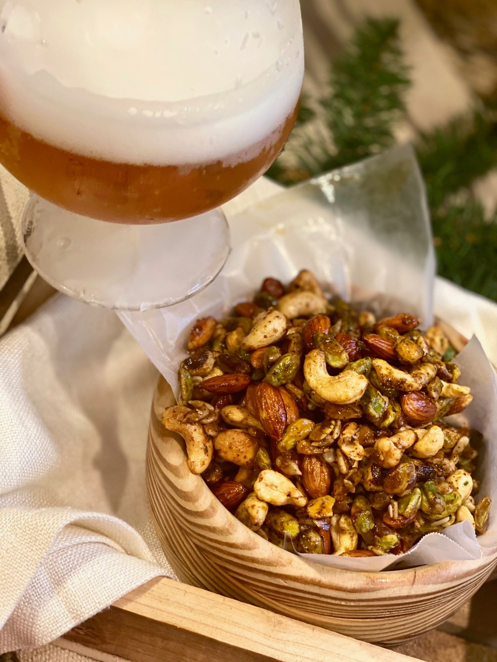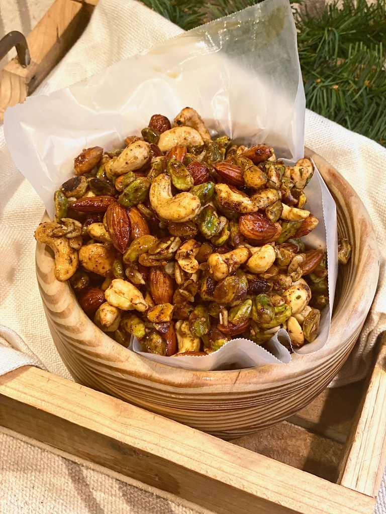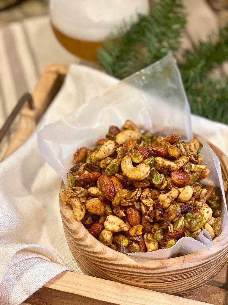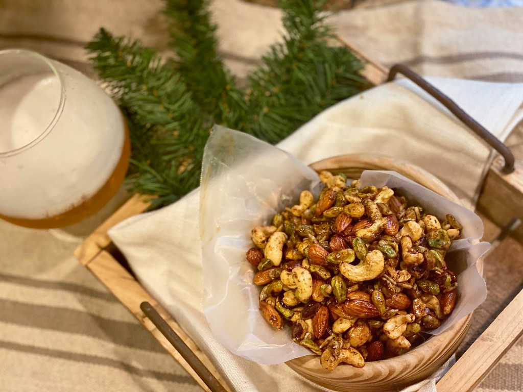 One thing I’ve truly been missing since the pandemic started almost a year ago is going to a bar/lounge without a care or worry in the world, munching on delicious mixed nuts, while I sip on a mouthwatering cocktail. I love pub style mixed nuts so so much, but you often see the same flavor everywhere you turn, therefore I wanted to do something a little different & creative. Not only do I love savory, but I also really love sweet nuts as well. There’s nothing better than a glorious glazed nut with some salty spices mixed throughout. That flavor combination absolutely makes the most perfect buttery coated nut!