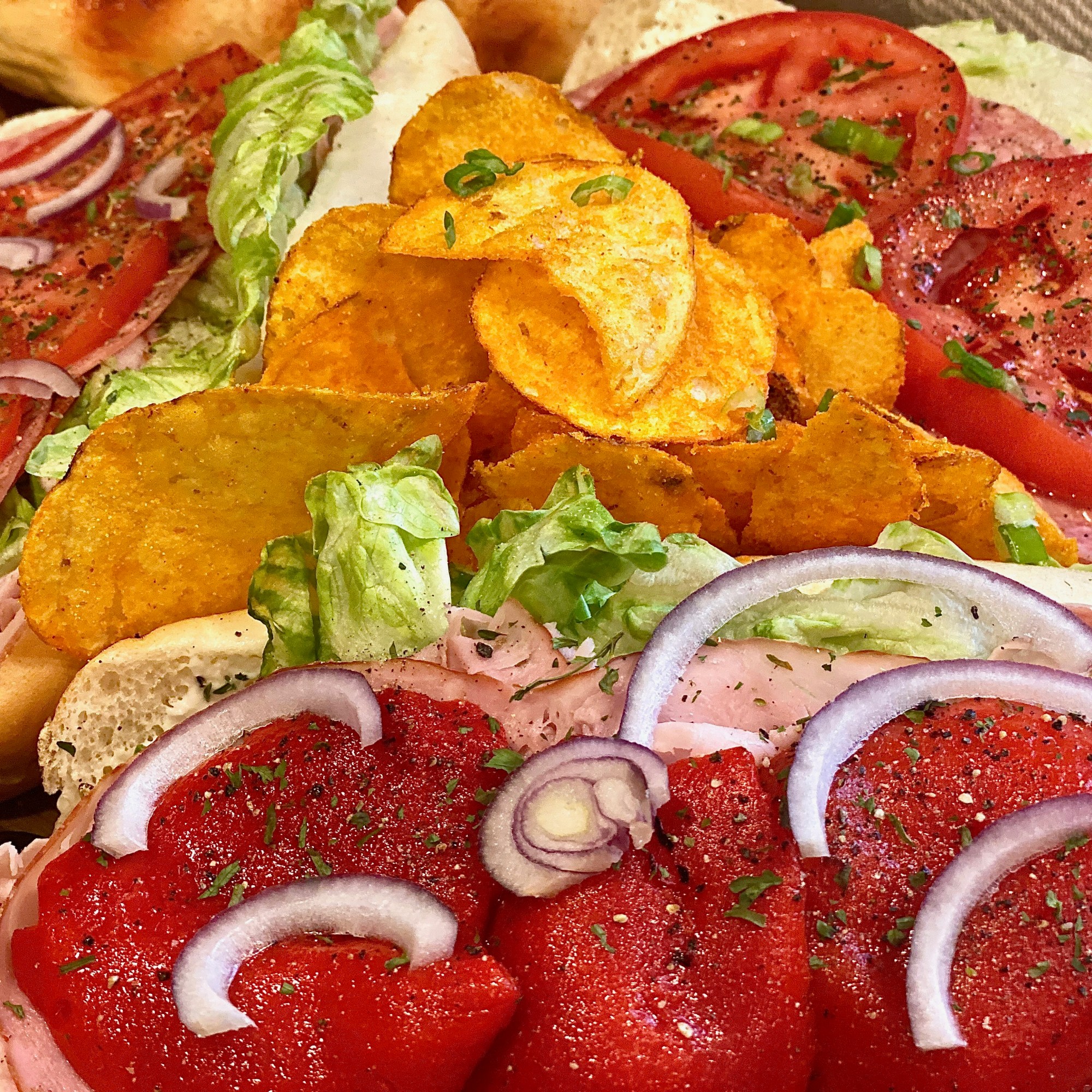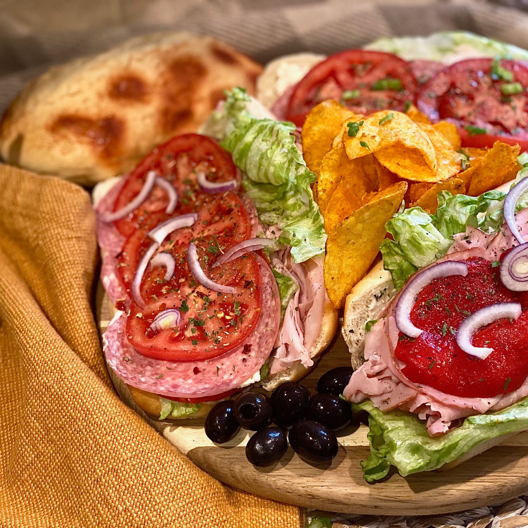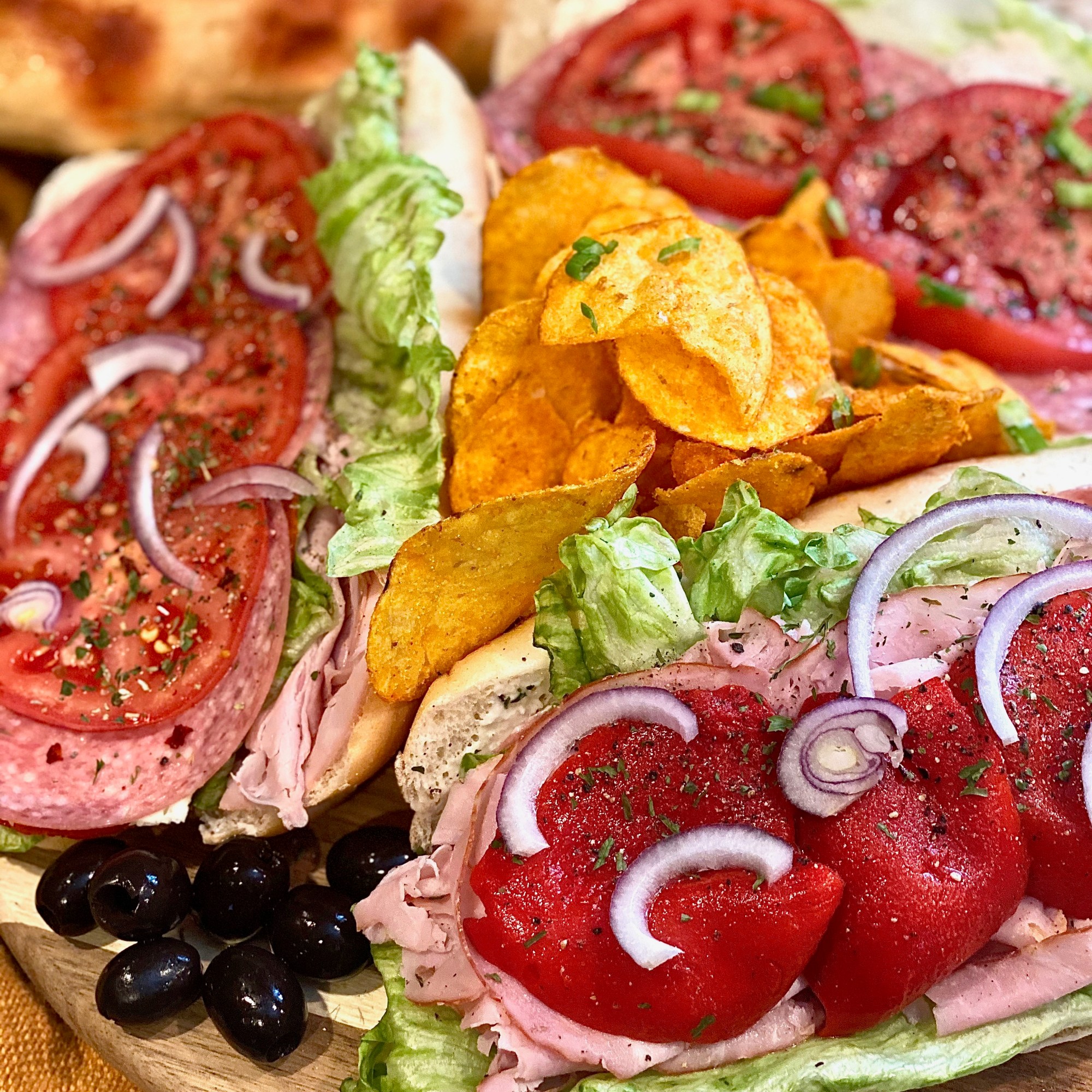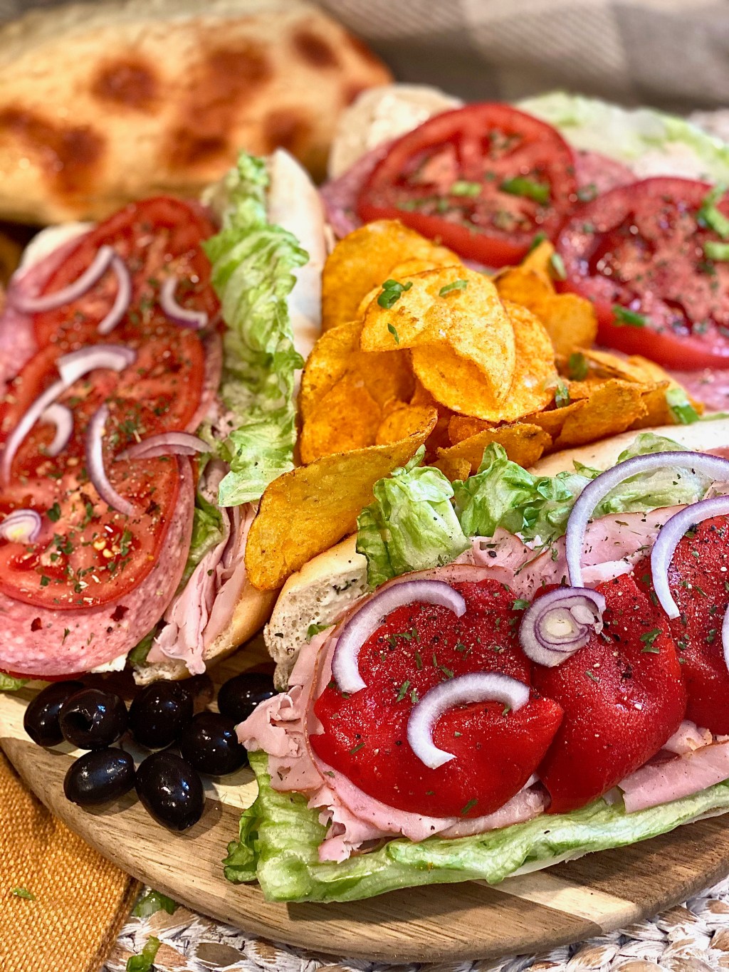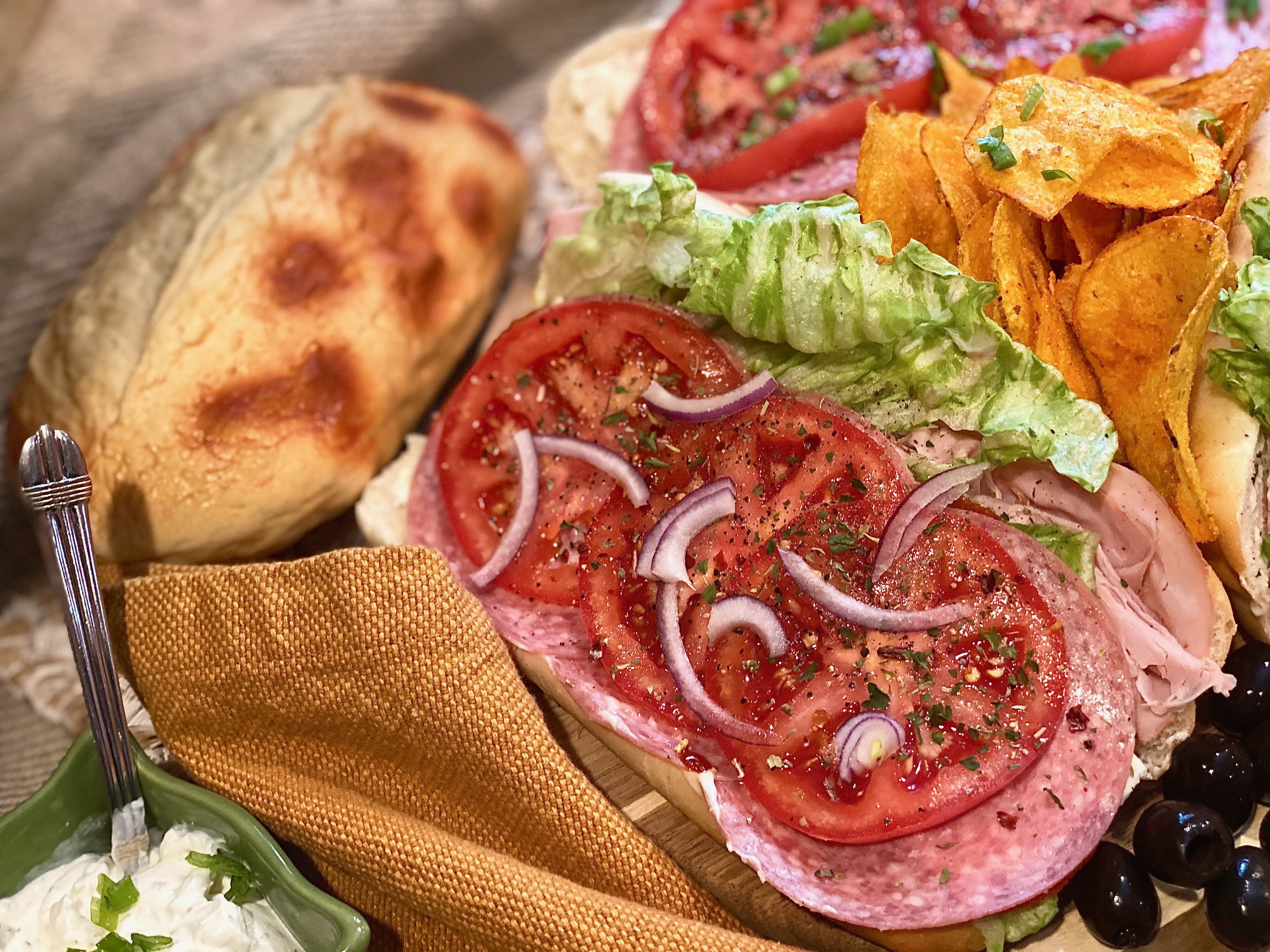 A couple days back it had just so happened that both of my parents were home during the day together and that rarely ever takes place. I got the hunch to make a really delightful board filled with a variety of different kinds of sandwiches so that we can all have a taste of each others. I served these absolutely stunning hoagies with chips and onion dip! Speaking of onion dip.. you Diamonds can look forward to my next post! It’s going to be an insanely creamy dip filled with succulently sweet caramelized onions. You definitely won’t want to miss out so be sure to follow at the bottom right hand corner if you did not do so yet!