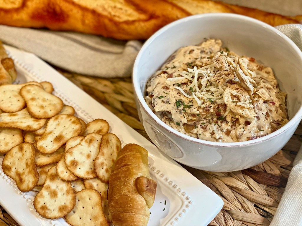 - I very much enjoy this dip warm so I did not let the onions cool before I mixed it with the cold ingredients, but if you’d prefer a chip dip and you want it cold, just transfer the onions onto a small plate, and set them in the fridge to come to the temperature of your liking.