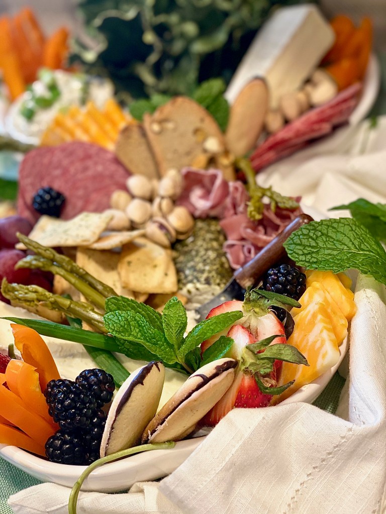 The most impeccable time to create these stunning charcuterie boards filled with goodies is the Spring season!They resemble an edible garden filled with meats, cheeses, produce, nuts, and sweet little treats that are longing to be celebrated while they are in full bloom. You Diamonds already know I am totally in love with all boards, platters, and trays no matter what they are adorned with. Regardless if I’m indulging in them or just creating them.. I am on could 9! They really are incredible for any event, occasion, celebration, or just to serve to enjoy a fresh start to an entire brand new season. Spring has sprung, Easter is around the corner, and this board is ready to be devoured!!