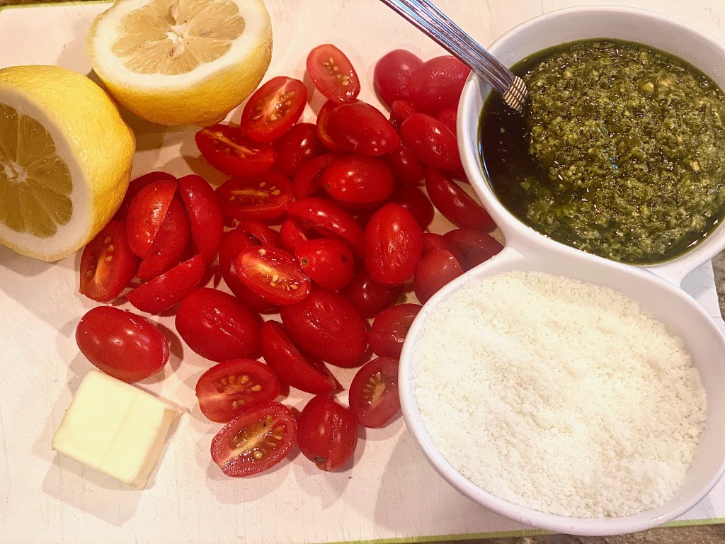 - Half of a jar of your favorite pesto. You can make it homemade if you’d like as well.