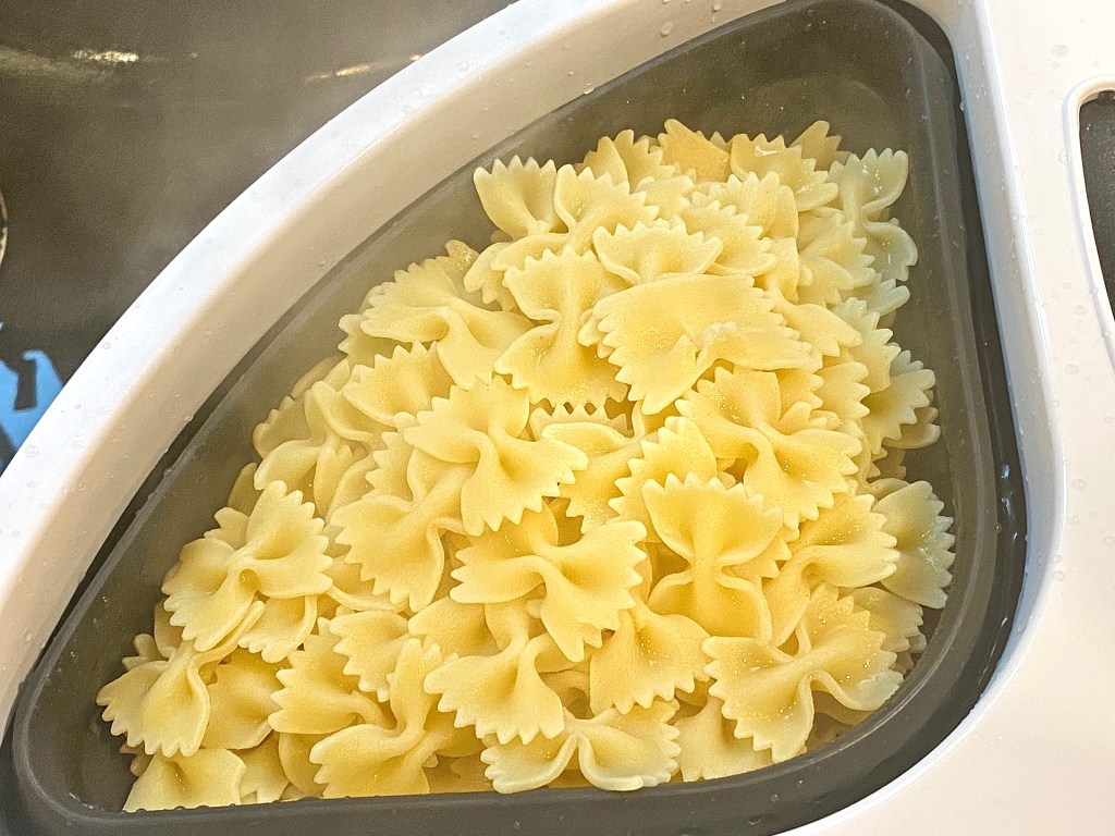 You obviously cannot have pasta salad without pasta itself! Boil one pound of farfalle pasta for 8-9 minutes while you cut up all of the other ingredients. Then once they’re cooked to al dente make sure you rinse them in cold water to stop them from cooking any further.