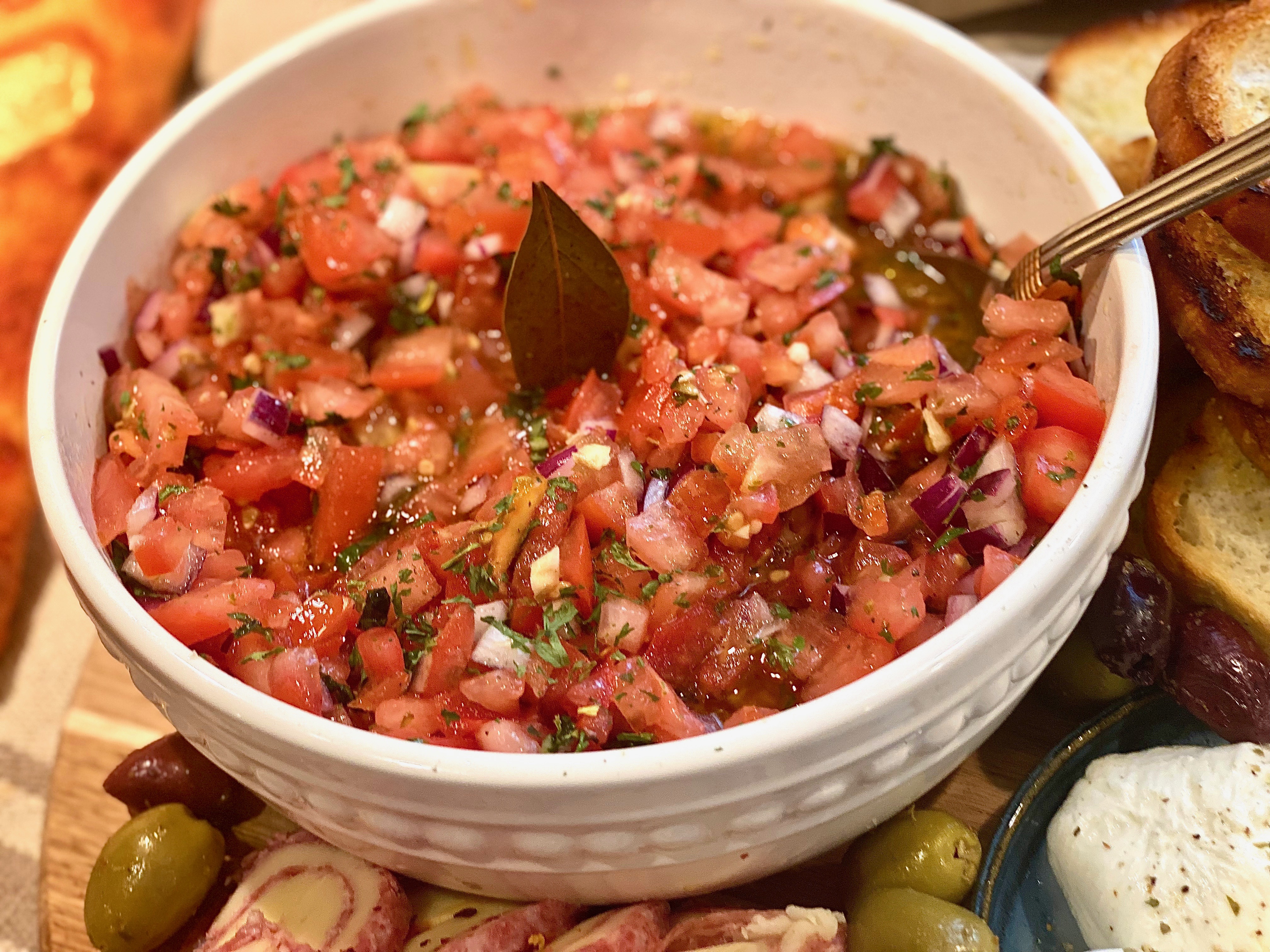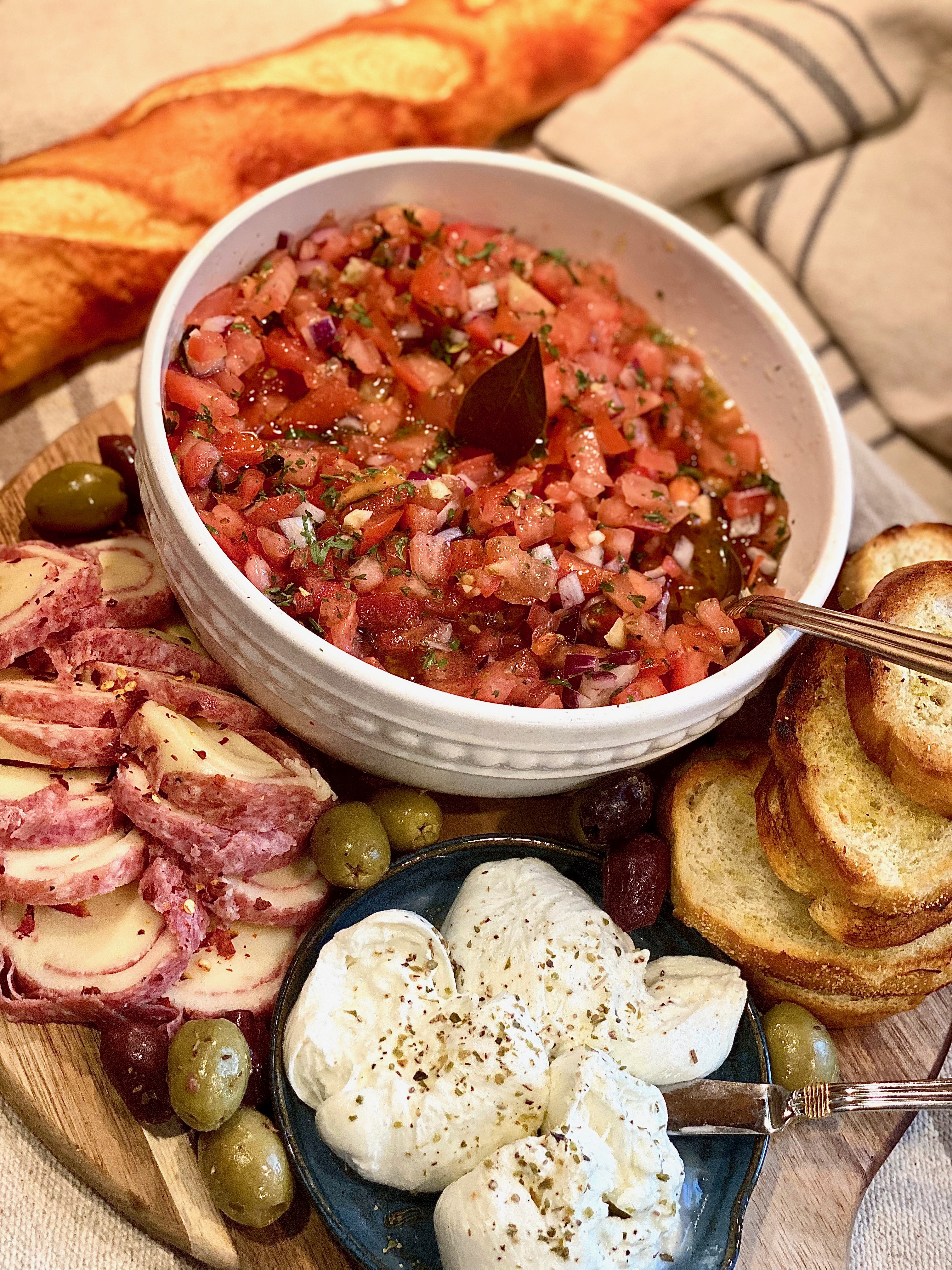 Before we dive more into the upscale end of “bruschetta”, let’s focus on the “original”! Last week my brother requested that I’d make this for him, so without hesitation.. I did just that! You all know I had to kick it up a notch of course, and build a board!
