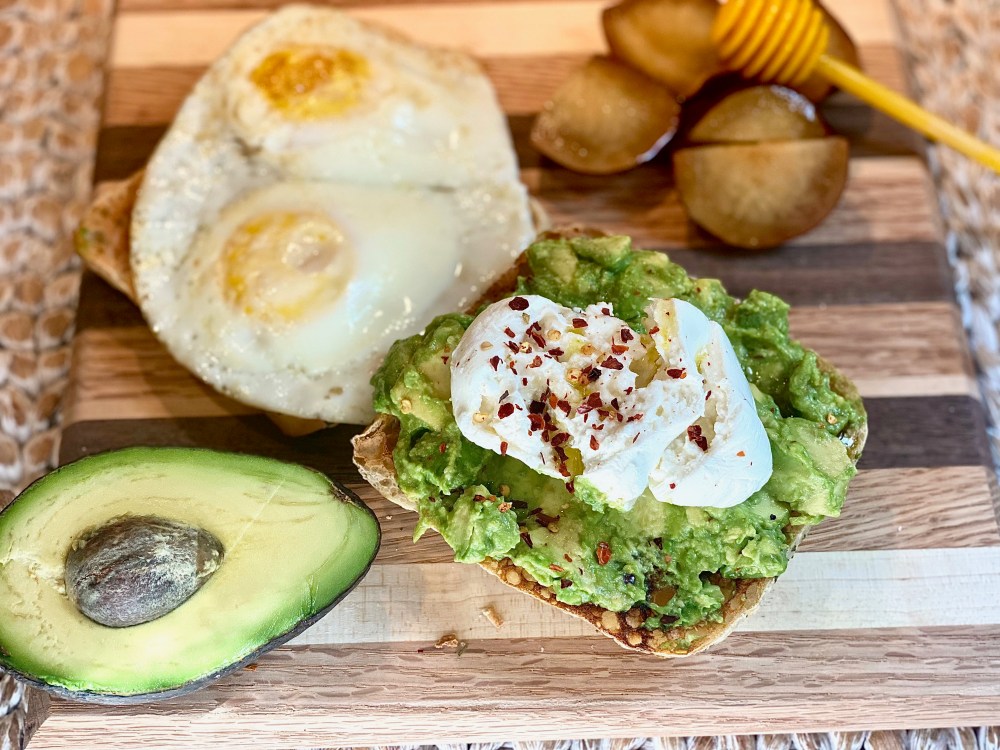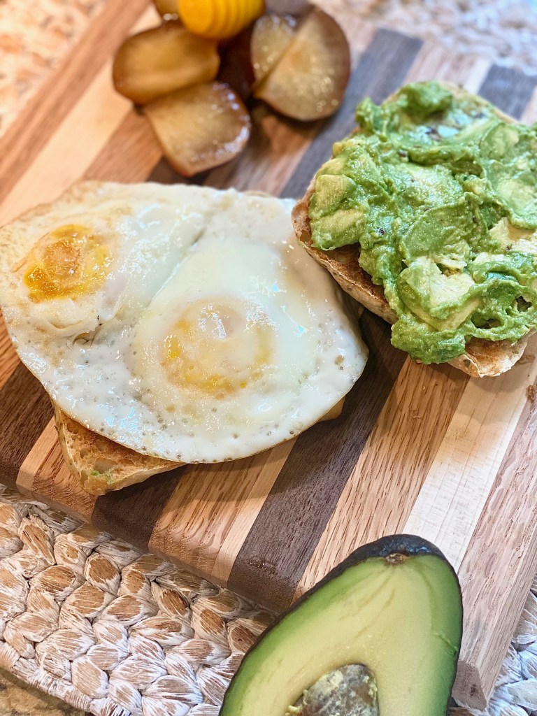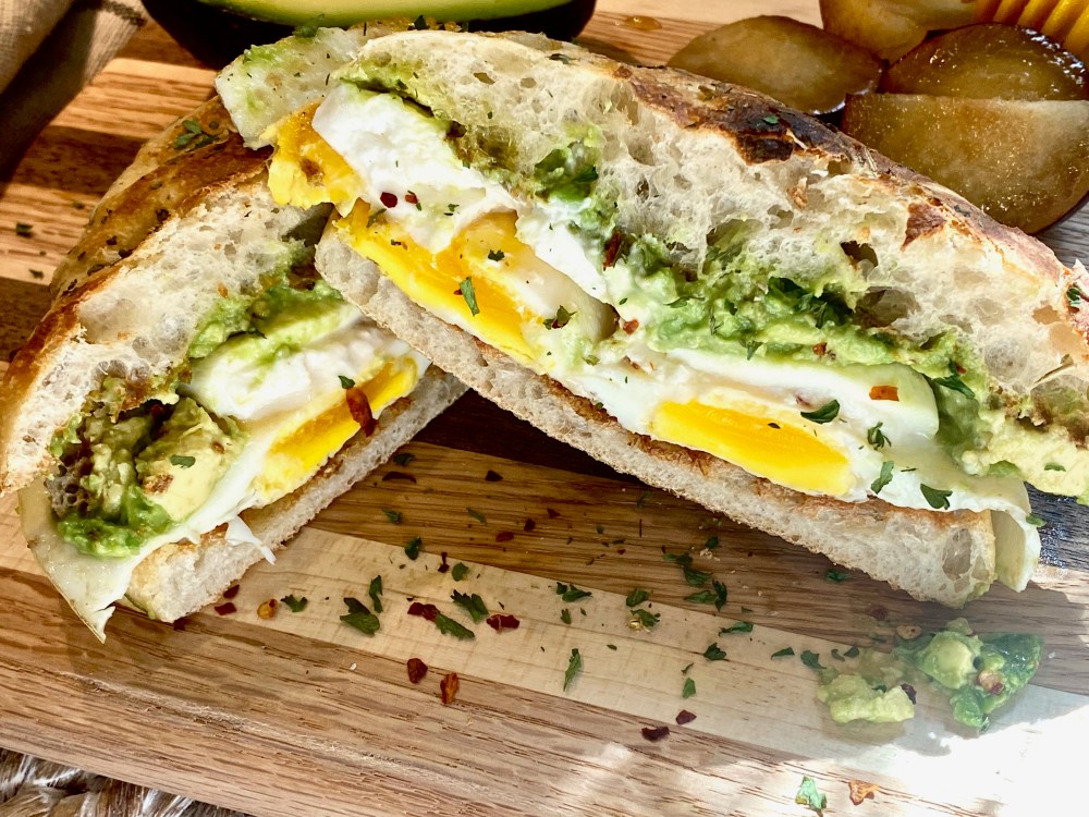 - On the other half of the bread you can place two marvelous medium cooked eggs! You can also cook them over easy, but I cooked mine a few minutes longer on low heat so that the yolk didn’t run when it was time to bite into the sandwich. I very much enjoy that at times depending on what kind of sandwiches I’m putting together, but since there is so much butteriness from the cheese and avocado, this style of egg was ideal!
