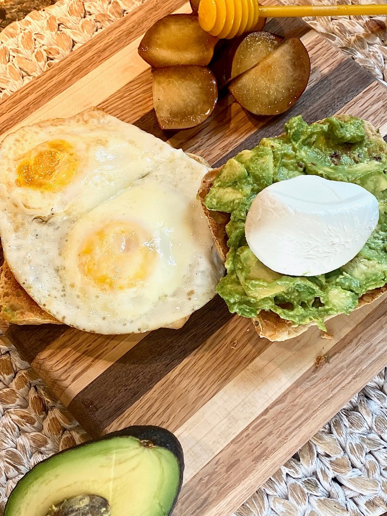 I am absolutely in love with breakfast sandwiches! They’re one of the things that I could eat no matter what time of day, or what the occasion is. This is the type of breakfast sandwich that can be served at all different kinds of celebrations. Brunch bashes and bridal showers are events that would be beyond perfect to serve these bistro sandwiches at! As you Diamonds already know I am extremely obsessed with avocado. I could eat it every single day paired with endless different foods. One of the things that I have been pairing it with the most lately has been burrata. It is an exquisite cheese that has an outside of mozzarella and an inside of ricotta. The two very unique and slightly different creamy textures go together like peanut butter and jelly.