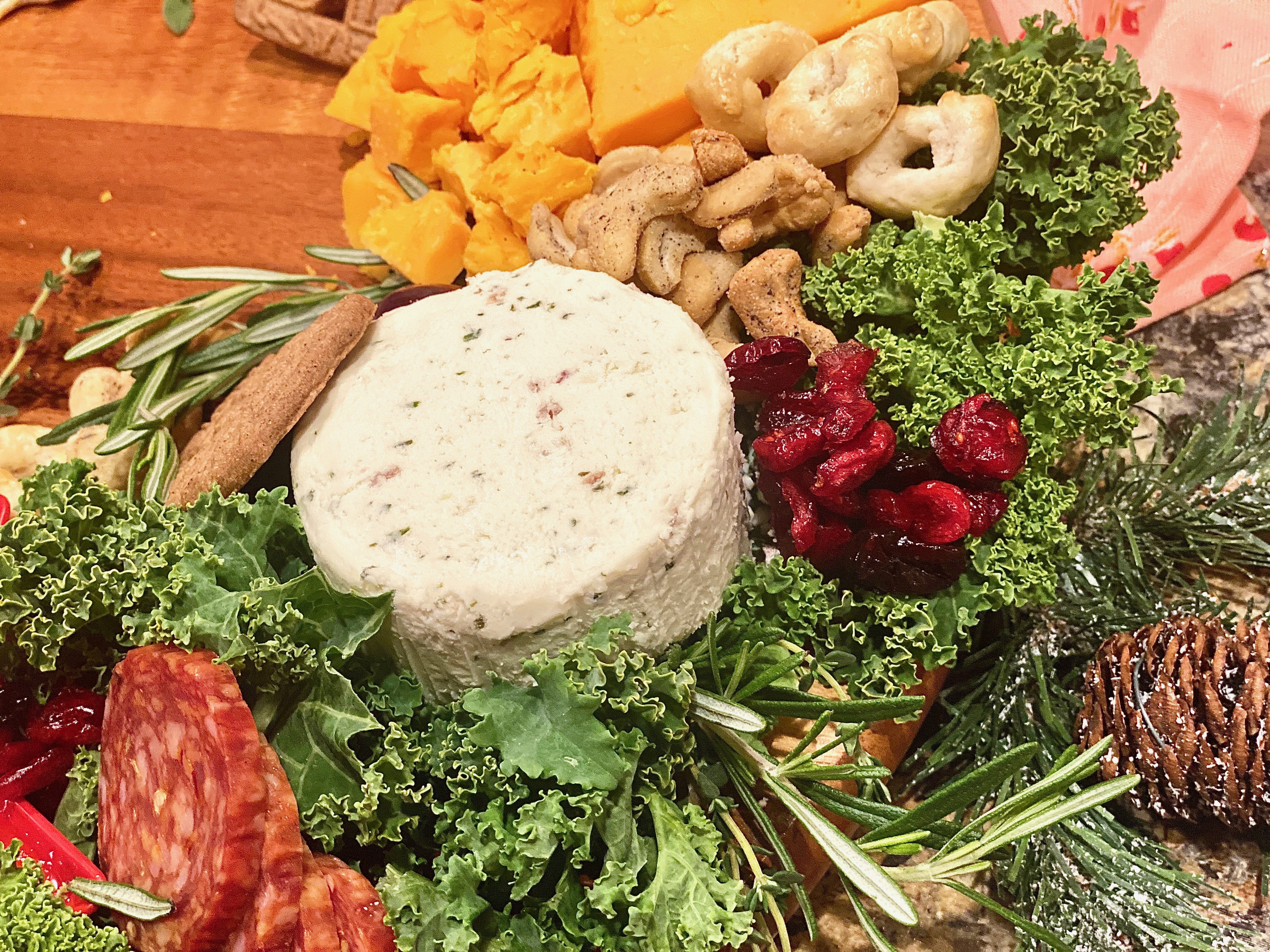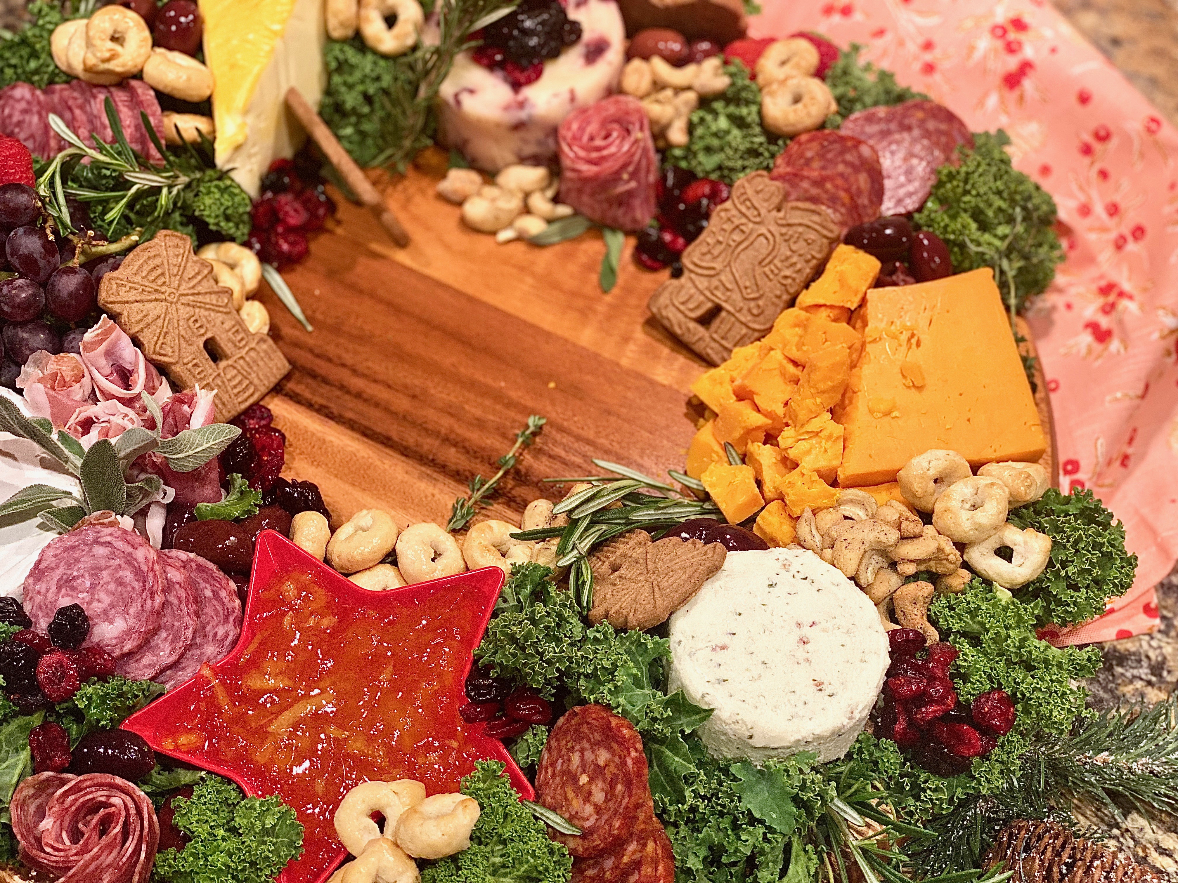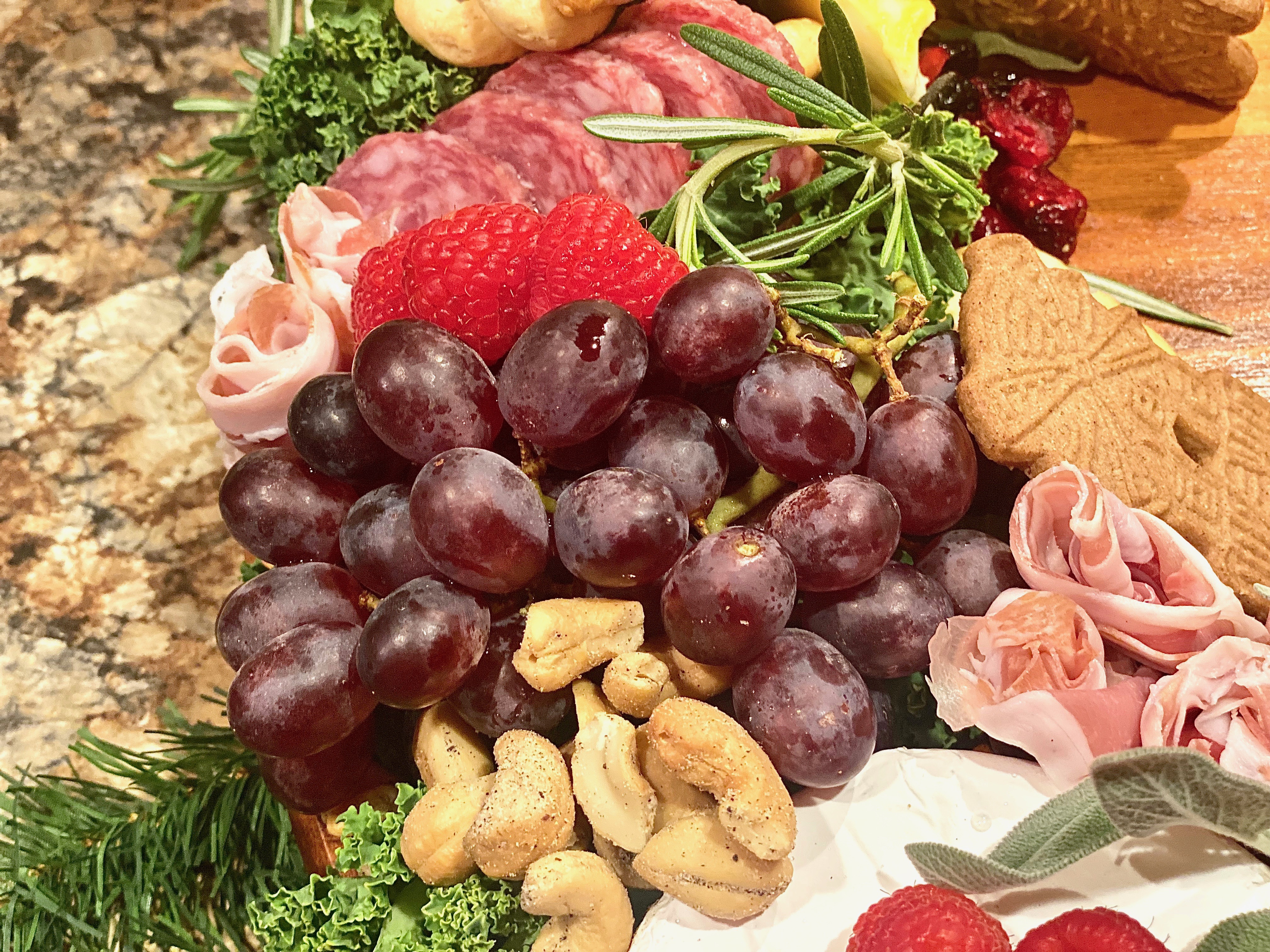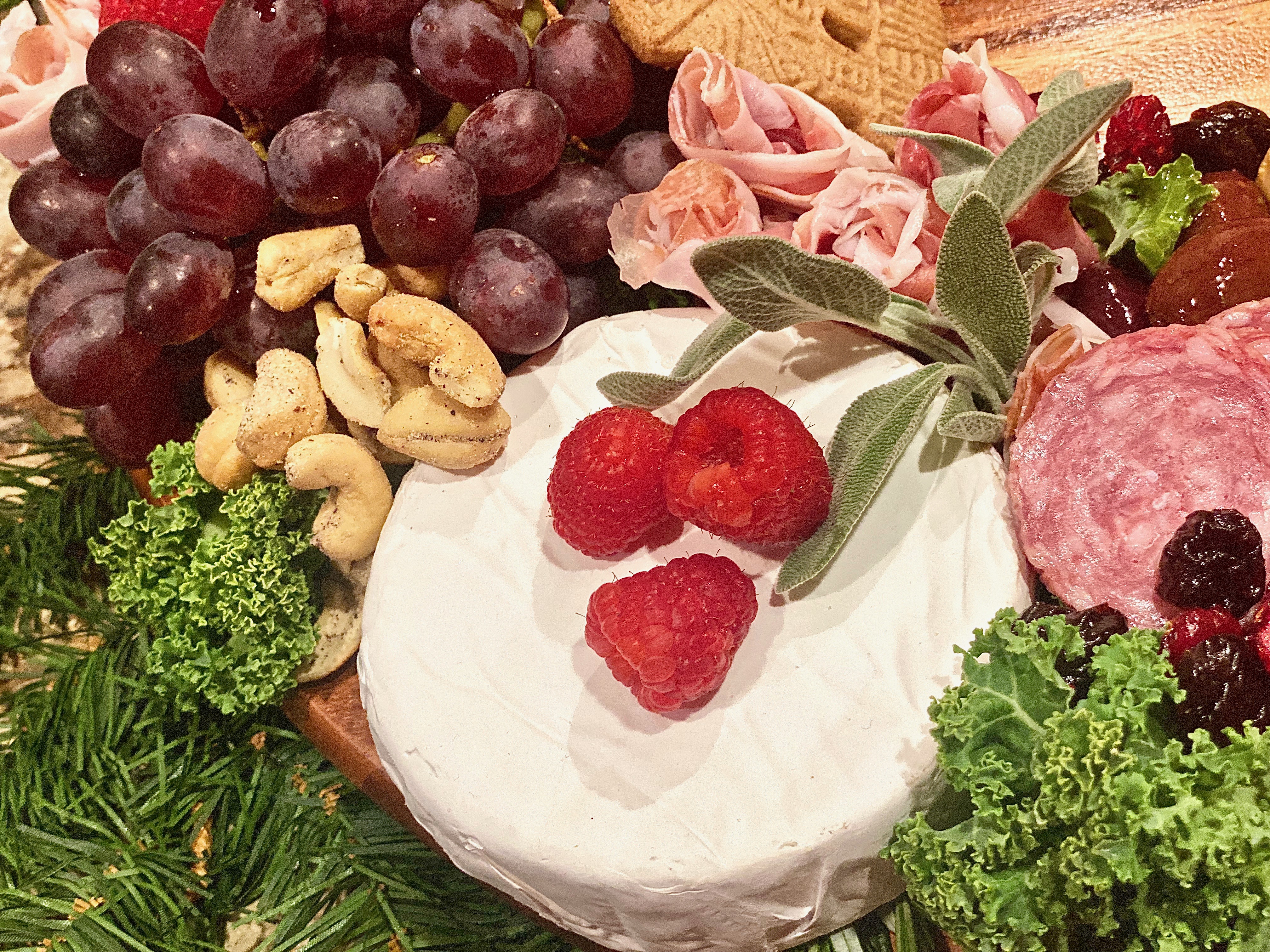 - Red grapes! I would definitely suggest using red grapes for this charcuterie wreath instead of green grapes. Green grapes remind me more of Spring and Summer where there’s warmer weather and things of that nature!