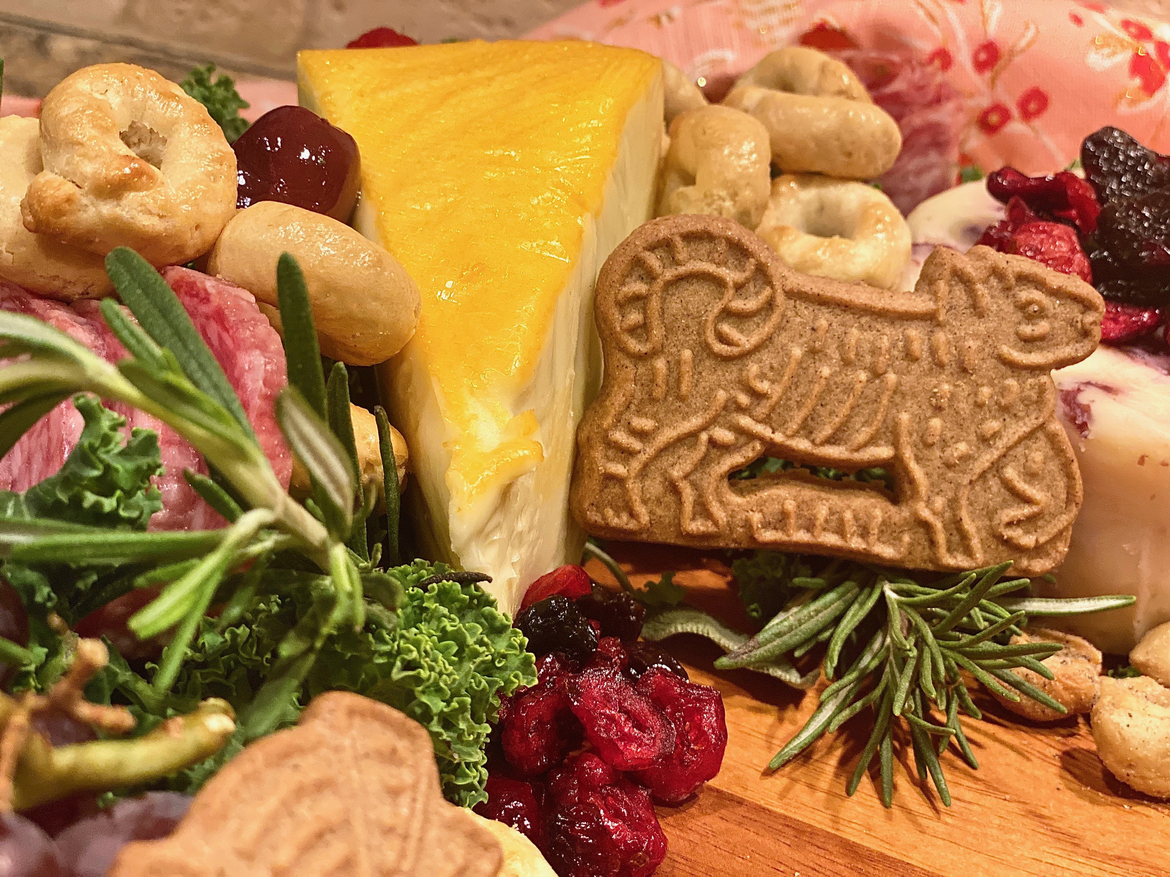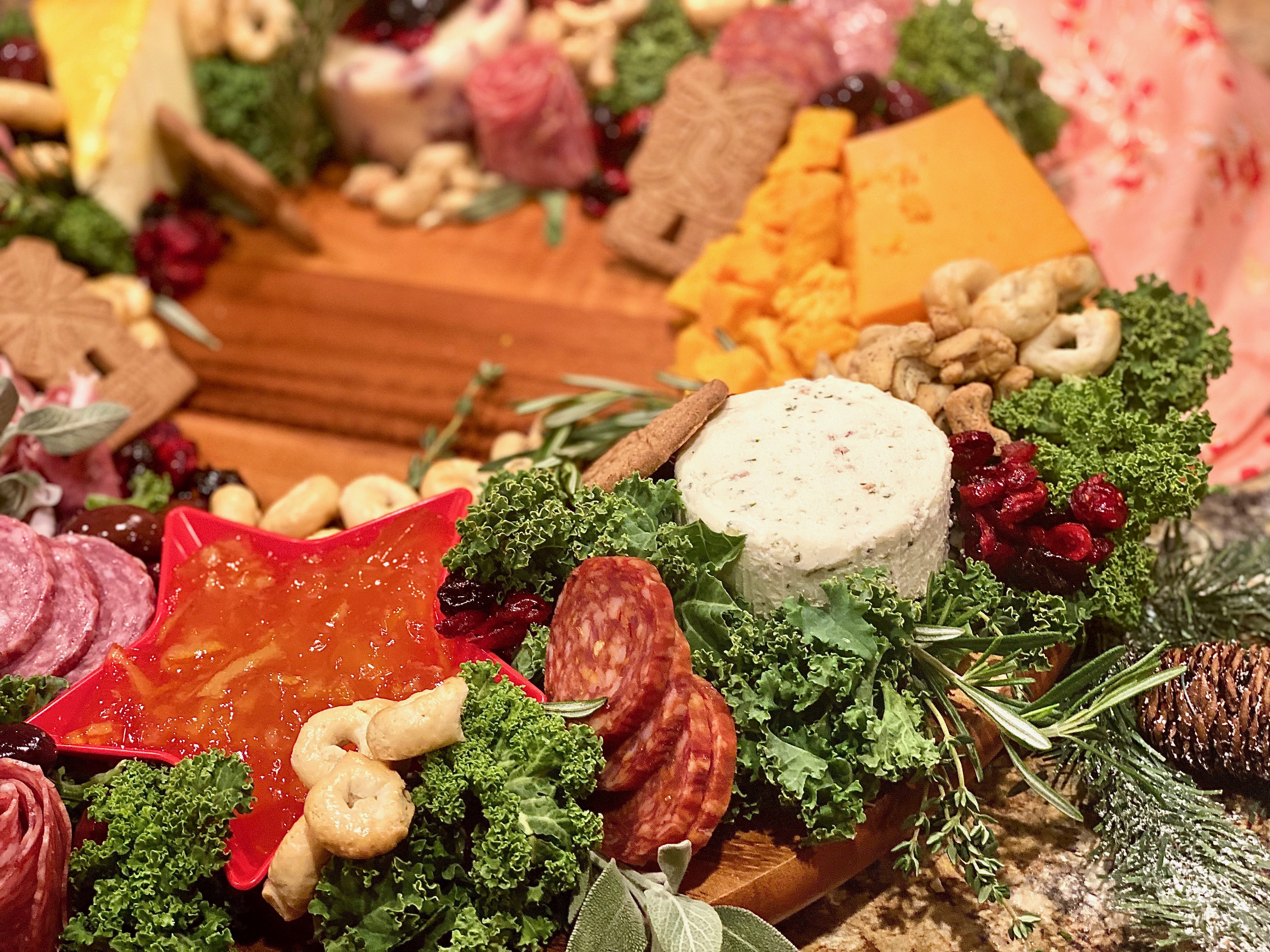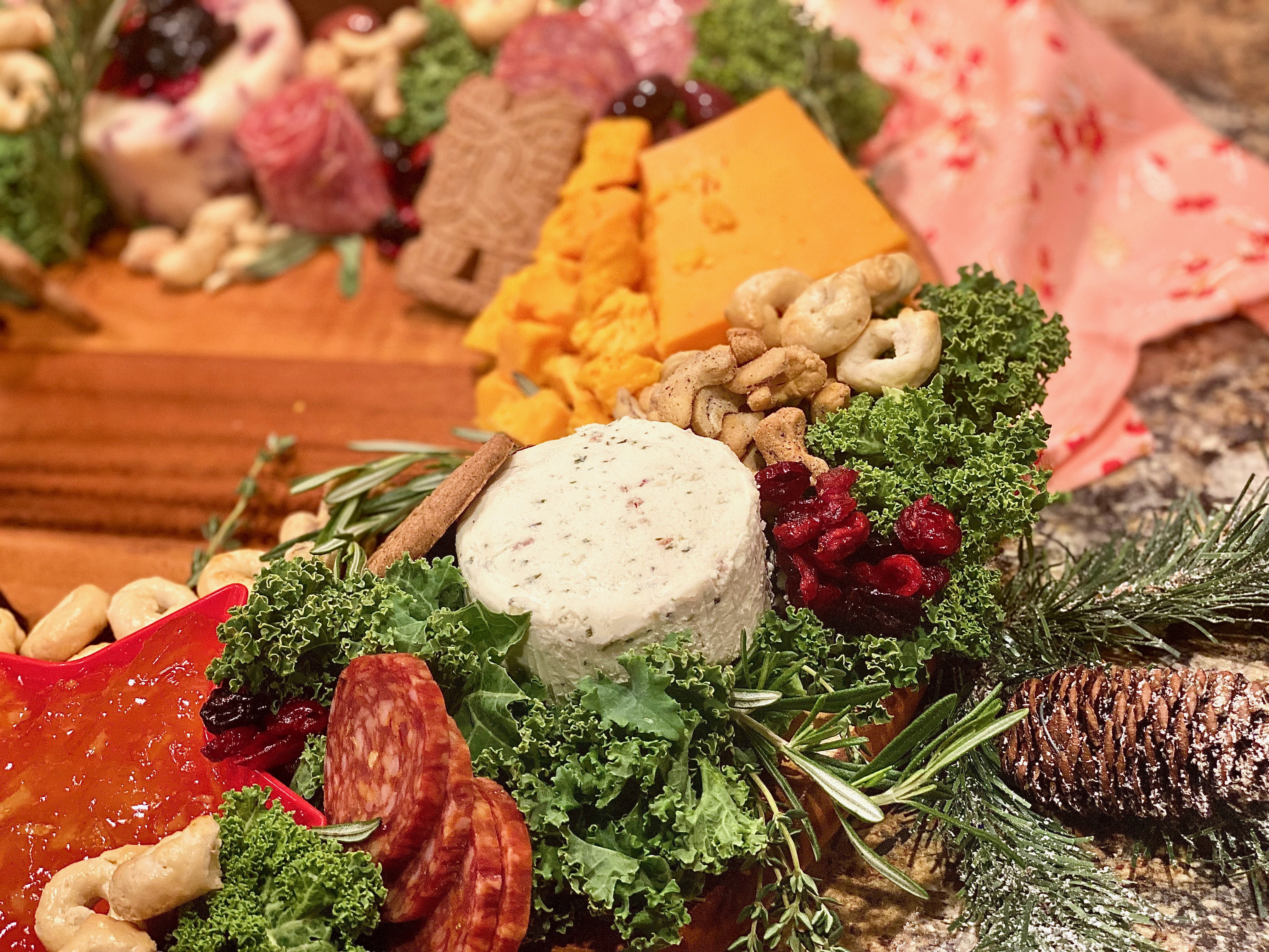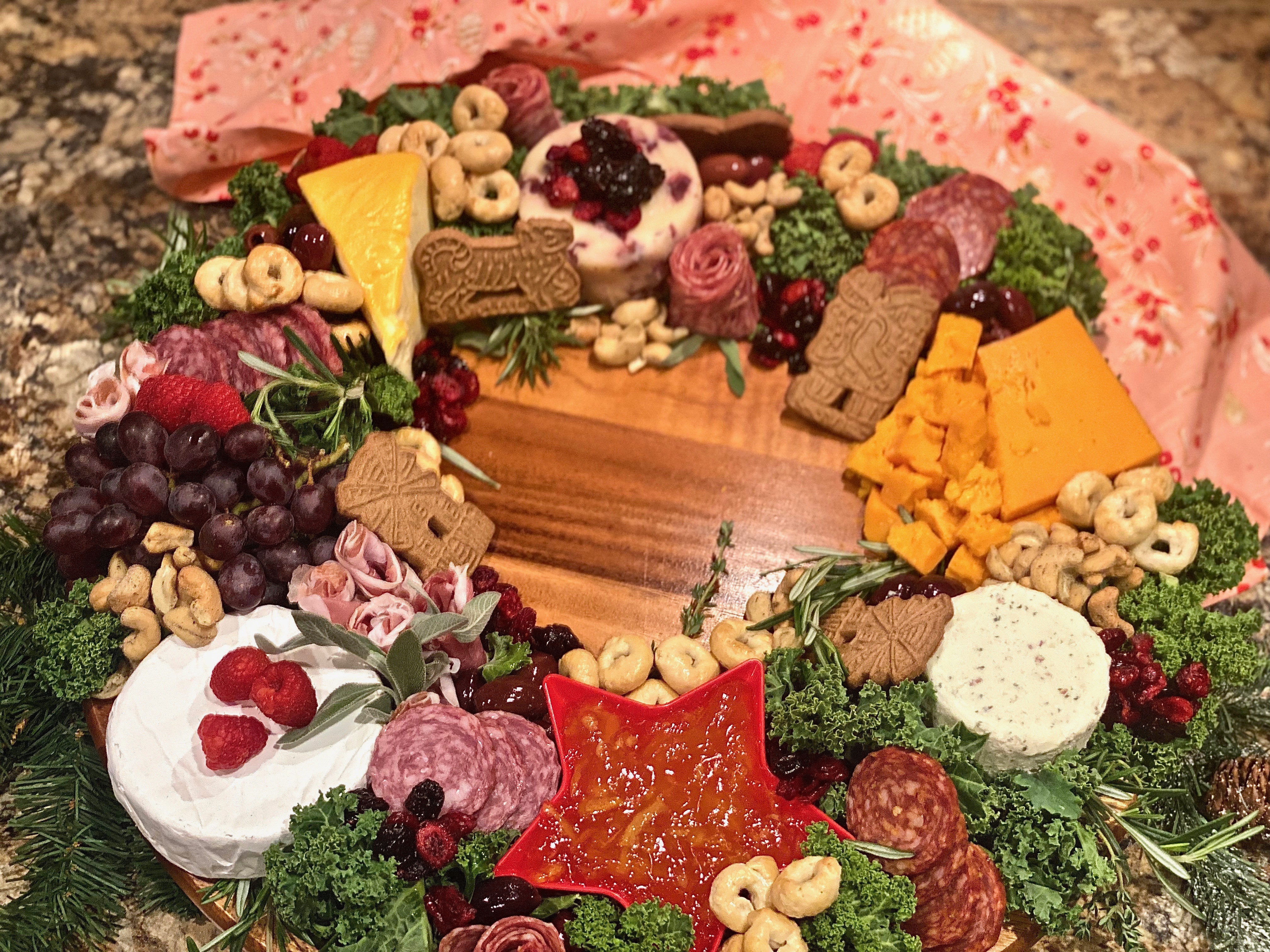 - Red grapes! I would definitely suggest using red grapes for this charcuterie wreath instead of green grapes. Green grapes remind me more of Spring and Summer where there’s warmer weather and things of that nature!