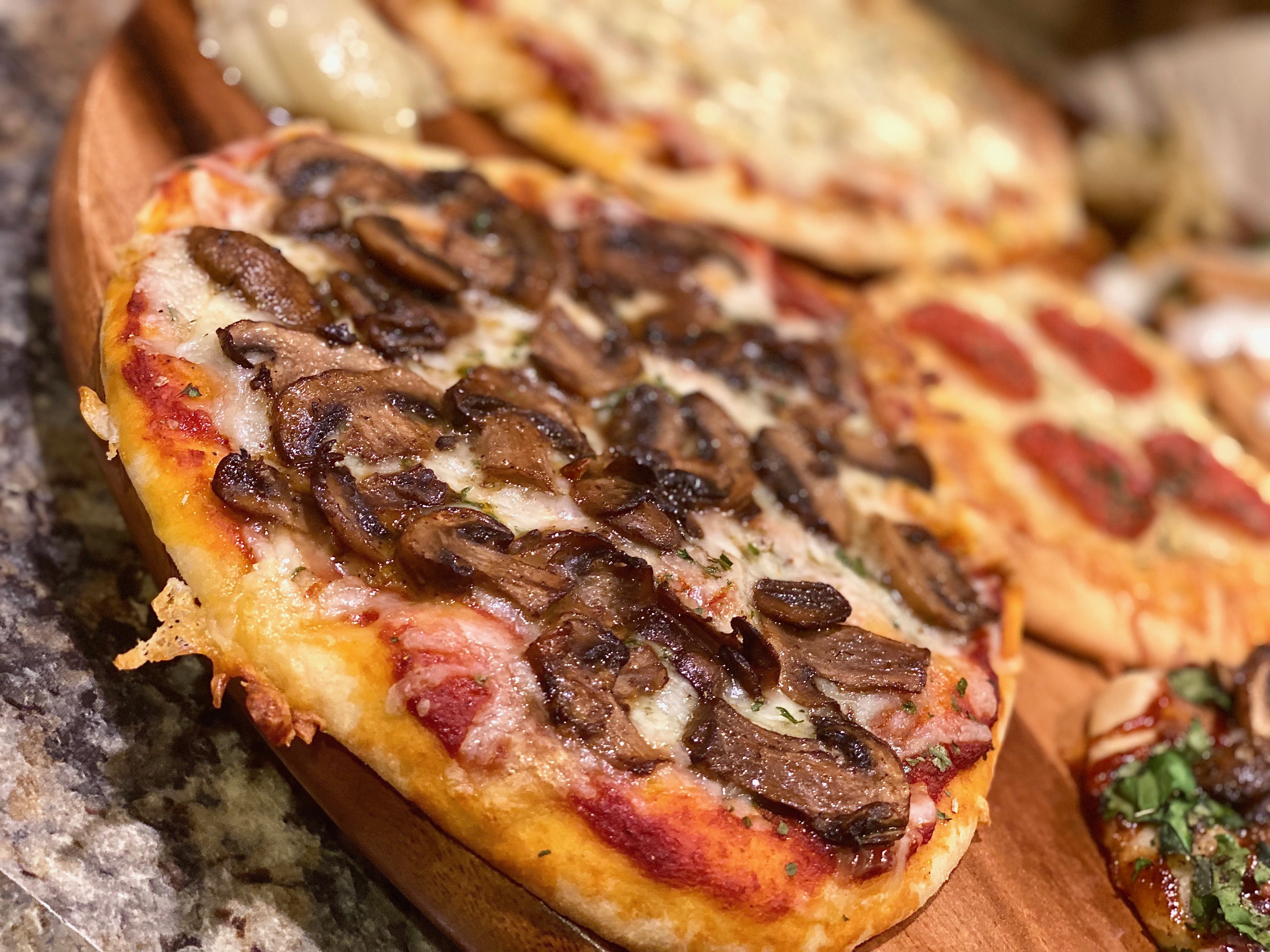 The first flatbread I put together was a gorgeous cheese and mushroom loaded one!