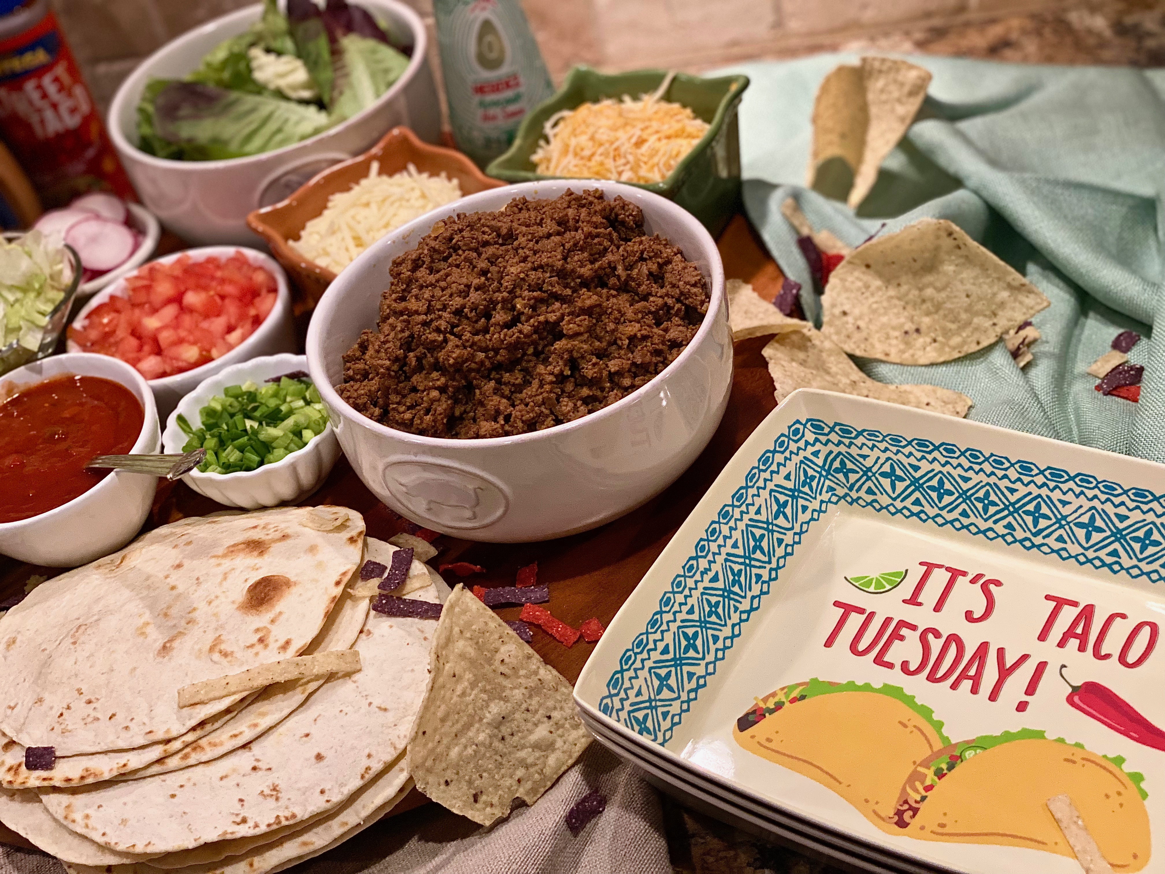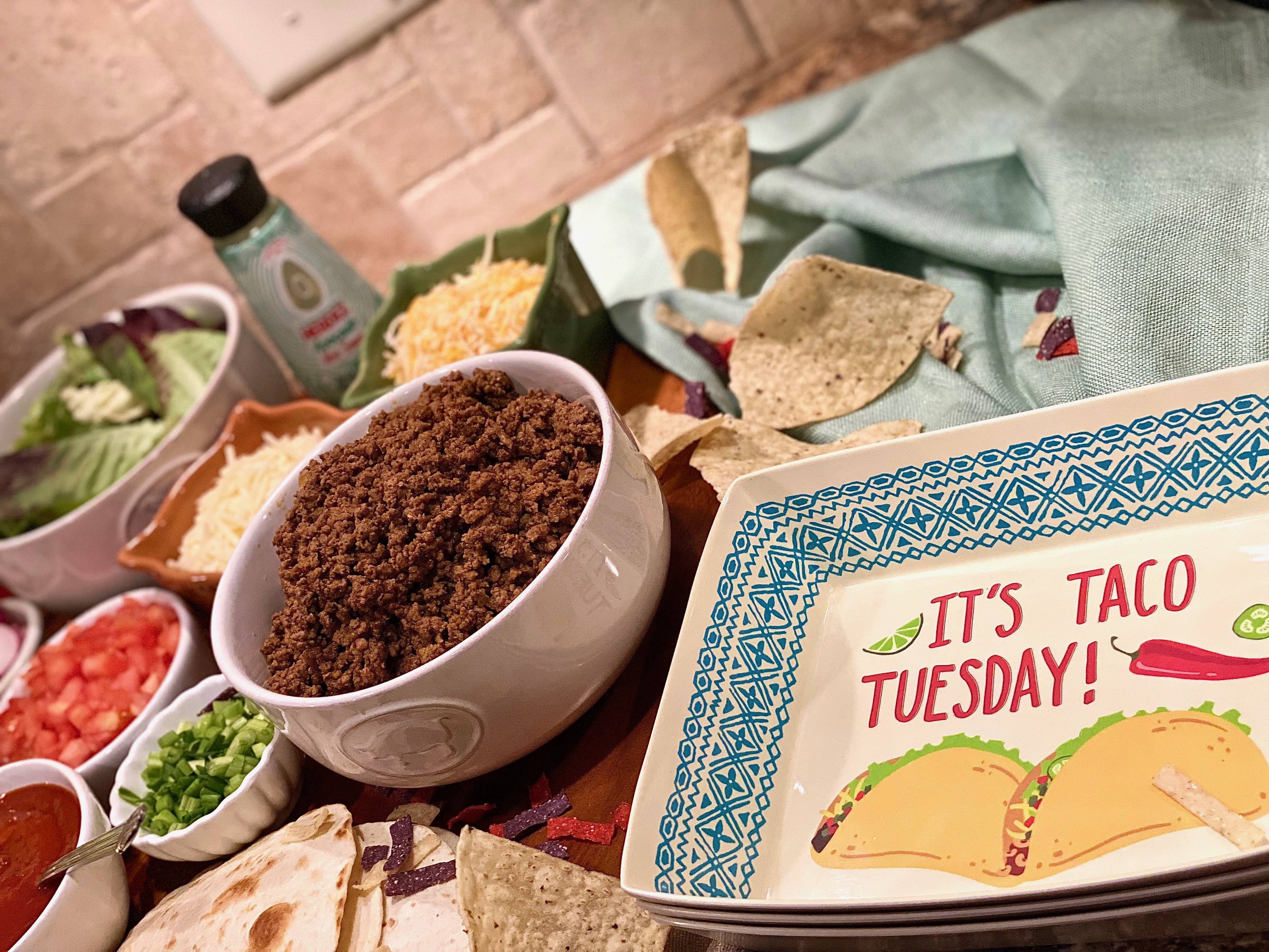 I found these amazing “IT’S TACO TUESDAY” serving platters a few months ago and I just had to get them for days like today! My entire family fell in love with how these dishes were shaped because when you serve two, or more tacos inside they stand up right instead of having to lay your taco directly on it’s side where everything is able to fall completely out of it. They’re amazing and I highly recommend purchasing something such as these! Even though it is taco Tuesday night for the family, I want you to know that you can most definitely serve this build your own taco board for a Galentine’s party this upcoming season, or even for a Super Bowl bash! Your friends and guests will fall in love and be so appreciative of the options!