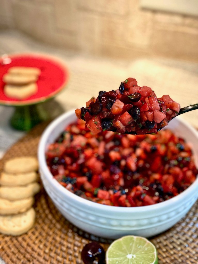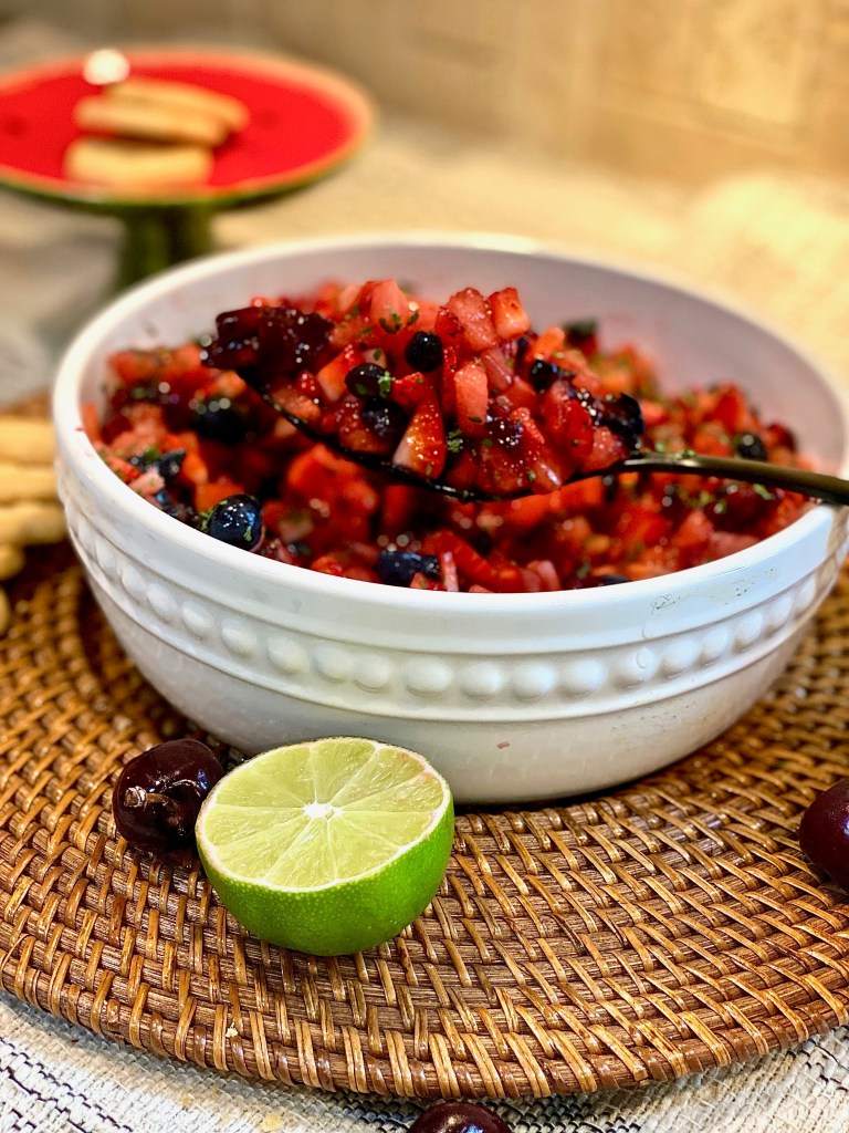 You Diamonds who have been following me for some time now know that I absolutely love being creative and showing you all things you may have never seen or tried in your life before. This fruit salsa is the epitome of that! Original savory salsa that’s spicy and filled with fresh vegetables, oils, and herbs is simply succulent, but sometimes you want to change a favorite thing into a new favorite thing! Now, I’m not just talking about throwing strawberries or some sort of fruit into traditional salsa to give it a touch of sweetness! I’m talking about taking the risk of making the entire salsa eating experience sweet, through and through. A dessert salsa if you will!!