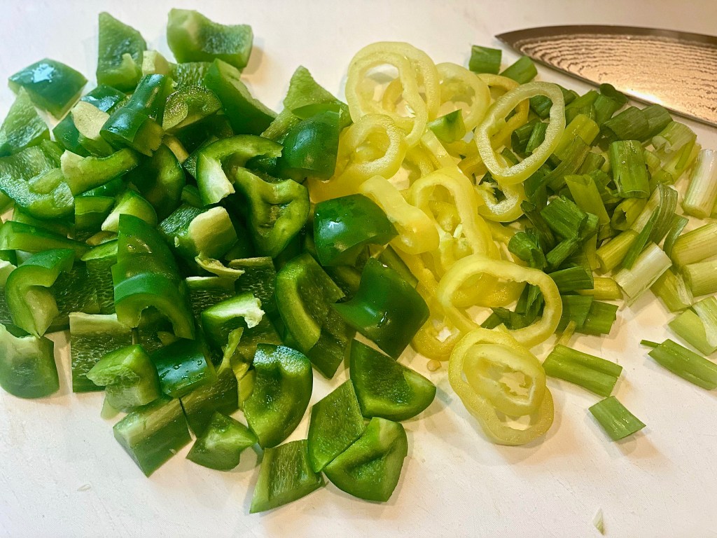 - A green bell pepper, chopped.