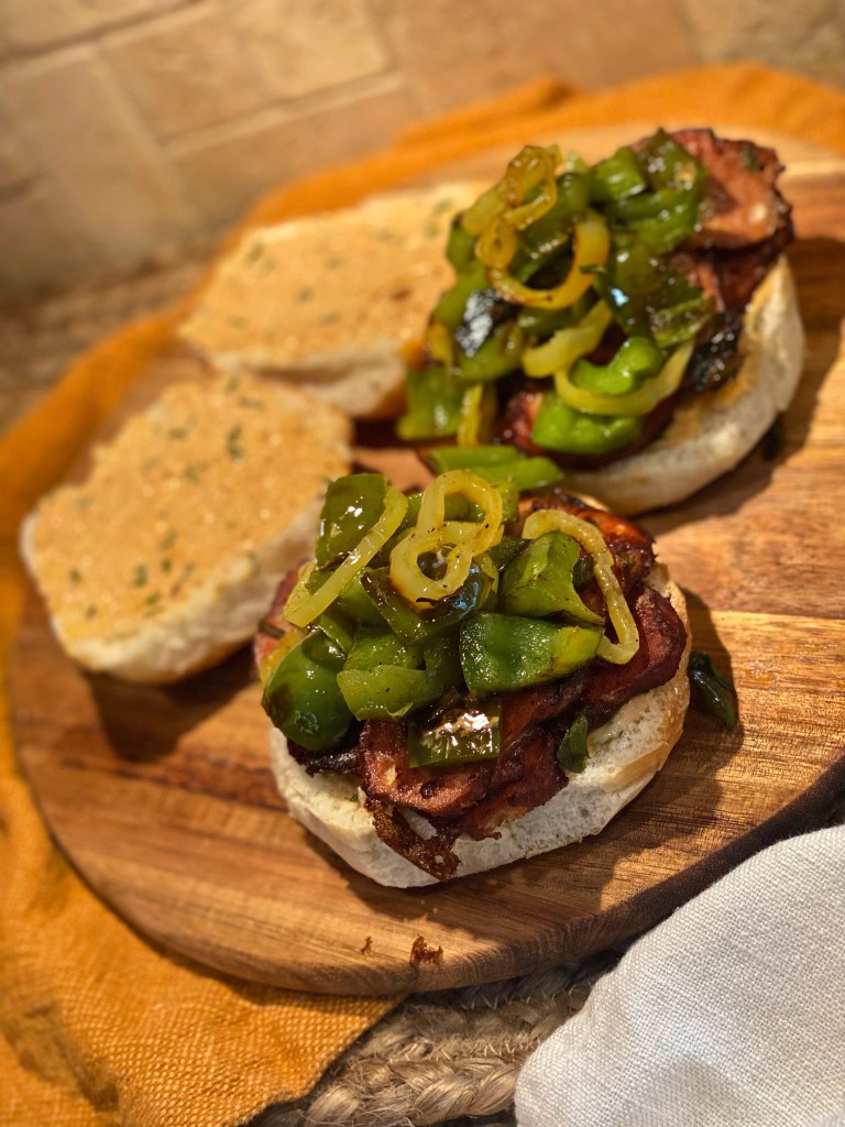 The most perfect savory, flavorful, and juicy sandwich to transition into a brand new season with. You know it’s a damn good sandwich when I decided not to add slices of cheese on top because it honest to god doesn’t need it. It’s all about the bread, the meat, and of course, the juicy, farm fresh peppers! Serve these big beautiful delights with your favorite chips and some salty, garlic pickles. That’s all you’ll need for enjoying a satiating lunch, dinner, or to bring on a picnic for a wonderful afternoon date in the park!