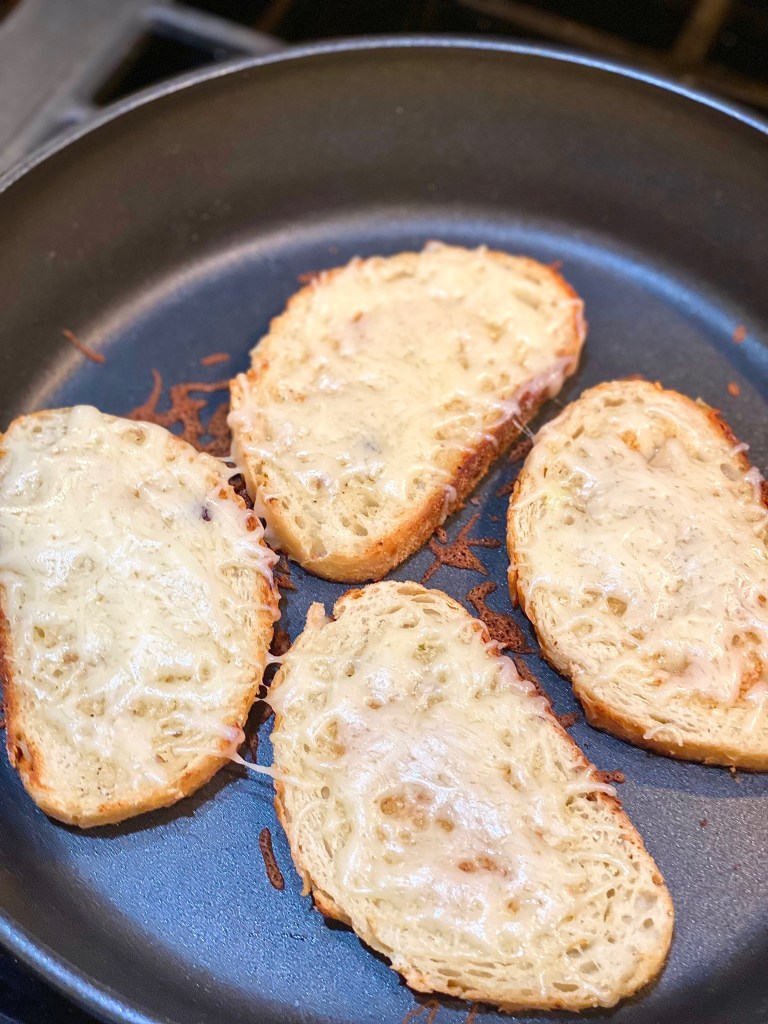 - 1-2 tablespoons of olive oil depending on how much bread you’re toasting.