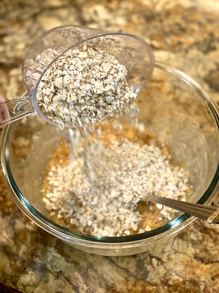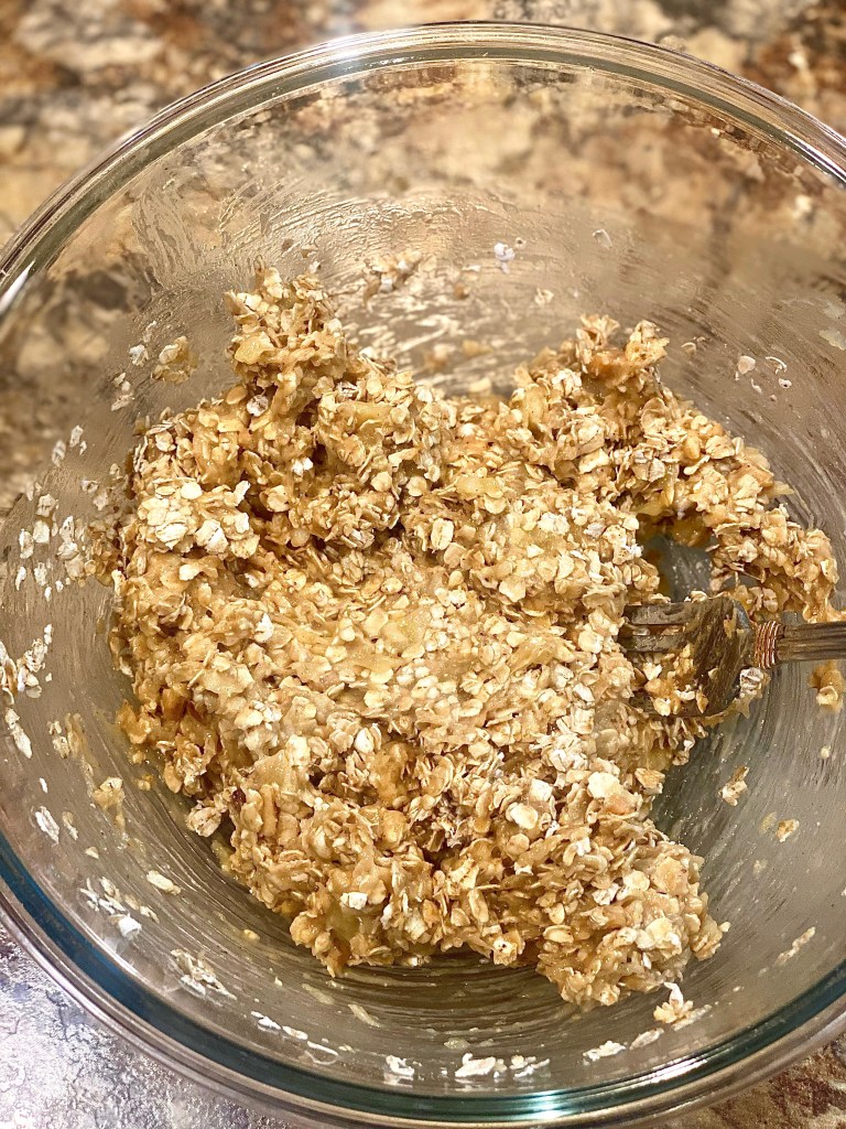 - Mix all of the snacks in with the banana, peanut butter, and oat mixture.