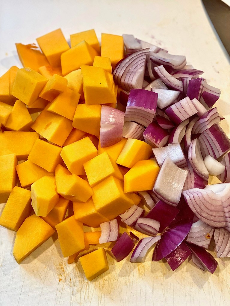 Before roasting the harvest vegetables we need to of course chop and prepare them for seasoning!