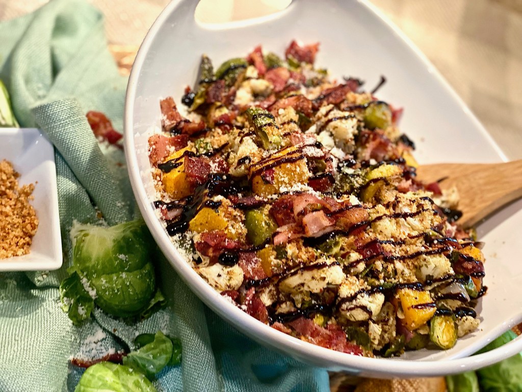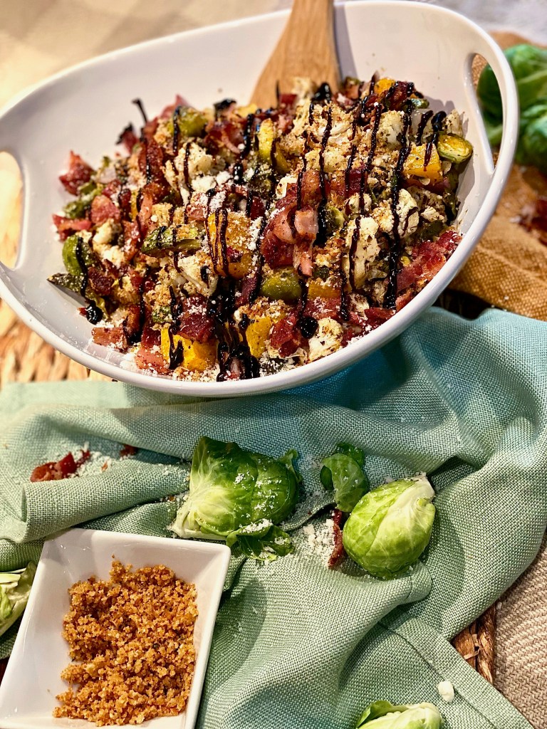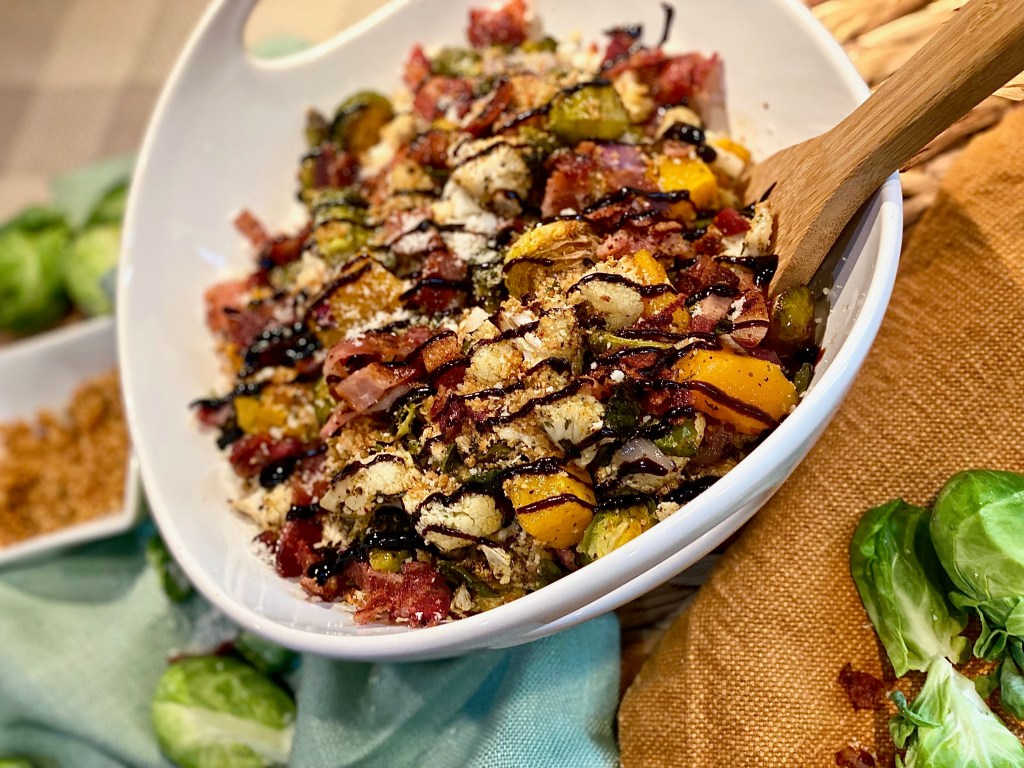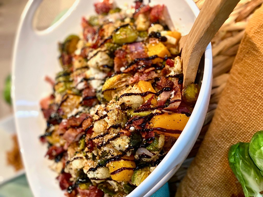 When we think of the perfect Thanksgiving meal we will without a doubt start having dishes of stuffing, turkey legs, mashed potatoes, candied yams, and green bean casseroles dance around in our heads! Normally, we’re not necessarily worried about planning an incredible veggie side dish since we tend to look forward to the other recipes too much considering there is a year long wait for this special meal. However, this hearty seasonal dish is filled with wonderful ingredients that will elevate the vegetables to a whole new level making them truly unforgettable. Once you make this dish for your Thanksgiving table you’ll want to make it every single year after that. I’m a huge texture person when it comes to the culinary world which makes me love this dish so much because it has so many different ones! Usually, when a recipe has endless texture, it also has an unbelievable amount of flavor. Big flavor is so important when creating food! Even if there are only a few staple ingredients, adding in really good herbs, seasonings, and garnishes make it shine!