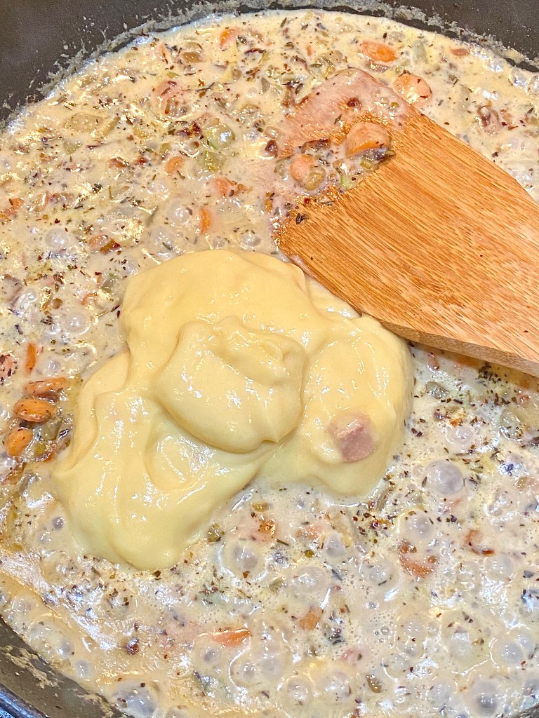 - Whisk until fully combined and let the creamy sauce simmer for 1-2 minutes.