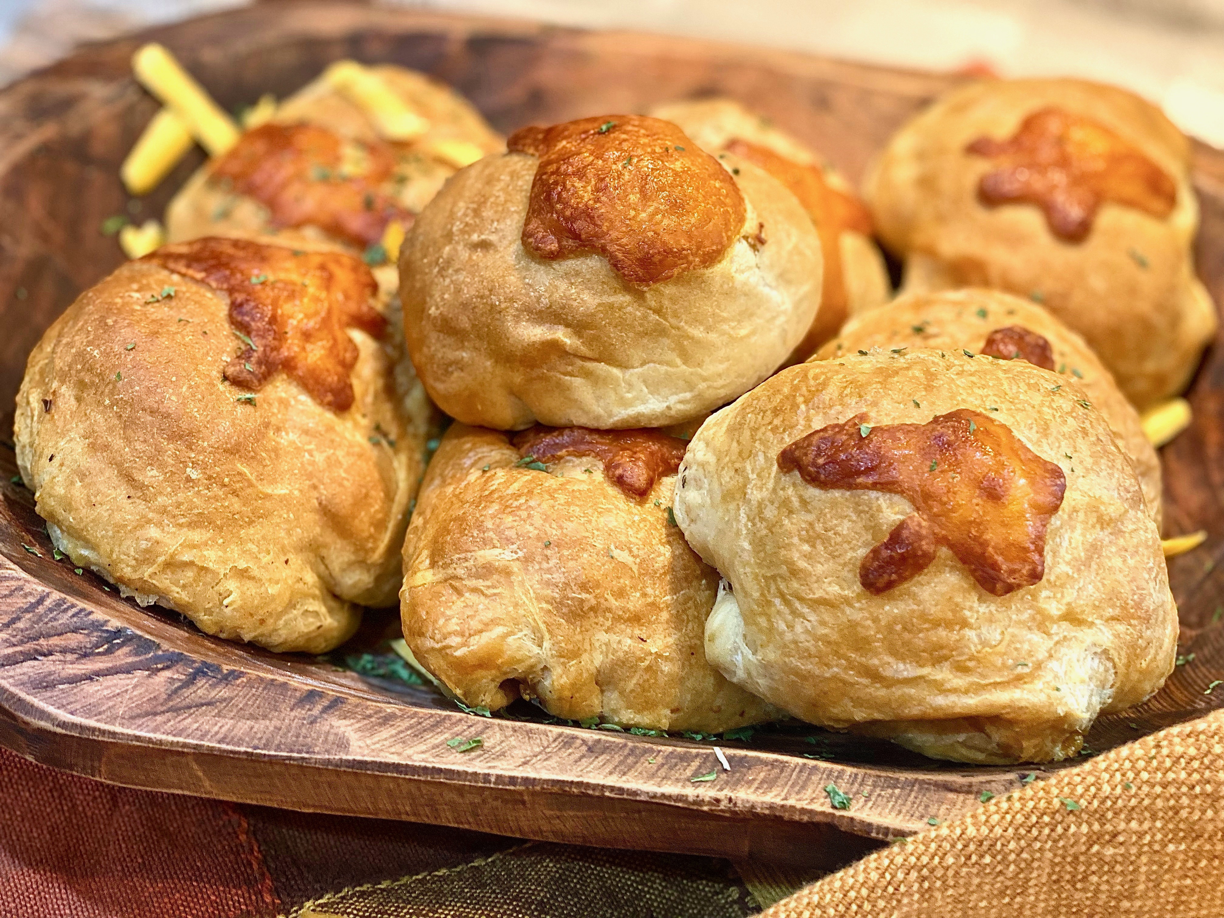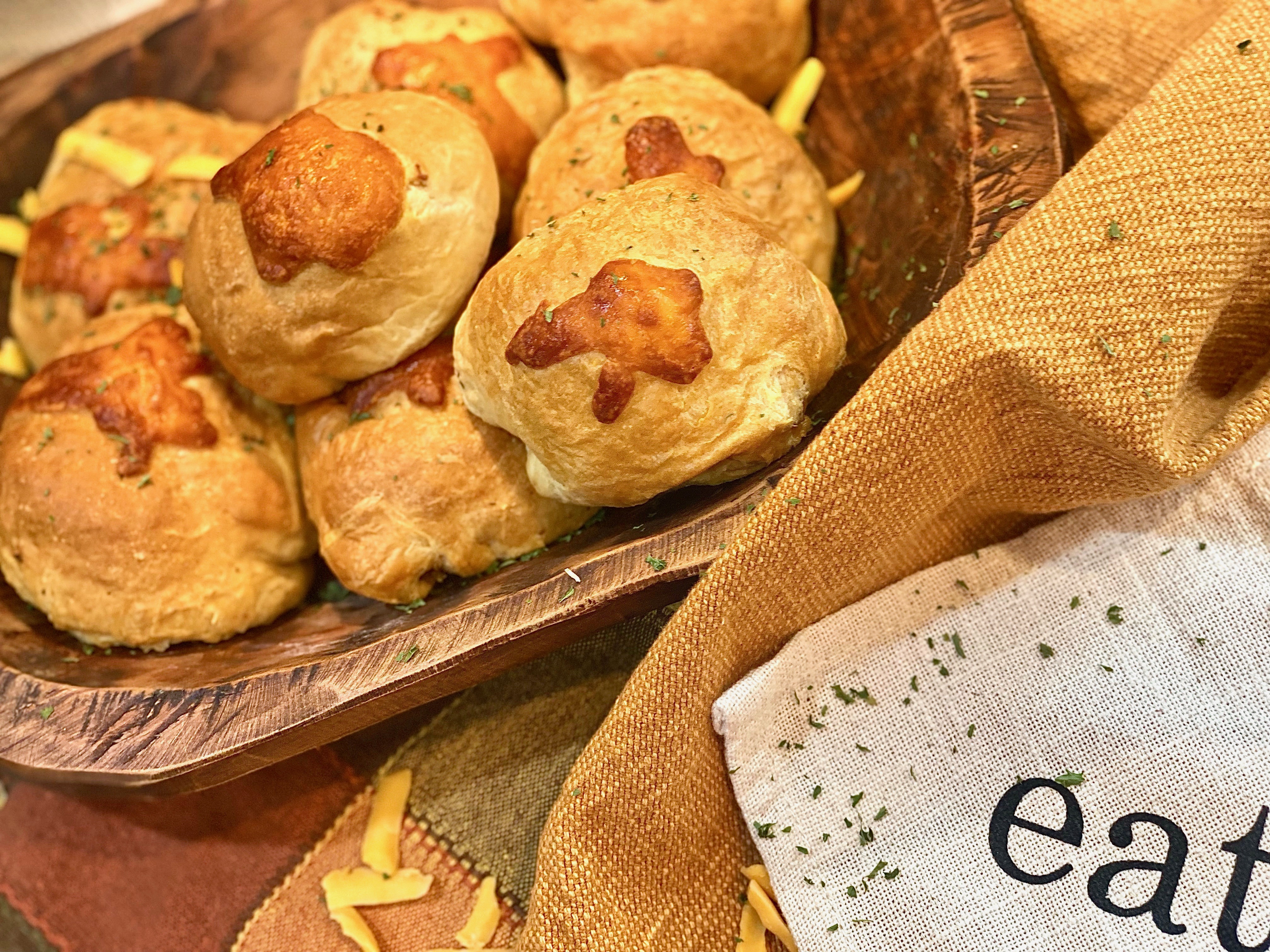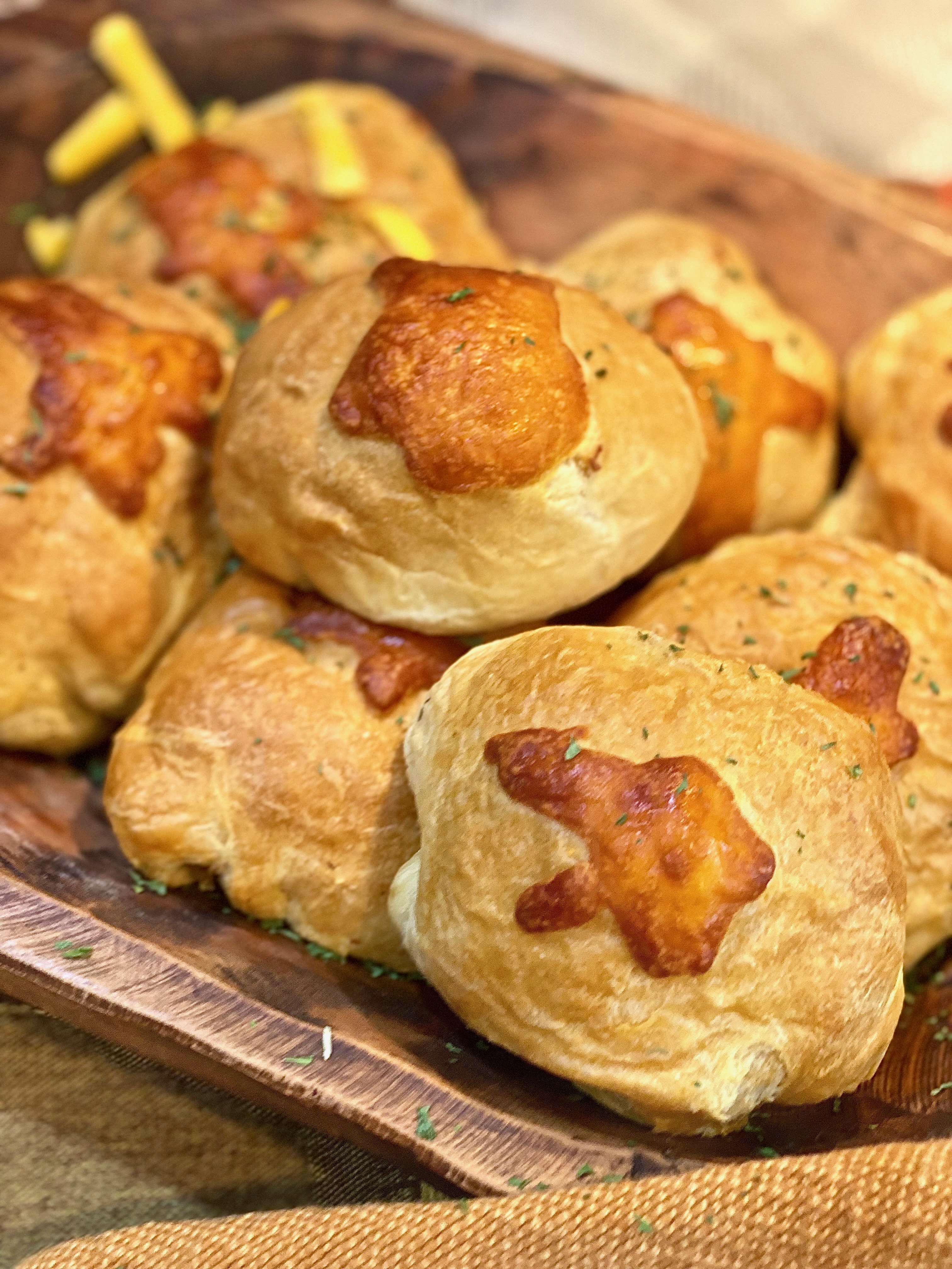 Talk about absolute comfort! All you need for enjoying a full, fabulous meal besides these beautifully stuffed biscuits is a gorgeous, refreshing side salad. These cheesy bombs really are a complete meal! Each biscuit is filled with ooey-gooey cheddar cheese and savory chicken pot pie filling. They’re brushed with butter and garnished with a pinch more cheese so that it can melt marvelously on top as they bake in the oven. You can make these for any occasion, party, or get together. This is something everyone will go nuts over and just fall so in love with, especially during the holiday season. Chicken pot pie is something we have all grown up with so of course, we all make our own traditional versions of it. However, this is my new version and I don’t think I’ll ever go back! They’re personal little hand pies filled with incredible ingredients that’ll leave you and your guests wanting more!