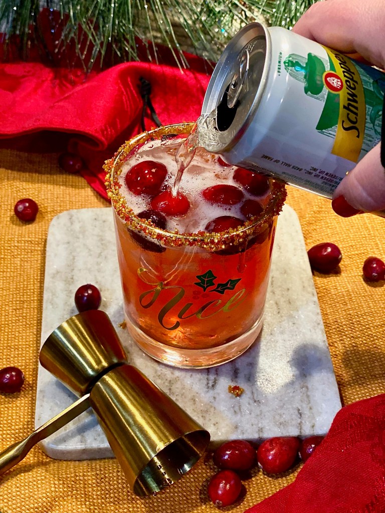 Even if you’ve been a little naughty this year, this cranberry cocktail is going to make you turn nice! 😉 If it happens to not fix your attitude, it’s definitely going to make you feel nice and relaxed which is what we crave anyway from all the hustle and bustle leading up to Christmas Eve. This Cranberry-Orange Whiskey Spritzer is deliciously dangerous, so drink responsibly Diamonds!
