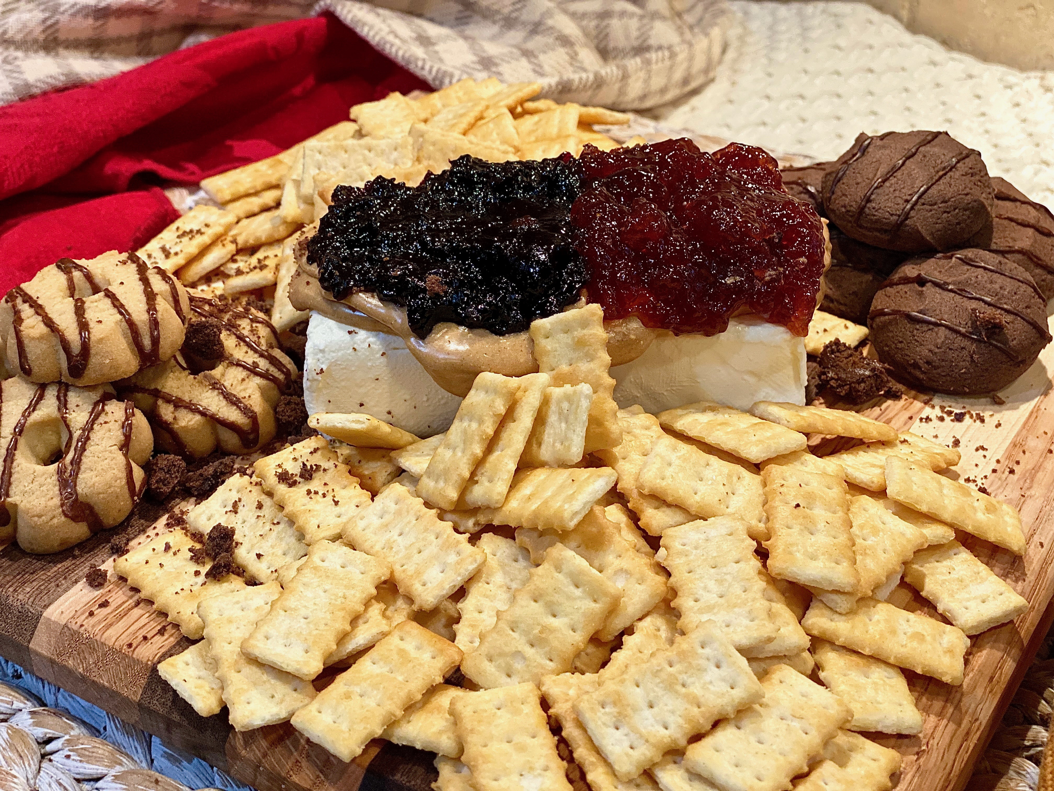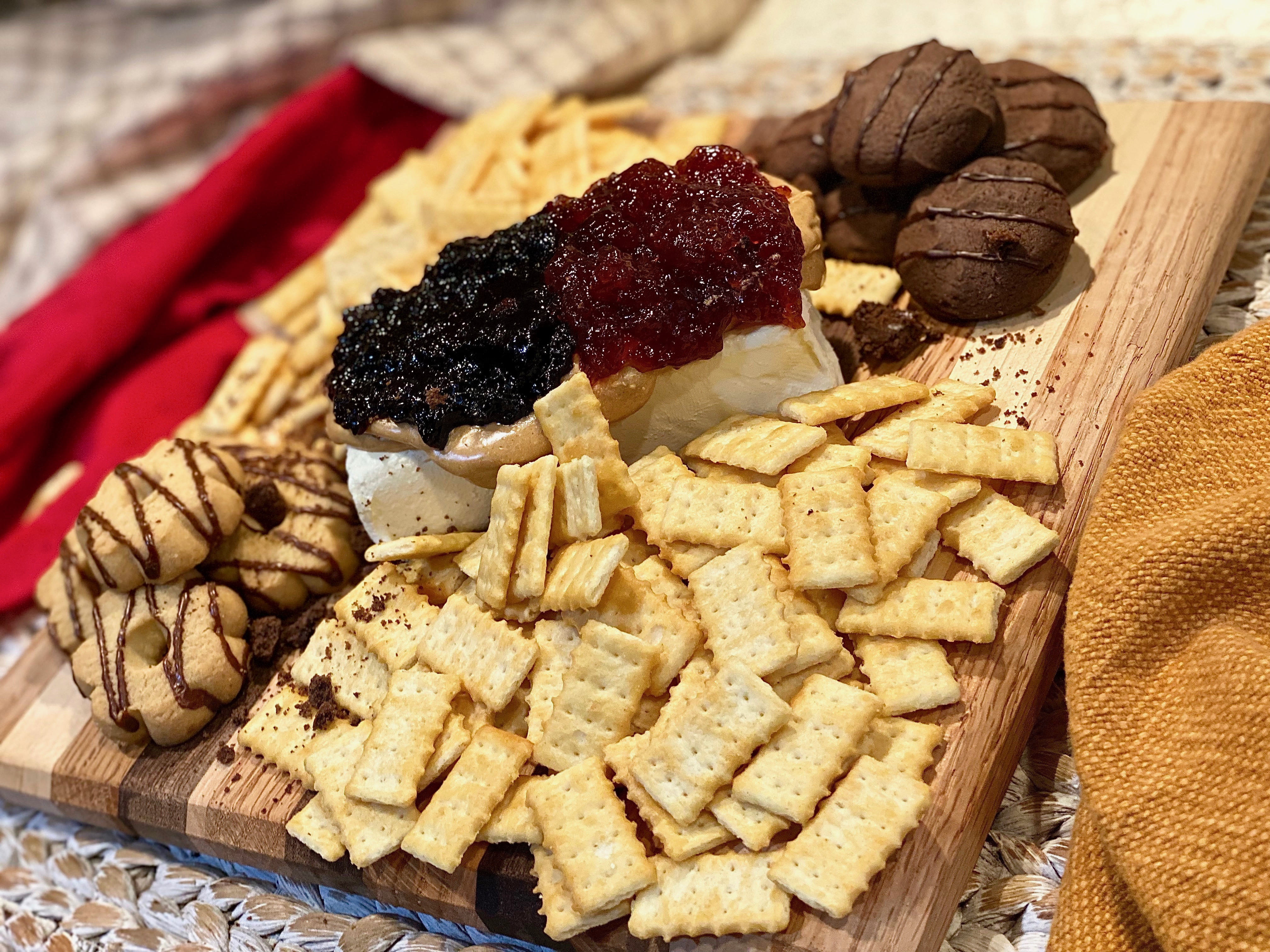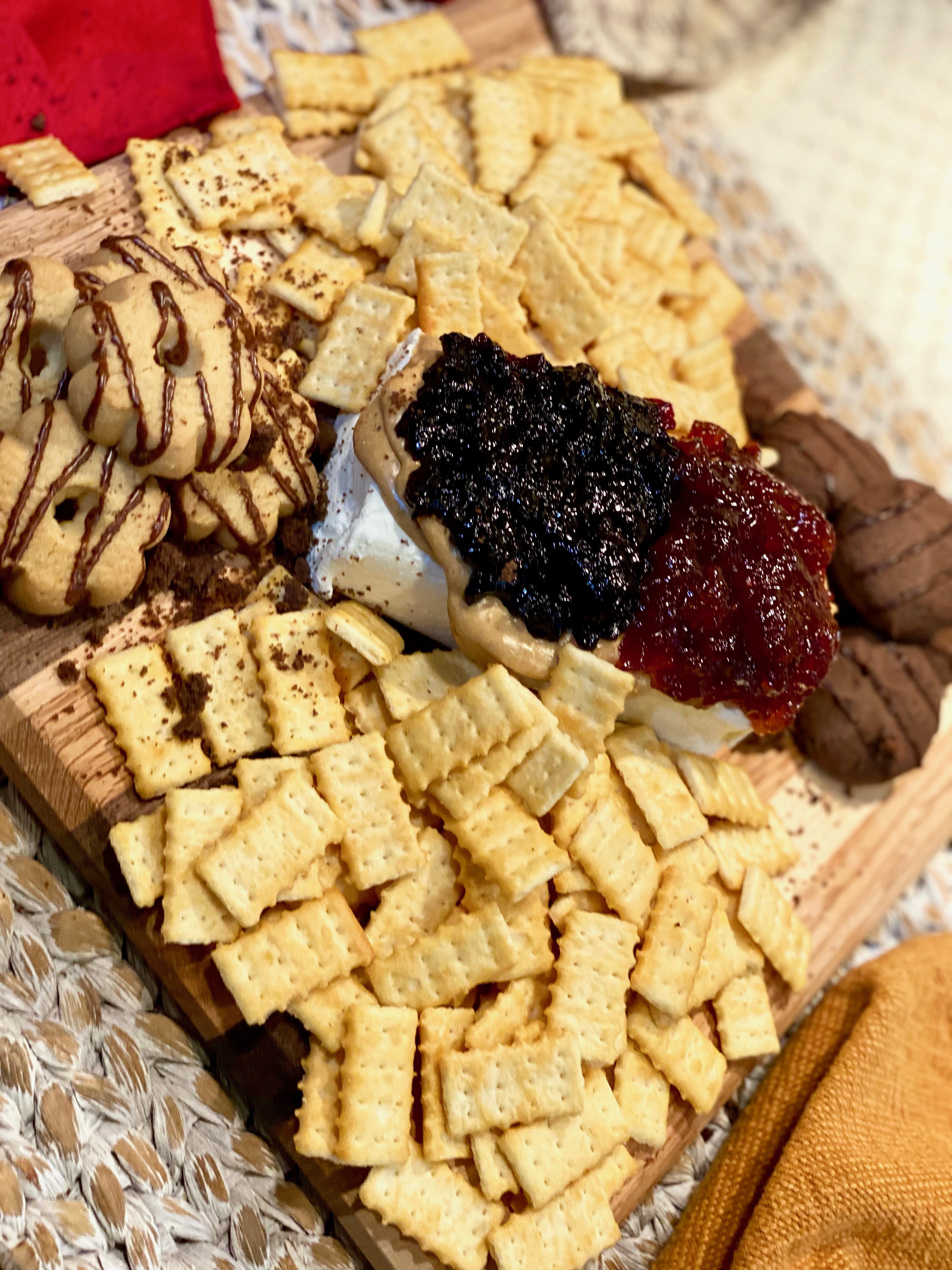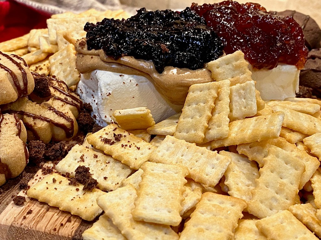I have been extremely into switching up old fashioned, traditional appetizers this holiday season. In the South, they are known for spreading pepper jelly on top of blocks of cream cheese to serve as an appetizer before diving into an amazing Southern feast, so I decided to put my own spin on that. That was definitely a pairing I have always loved. Ever since I was a little girl I have been topping my toasted bagels with cool, tangy cream cheese and fruit flavored jelly. The combination is the most fantastic brunch idea ever! If you have never given that a try you should, and if you have and you’re a fan, this pb&j appetizer was made for you! I think cream cheese is an ingredient best paired with absolutely anything, honestly. Therefore, my sweet childhood take on it is just as good as the original, but in a whole different light. If you are having a Christmas Eve party this year, this is something worth trying! One of the greatest things that there can be about a delicious recipe is that it is also easy to whip up! Not only can you throw this wonderful starter board together in just minutes, but it very budget friendly as well, which is a beautiful thing with the world we’ve been surviving in!