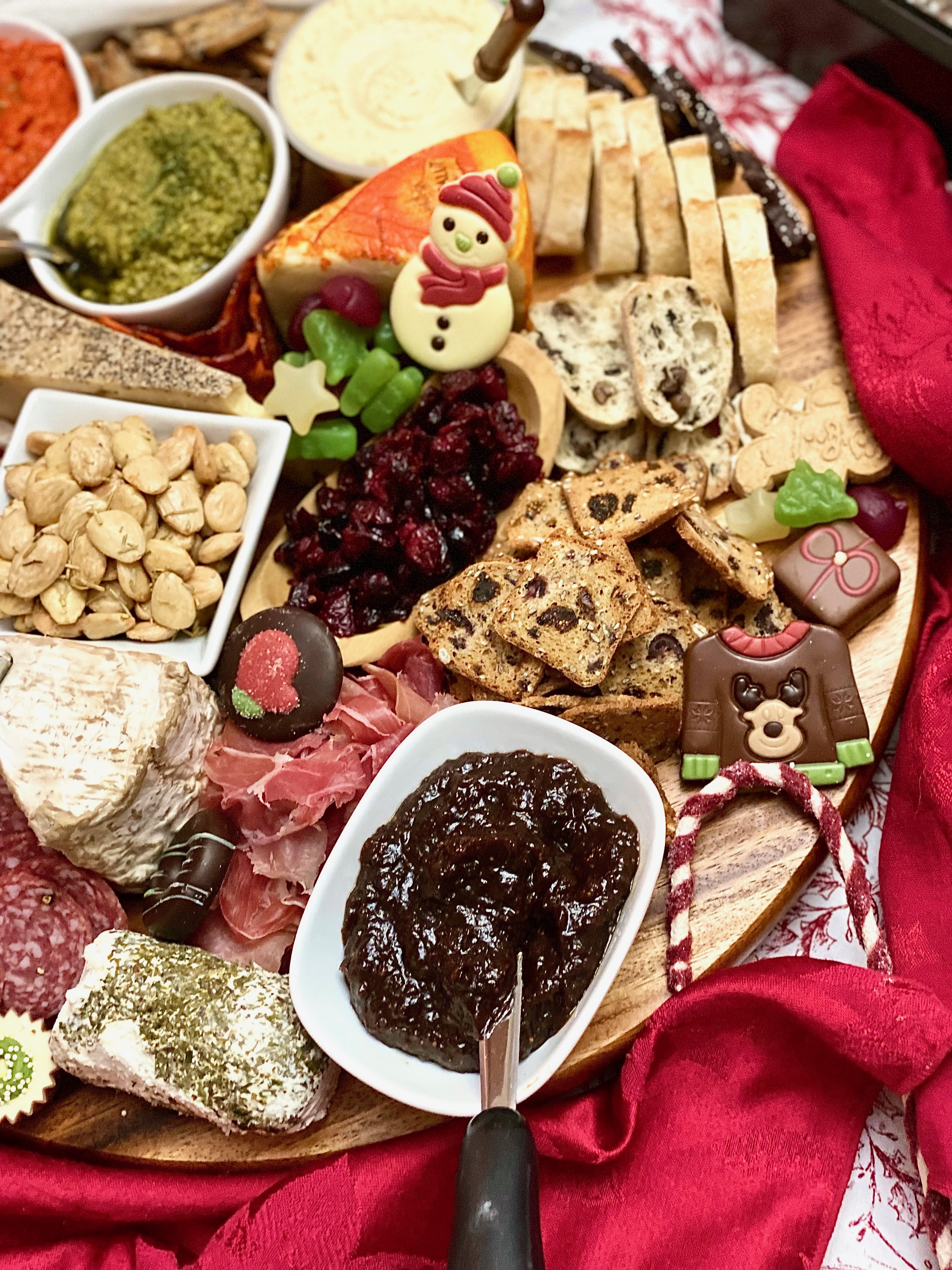 Even though this board was used for celebrating the Christmas season, you can absolutely change, take away, and add any ingredients to match the holiday or theme you’re choosing to celebrate yourself!