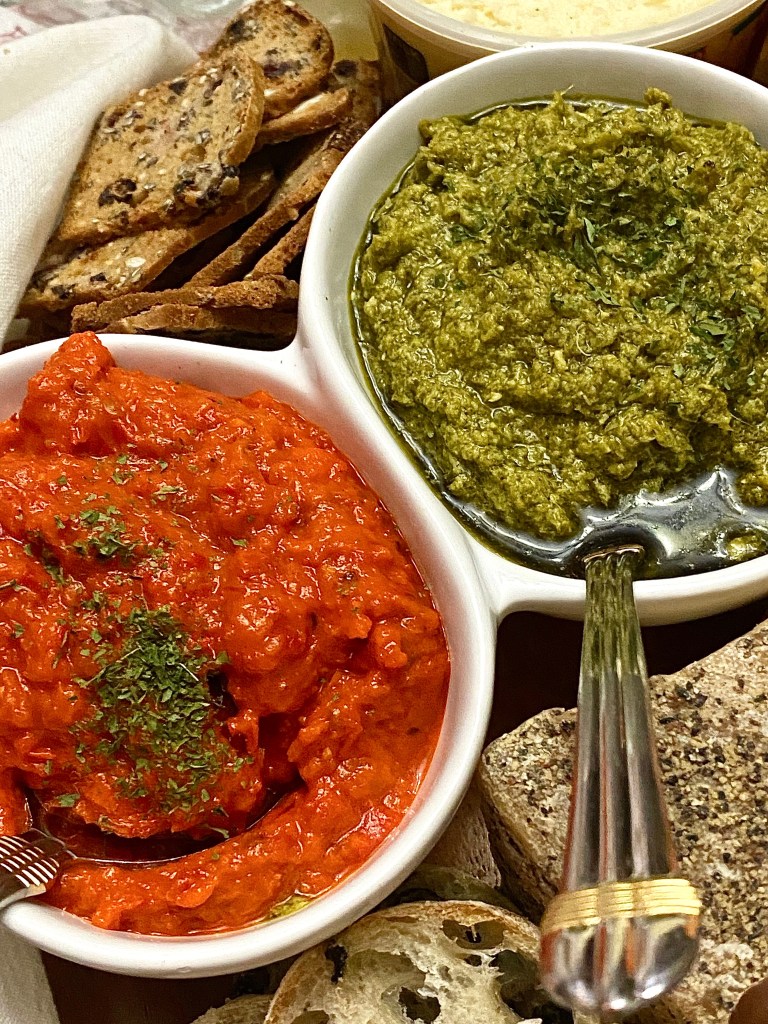 - Roasted red pepper spread. Pairs exquisitely with the port Sault and the Toscano black pepper cheese.