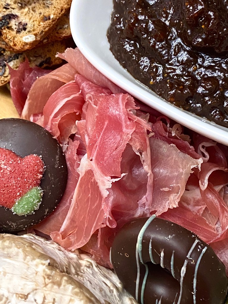 - Original fig spread. To me, this is a staple on a cheese board. I love fig during the winter and fall months, but any flavor preserves would do. You need the sweet to counteract all of the savory.