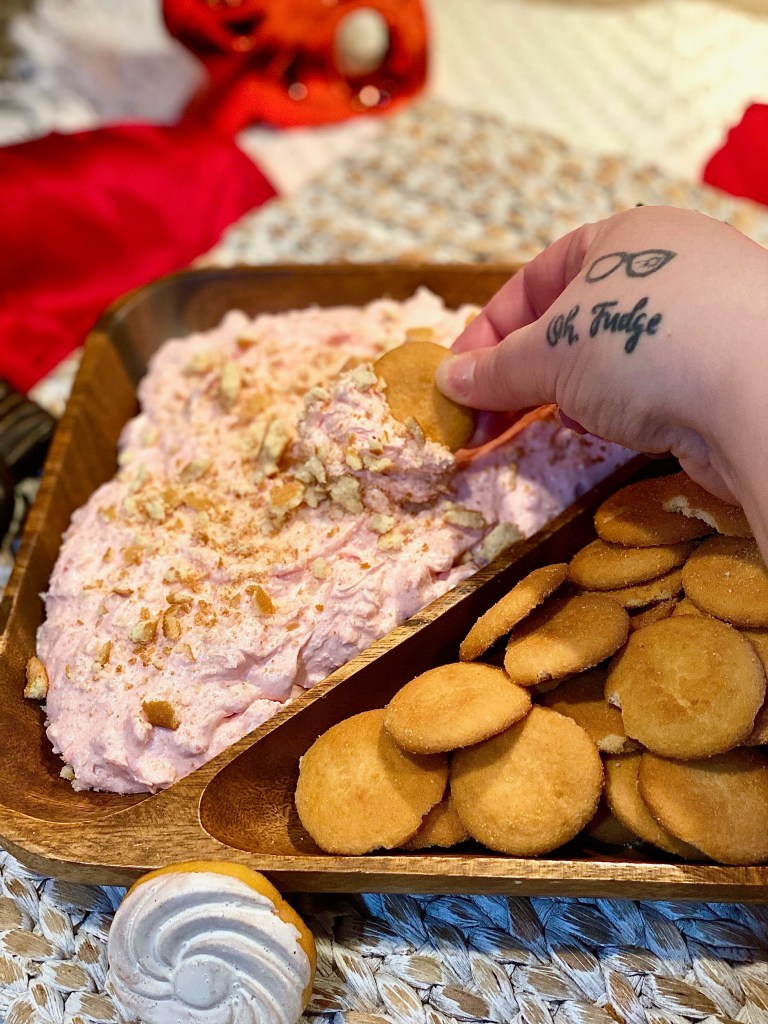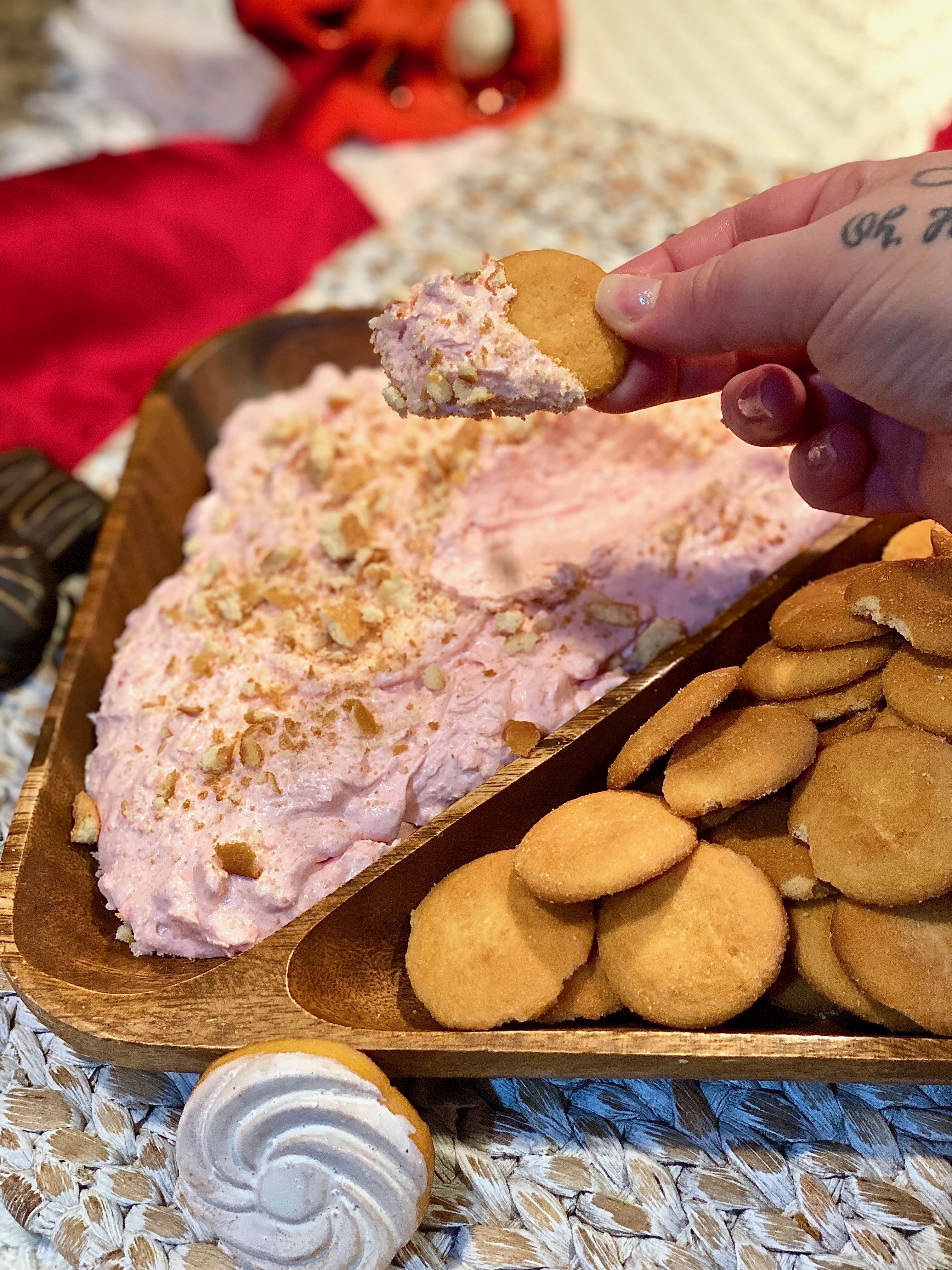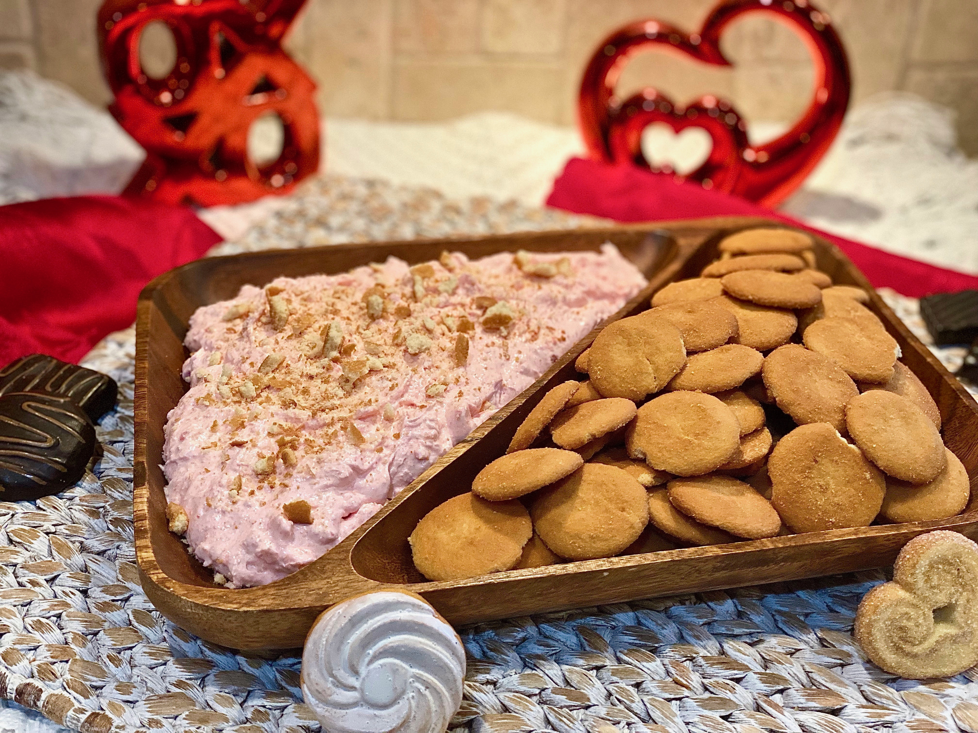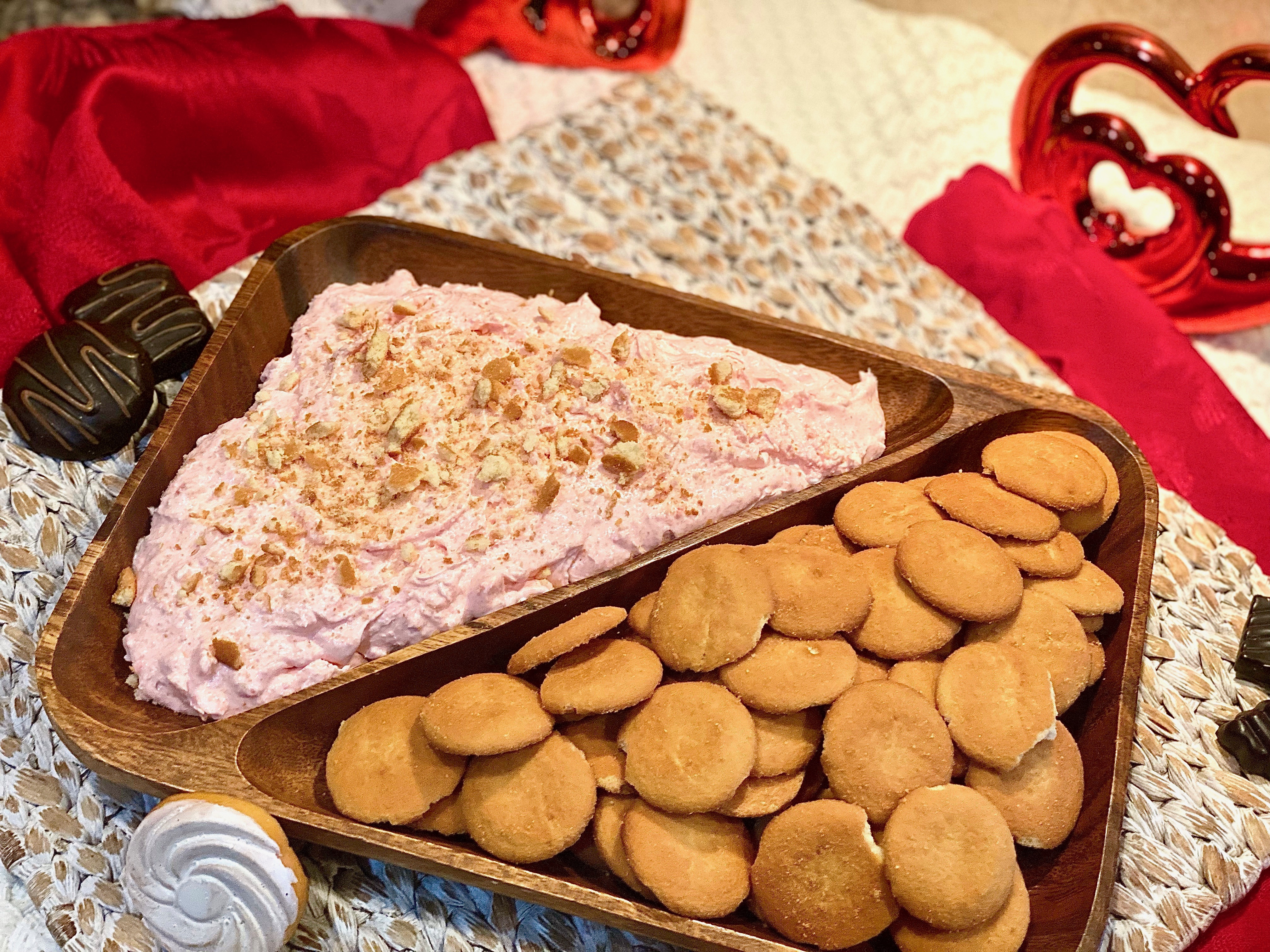 - There is no easier or more excellent dessert to whip up this Valentine’s Day! It is everything you crave in a dip and dessert all in one! Plus, its pretty in pink, so what’s better than that?