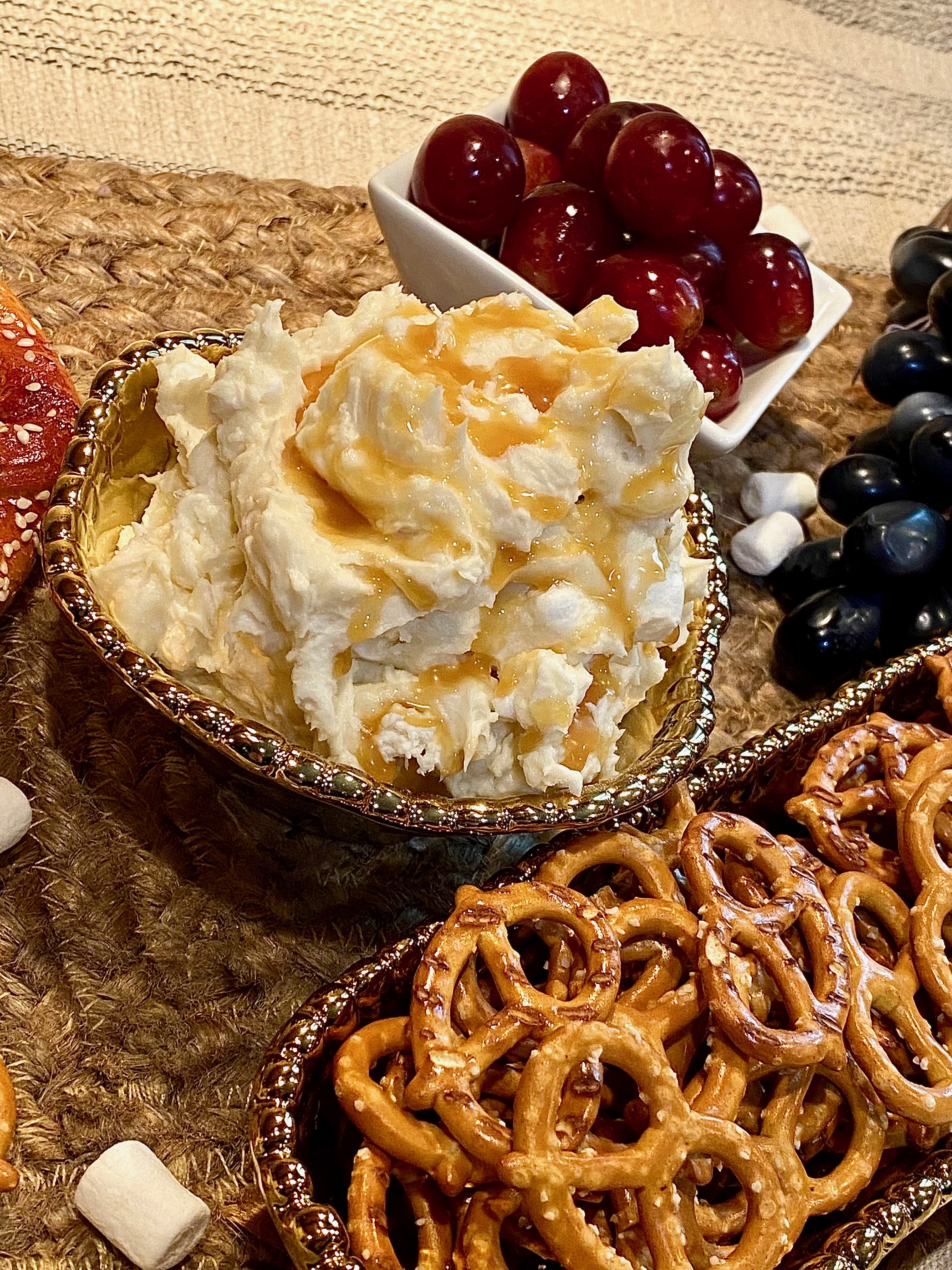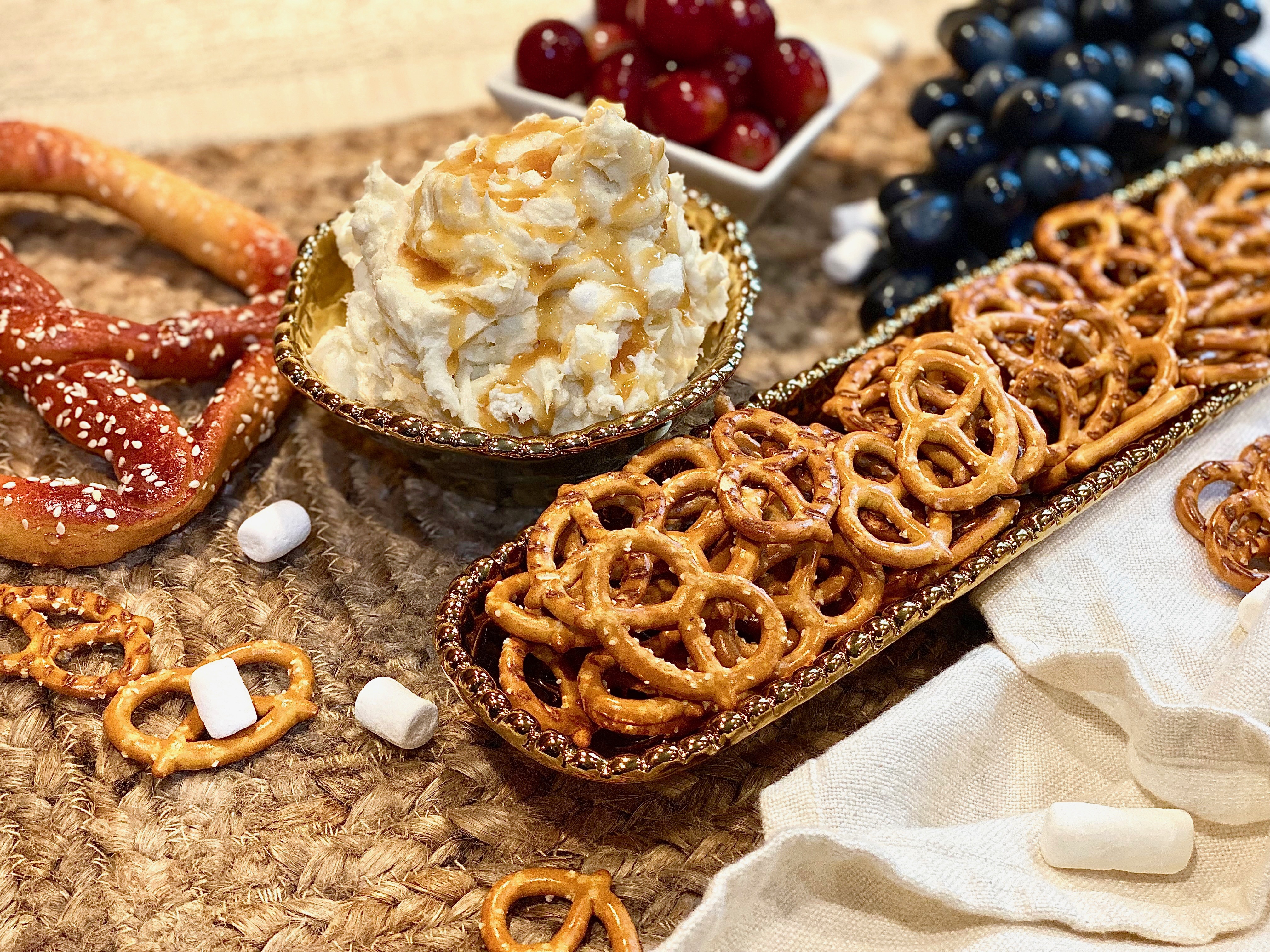 As I stressed earlier, this cream cheese dip can pair beautifully with anything and everything, however, fruit and pretzels definitely match up like peanut butter and jelly, or macaroni and cheese. You really can’t go wrong though! I strongly believe that this would be an awesome accompaniment on a dessert board or bar. People love to mix flavors and textures, especially when it comes to desserts, so spreading this gorgeous concoction on brownies, cookies, or cakes will be truly unmatched!