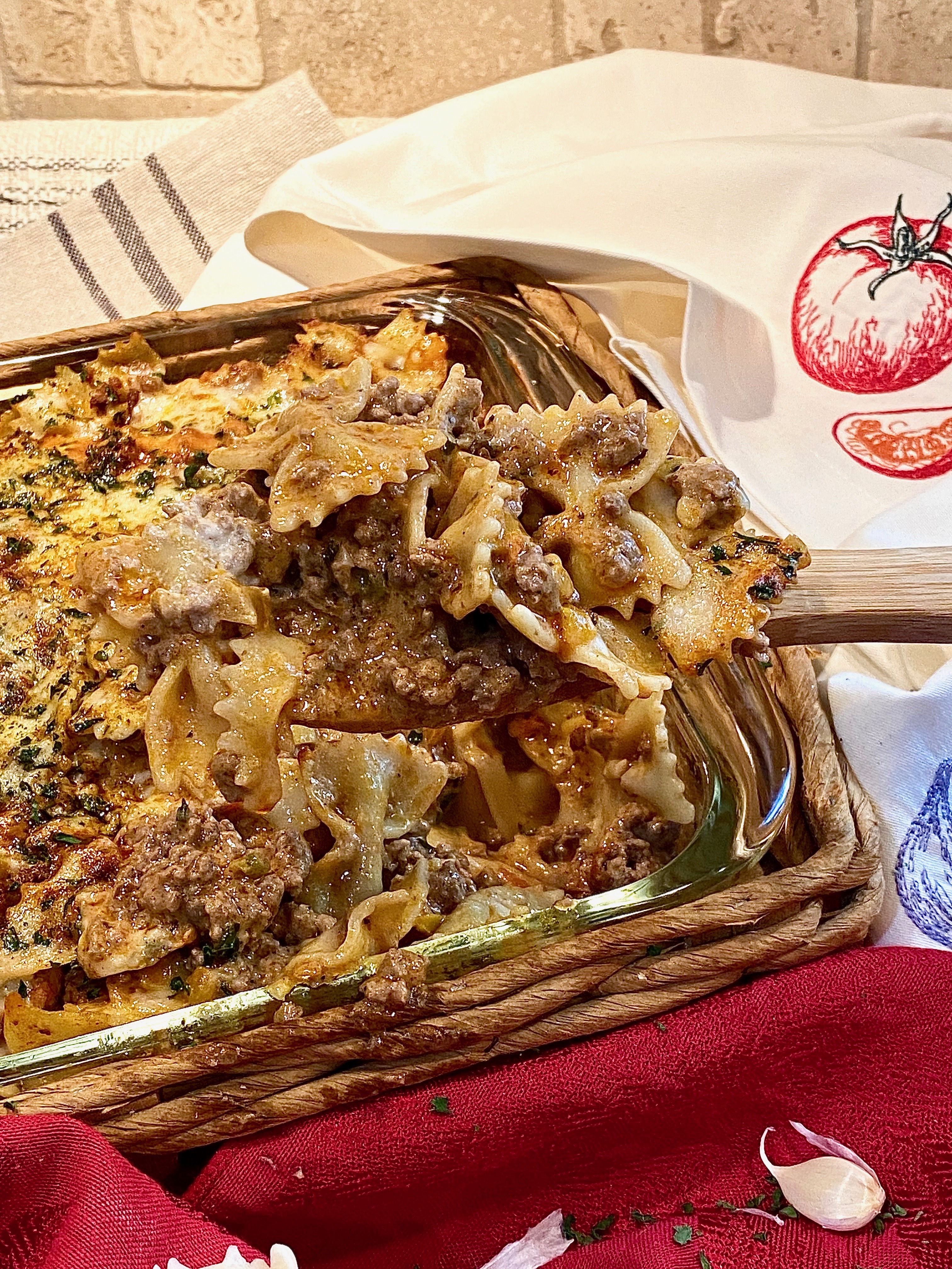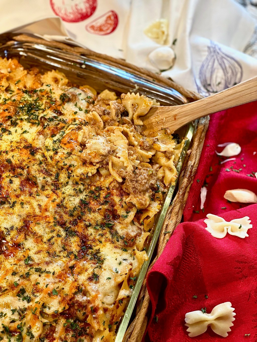 Is it just me or does dinner feel even more comforting and heartwarming when it’s served as one full meal in a huge baking dish?! I love that type of food where you just cozy up in your softest pajamas and grab yourself a big spoonful of the most delicious casserole into a glass bowl. Then, you head on over to your favorite chair with a nice glass of red wine. What a way to enjoy an evening, huh? That honestly sounds like the perfect thing to do today while we wait for this March snow storm to pass. I don’t know who invited her here, but I’m definitely not feeling it! LOL. Meals like this are always really popular with the family regardless of what day it is, or what you’re doing as the rest of the night rolls in. You can serve pasta bakes like this for dinner parties and you can also cover them with plastic wrap or foil and bring them to potlucks. Lasagna, casseroles, and pot pies all make me feel the same exact way this recipe does, except my creamy Tex-Mex pasta has a certain flare to it that makes you feel even more comforted with every single bite that you take.