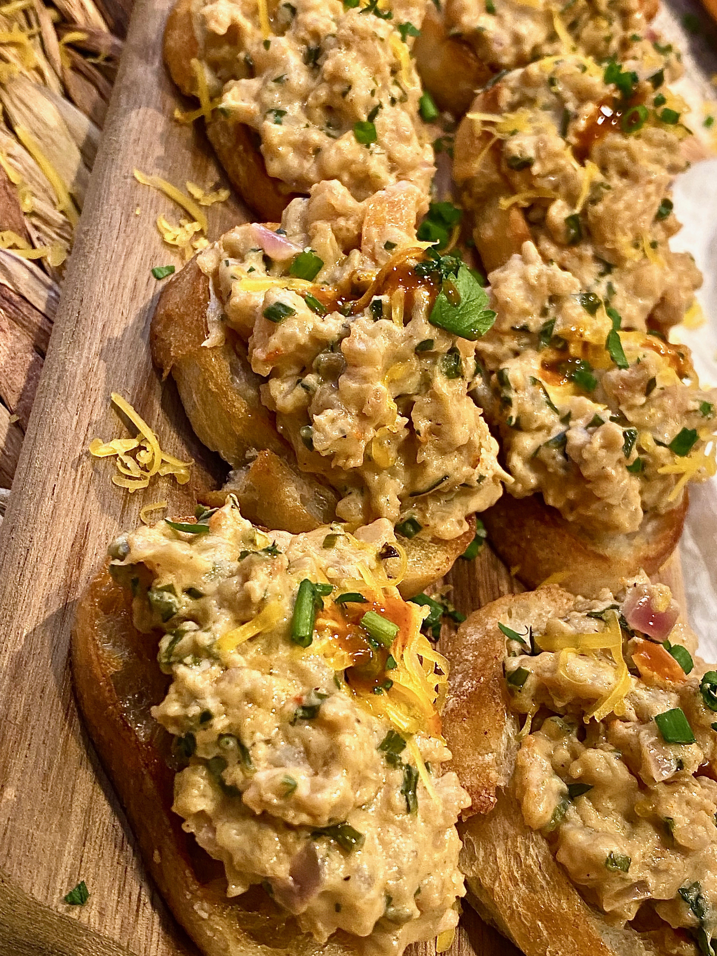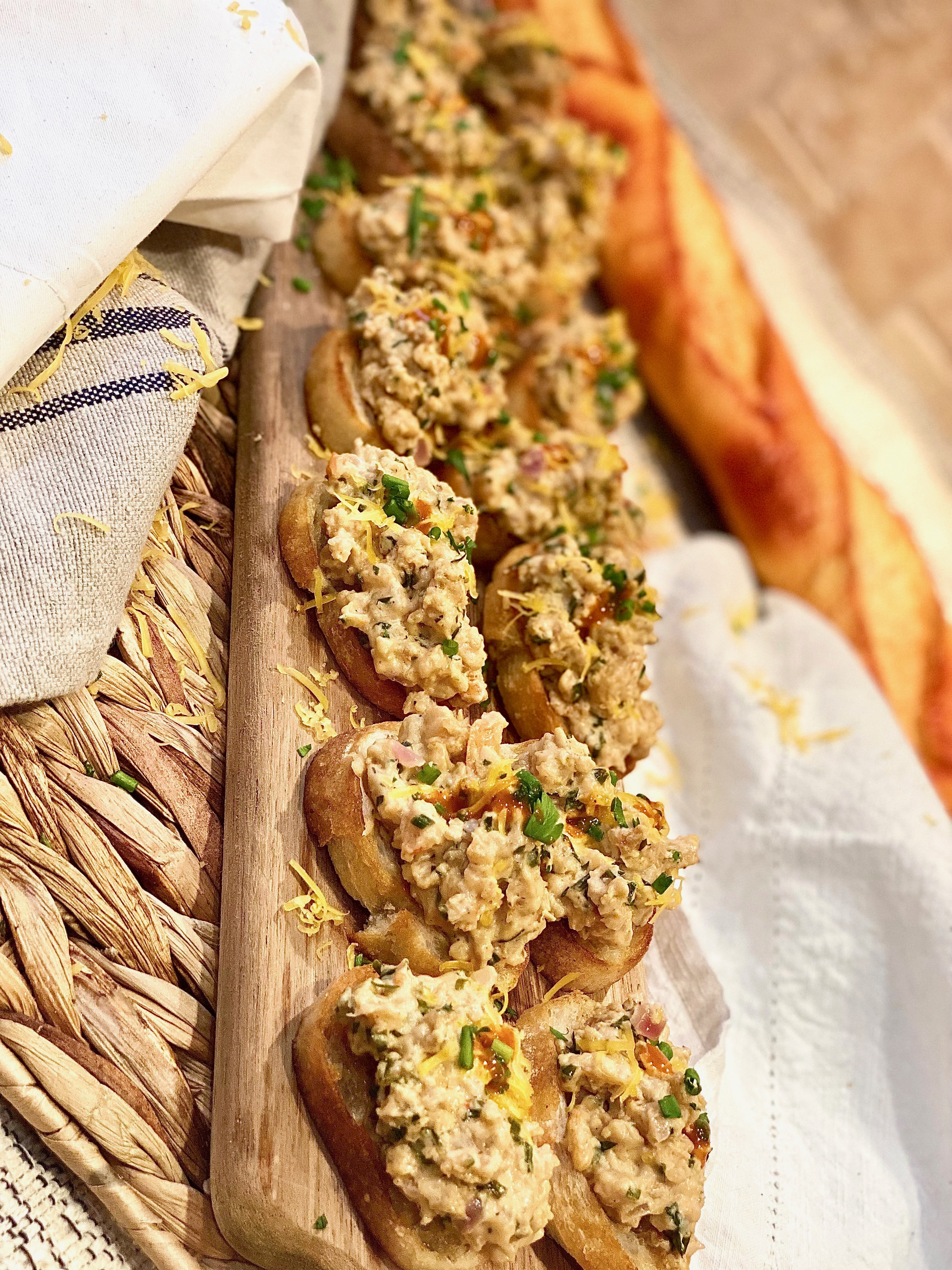 Everything I crave in an hors d’oeuvre is topped right on this toast! The flavor profile is amazing. I truly adore anything that has seafood in it because that’s one of my all time favorite foods to enjoy, and also to cook with! Whenever I order Chinese cuisine I always have to make sure I get a side of the crab rangoons! They’re just incredible, super satisfying, and they go with literally every other item on the menu. You just cant go wrong! There was a point in time where people were actually recreating the crab rangoons at home, as well as ordering them through take-out due to the fact that they had gone viral on social media. Which was completely fine by me considering they’re absolutely fantastic, so it didn’t bother me to see them all over my fyp’s and home feeds on every platform that I’m active on. For Easter this year I made the executive decision to change up our menu, just a tad. I really wanted to add some more freshness and lighten things up since most of the dishes are on the heavier side. One of the appetizers I added to the table was shrimp cocktail. We had this for both Christmas Eve dinner and also on New Years Eve. Each time we enjoyed the shrimp it went over so well that there was never any left, so I figured that would be a great addition to our Easter menu. It turned out to be a hit once again!! However, my Easter menu is probably my biggest holiday menu that I create, so of course there were leftovers! Instead of serving the shrimp in their organic form, I wanted to turn them into something totally different and unique. Coming up with this exquisite canape was the best thing I could have ever done!
